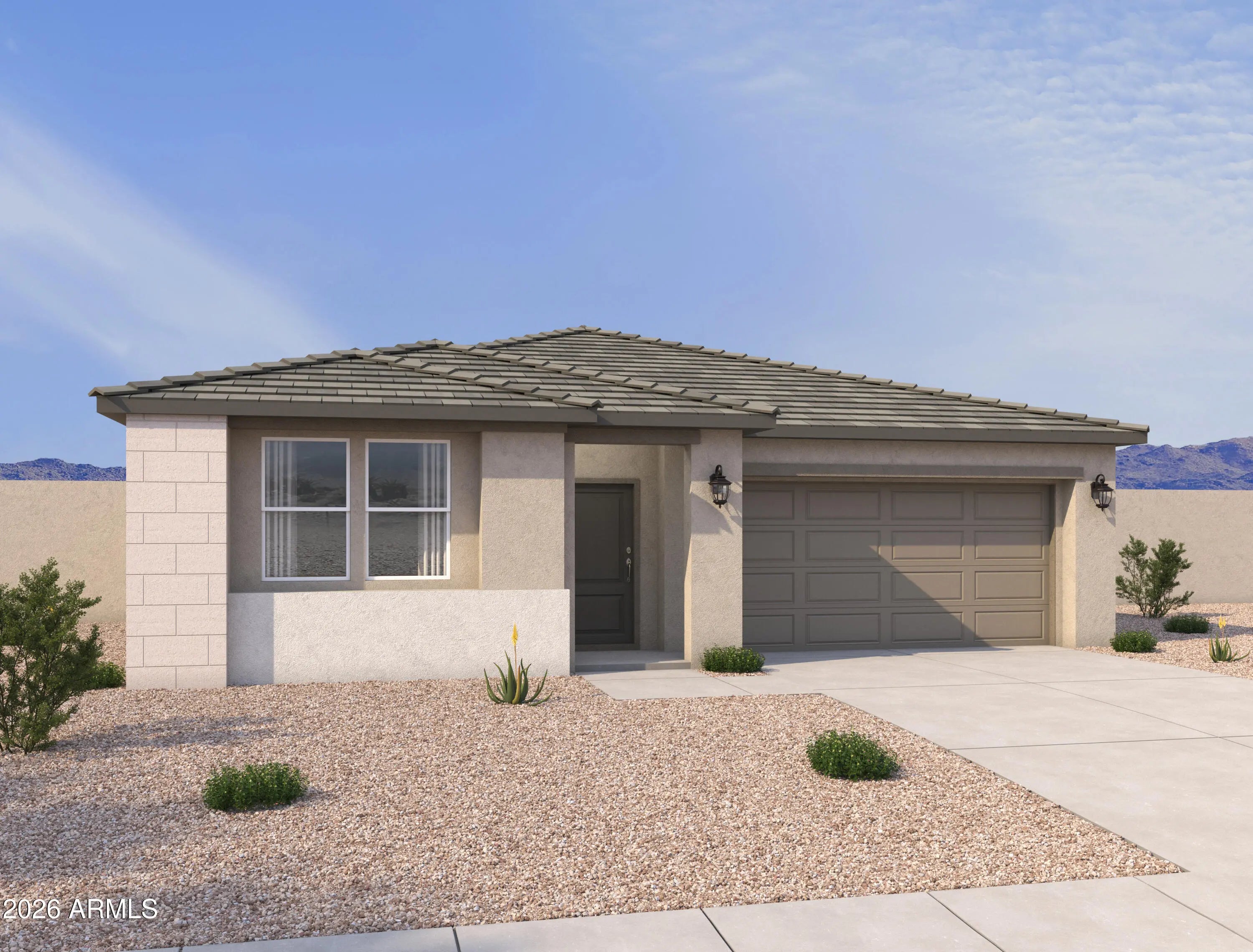 Brand new community in Surprise! This stunning single story home offers 1,567 sq ft of functional living space. It features 3 bedrooms, 2 bathrooms, and a 2-car garage. The open concept kitchen is perfect for entertaining and features an Island, a walk-in pantry and stainless steel appliances. It also offers our Roosevelt Collection which includes 42'' expresso cabinets, ivory biancone quartz kitchen countertops, mosaic carrara tile kitchen backsplash, and 8x36 wood looking plank tile in all the common areas. The great room offers a 4-panel center sliding glass door so you can step out into your covered patio to enjoy indoor/outdoor living in your backyard with friends and family. The primary suite has a spacious walk-in closet, double sinks, walk-in shower, and an additional linen closet for extra storage. This home also features a paver driveway, 8-foot interior doors, soft water loop, and all appliances included making it move in ready! Great location close to dining, freeways, parks, and entertainment!