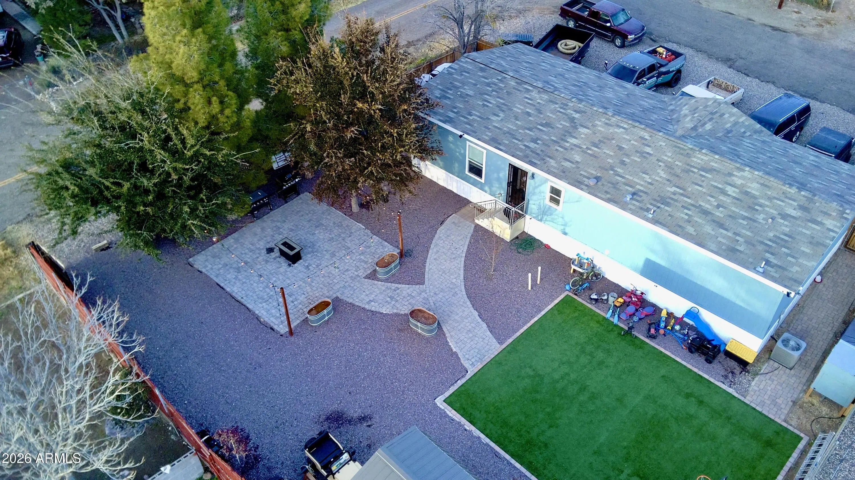 Corner Lot, Gravel/Stone Front, Gravel/Stone Back, Synthetic Grass Back, Irrigation Back