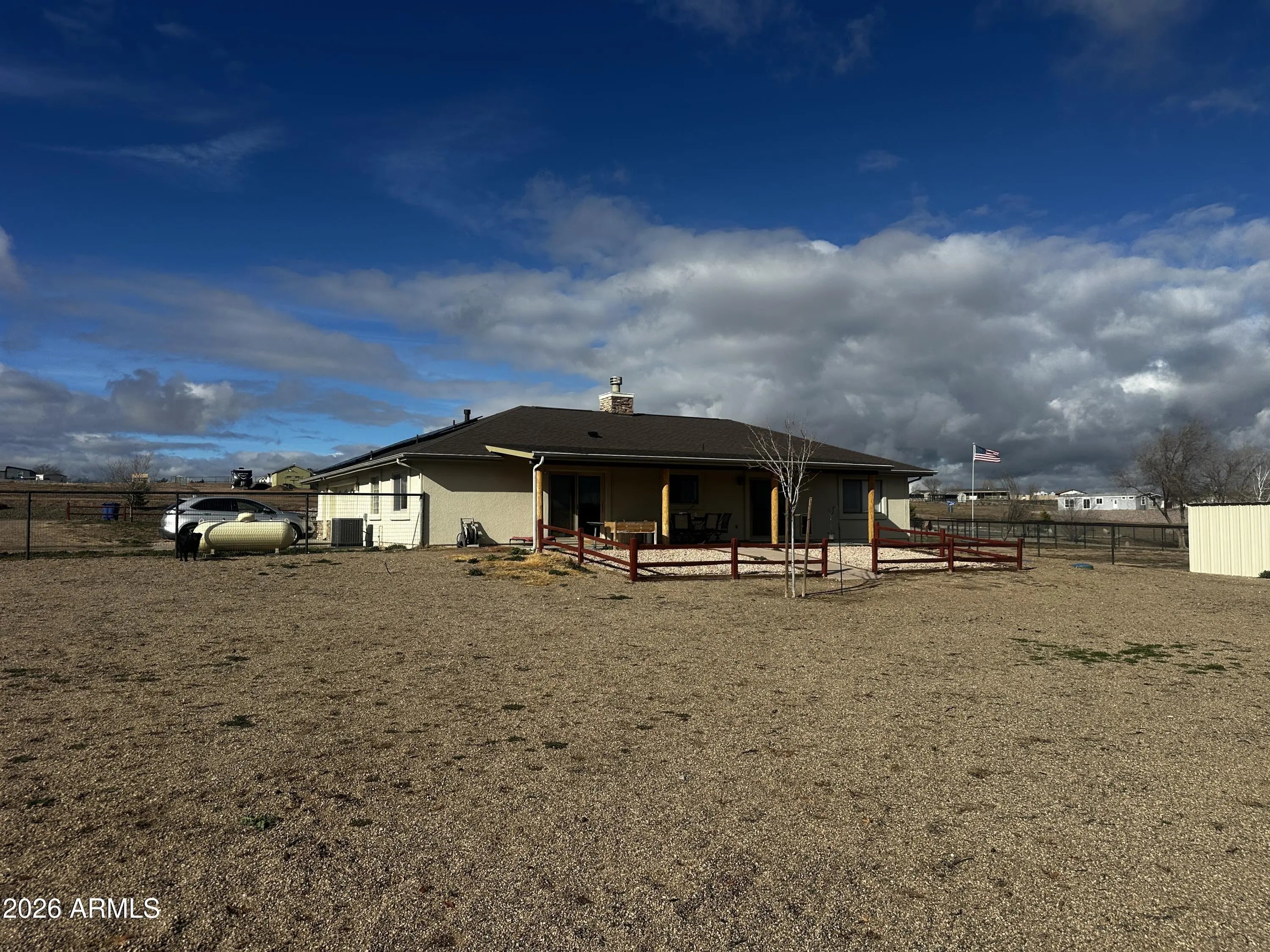 Don't miss this incredible opportunity! Situated on a sprawling 1-acre lot in Chino Valley, this 3-bedroom, 2-bathroom home combines comfort with functional ranch living. The interior features easy-care laminate and tile flooring throughout, plus an extra-wide attached 2-car garage for ample storage. Major peace of mind comes with a brand-new roof installed in December 2025. The property is perfectly set up for equestrian enthusiasts, featuring a fenced backyard, three mare motels, and a dedicated tack room. Take in stunning, panoramic views to the east every single morning. Your Arizona ranch lifestyle is waiting!