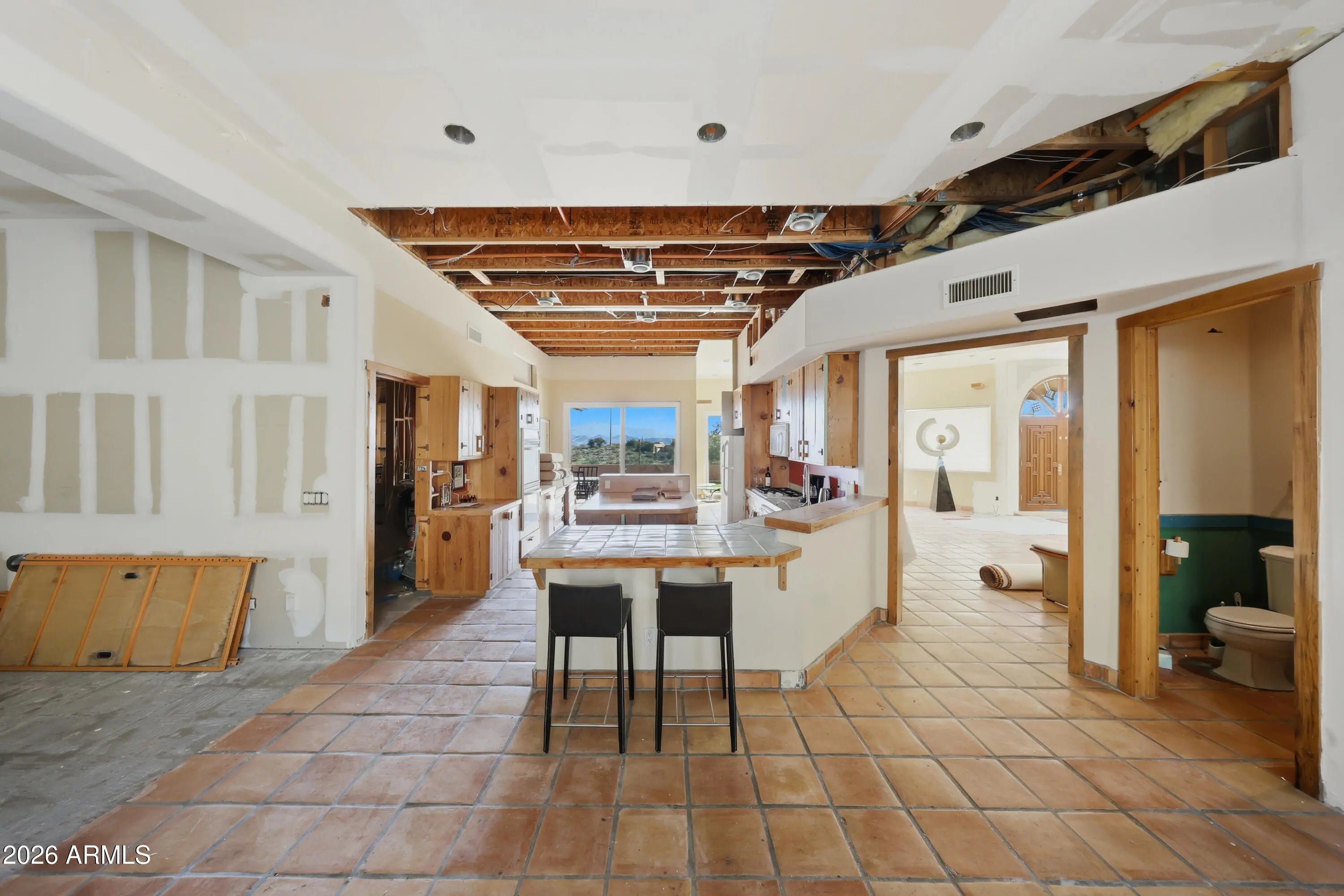 No Trespassing. Opportunity awaits at this hillside Fountain Hills home offering sweeping 180° views of Four Peaks to the east—perfect for unforgettable sunrises and sunsets. The remodel is underway and ready for you to complete with your own finishes and vision. A desirable floor plan features a primary suite on the main level with additional bedrooms upstairs. Enjoy expansive mountain views from the east-facing deck spanning the length of the home. The backyard includes a pool with water feature and low-maintenance artificial turf. Ideal for buyers seeking views, potential, and customization. Home sold As-Is.