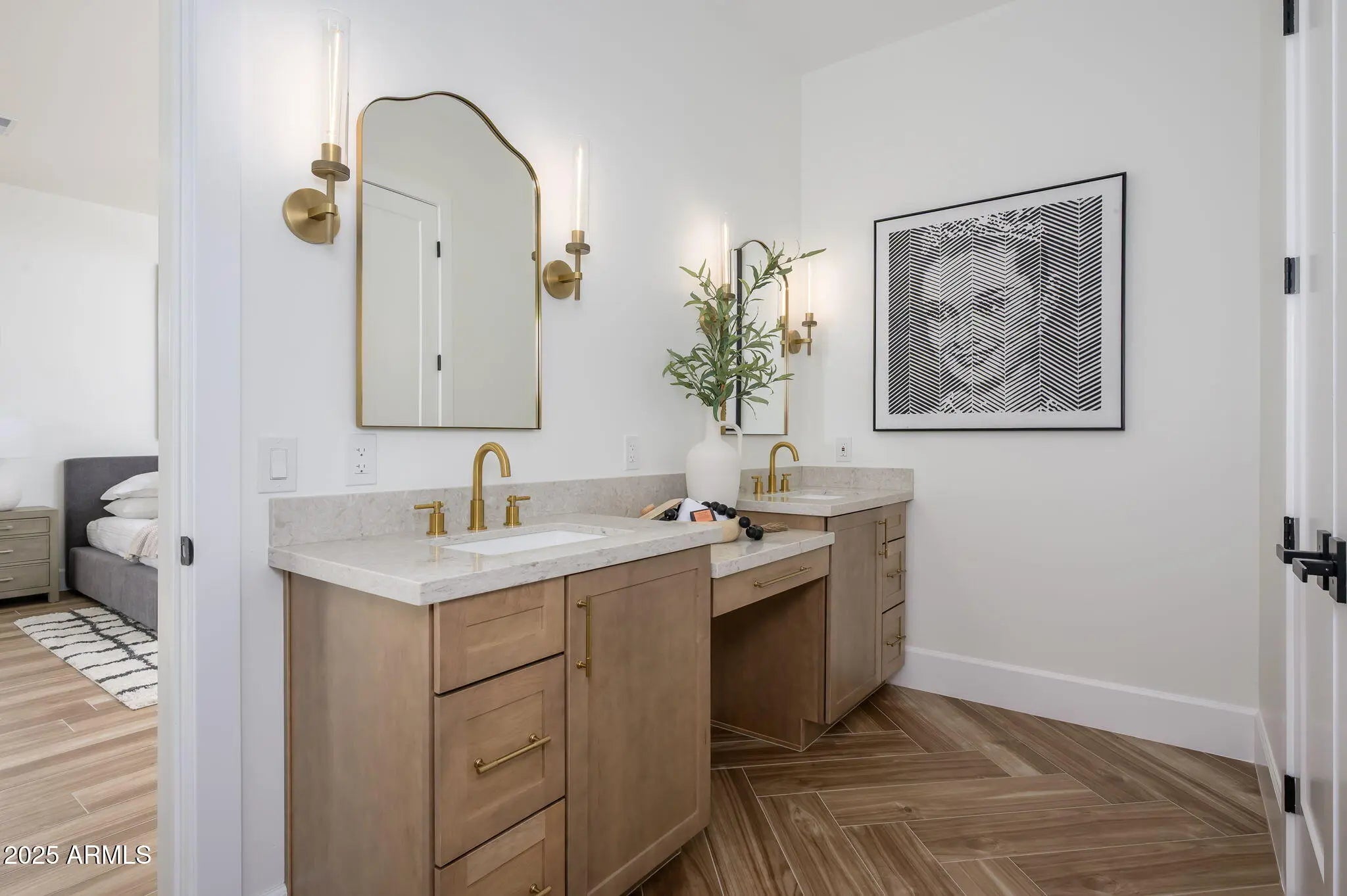 This newly built Mesa home showcases exquisite style & craftsmanship, starting w/a gourmet kitchen featuring Thomasville cabinetry, premium BOSCH appliances, elegant fixtures, substantial pantry & a generous island ideal for entertaining. The elegant primary bath offers a spa-like retreat, complemented by a powder room & guest bath w/upscale finishes th/out. The spacious split floorplan flows seamlessly w/wood plank tile & designer details in every room. Private guest quarters provide flexible living for extended stays or multigenerational needs, while the impressive RV garageâ€''w/its own private bathroomâ€''adds outstanding convenience & versatility. Peaceful Mesa area w/wide streets, custom homes, big lots, RV garages, & desert landscaping. Close to outdoor recreation & loop 202. 80 gallon stacked hot water heater. blown in insulation in the garage attic and walls as well. brand new septic.