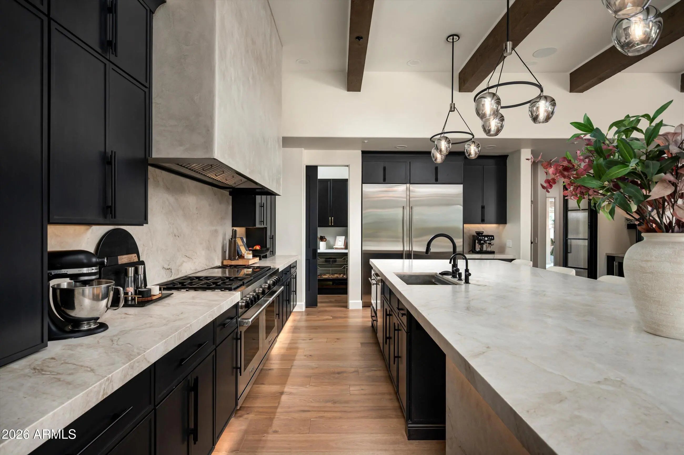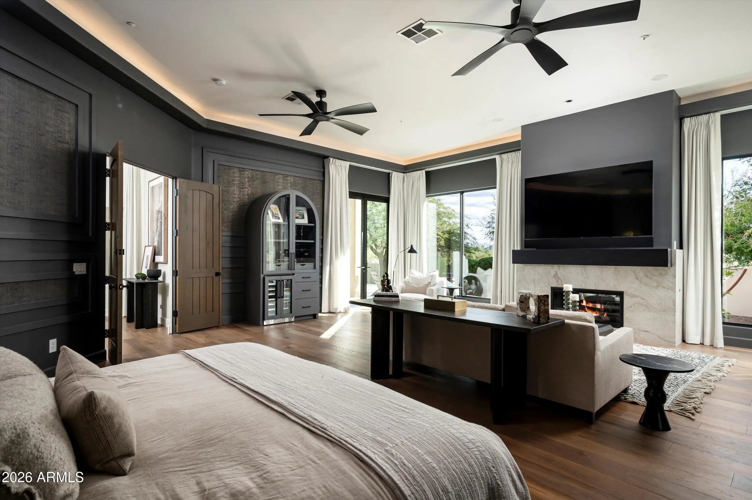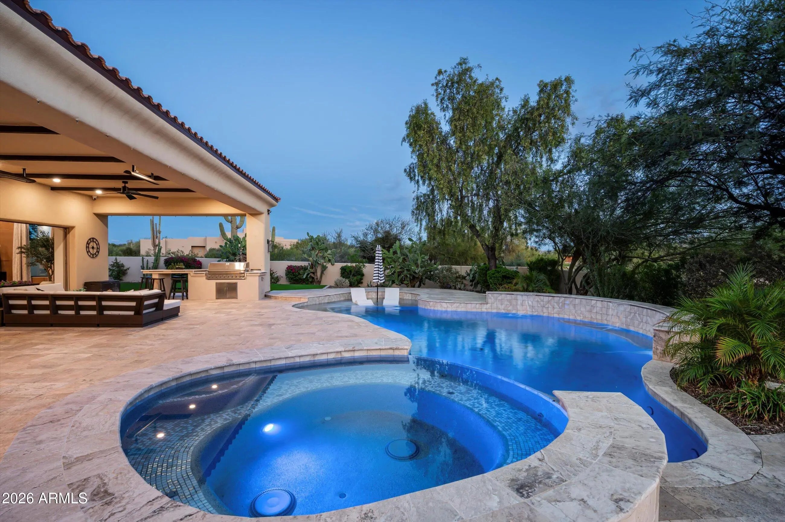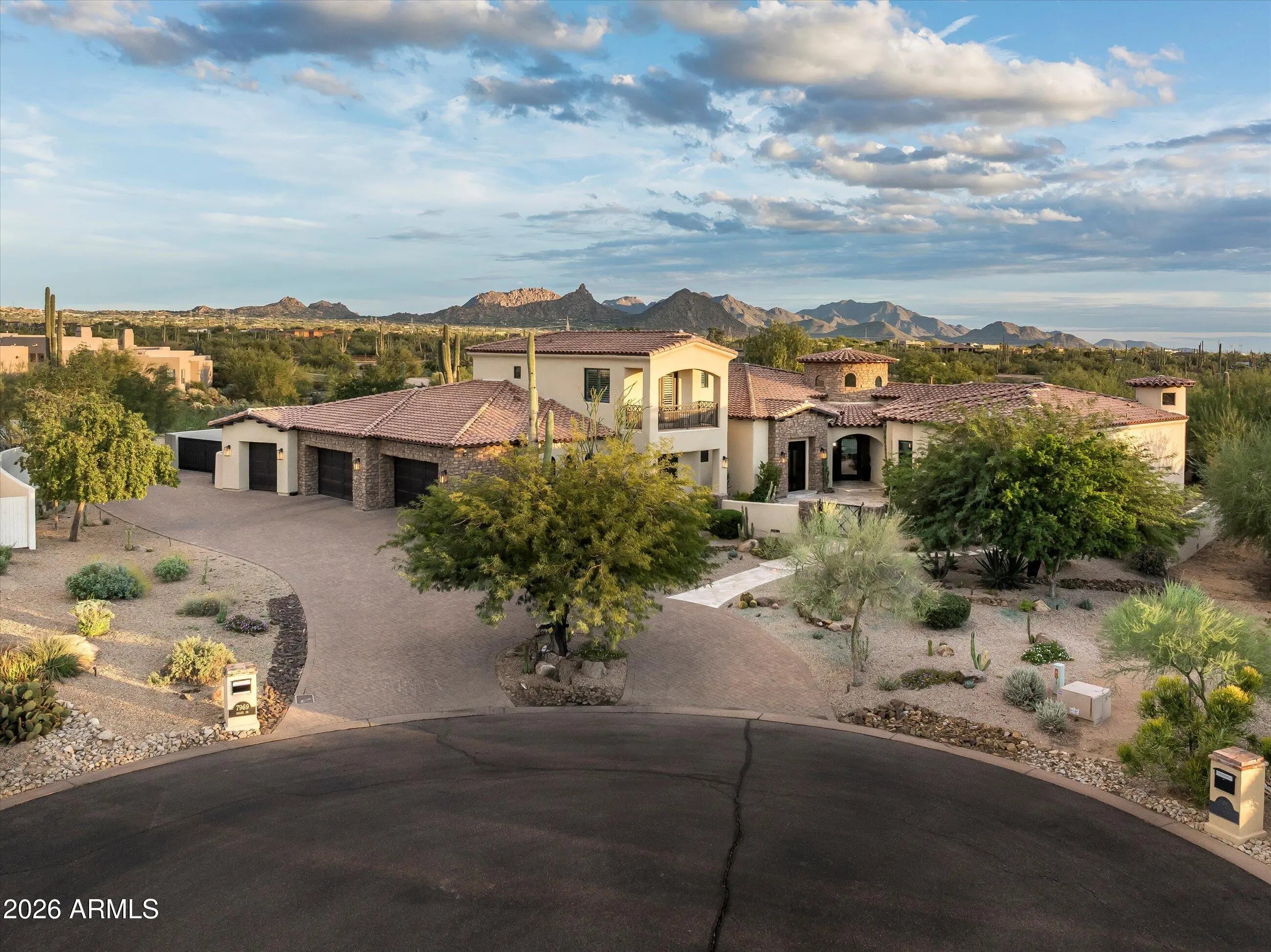 Deep in the silence of Scottsdale's high desert, where the rugged Sonoran landscape meets the sharp lines of modern refinement, lies 7969 E Baker Drive. This is not merely a residence; it is a 2024 reimagination of the desert estate, a 6,496-square-foot sanctuary where every detail has been edited, elevated, and executed to perfection. Situated within Lone Mountain Estates—an ultra-private, gated enclave of just eight custom homes—this nearly one-acre property borders pristine, natural desert, offering a front-row seat to the shifting colors of the Arizona sky and the stoic silhouette of the surrounding mountains. The arrival is an experience in scale and texture, where wide-plank hardwood floors lead you through a floor plan designed for the epicurean and the entertainer alike. The heart of the home is a kitchen that transcends utility to become a work of art, featuring a monolithic island of Taj Mahal leather-finish quartzite and bespoke Sollid soft-close cabinetry. It is a space defined by high-performance luxury, anchored by a 60-inch Wolf dual-fuel smart oven, a six-burner range, and Sub-Zero refrigeration. Whether hosting a grand gala or an intimate dinner, the seamless integration of the Control4 automation system ensures that the environment from the lighting to the climate is always perfectly tuned. Beyond the social core, the home offers five expansive bedrooms and six bathrooms, plus a stately executive office that commands focus and quietude. A secondary massive flex wing offers a rare canvas for your lifestyle be it a state-of-the-art home theater, a second family room, or a sixth bedroom. For the collector, the climate-controlled five-car garage serves as a pristine gallery, ensuring your most prized assets are preserved in a perfect environment. The transition to the outdoors is effortless, revealing a backyard resort that rivals the world's most exclusive retreats. Framed by mature citrus trees and a raised garden bed, the grounds feature a brand-new heated pool, dual gas fire pits for starlit desert nights, and a built-in grill for the ultimate alfresco experience. On the back patio, integrated heaters allow the seasons to blend together, while designer landscape lighting transforms the desert into a nocturnal masterpiece. Located just 18 minutes from the Scottsdale Airport and minutes from the fairways of Whisper Rock and TPC Scottsdale, this is a turn-key legacy property, a rare fusion of 2024 innovation and timeless desert soul.
