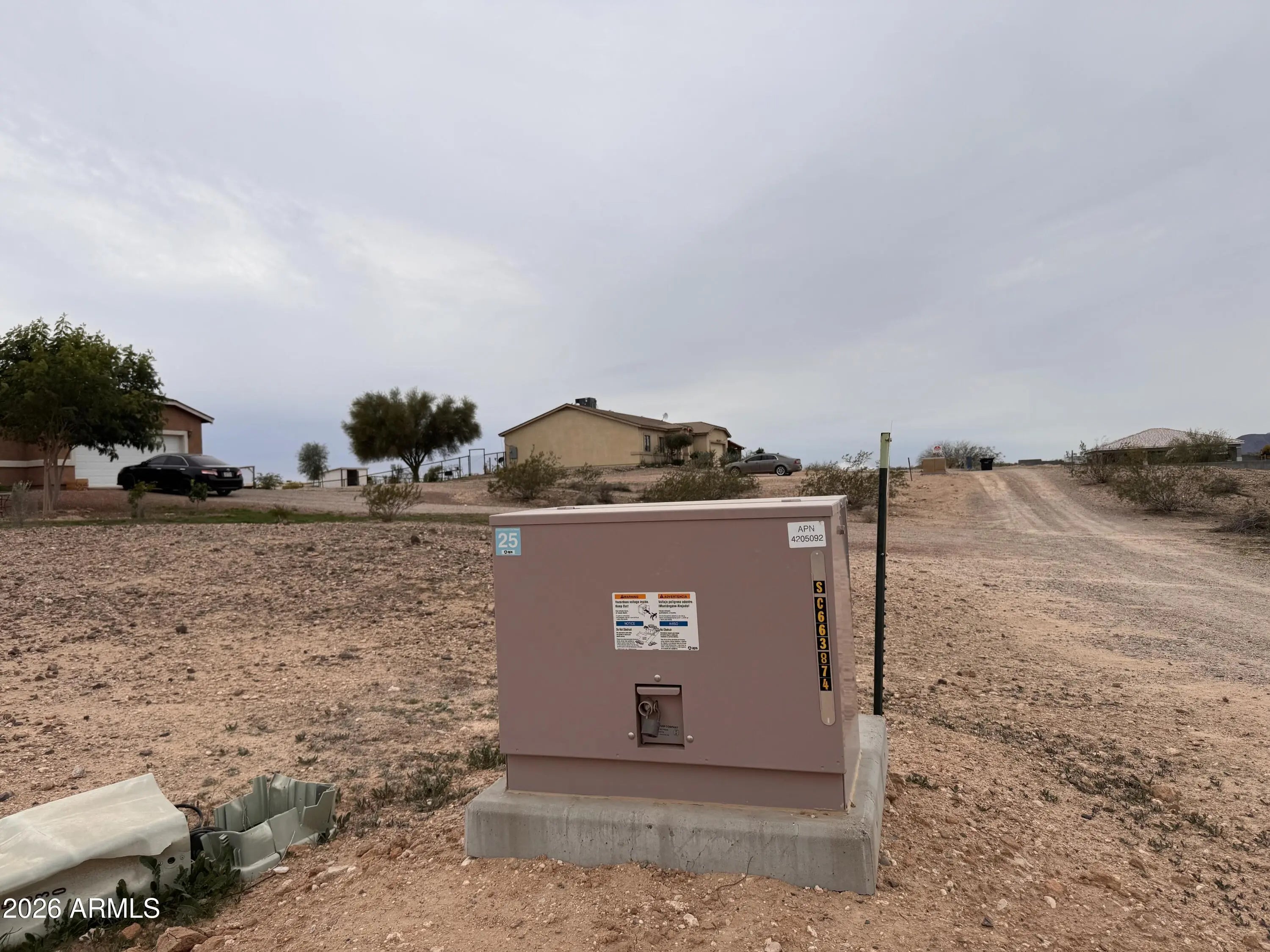 Minutes to the PV generating station. Fire dept less than a mile away Transformer at the corner of the lot -POWER! 360th -unpaved Roeser Rd (labeled paradise rd in google maps) View south -close hill -further out mountains/hills (around the far edge of sight from property) southeast there is a solar plant, southwest big hill sloped highest point the west side surrounded by new construction ready for your new home!