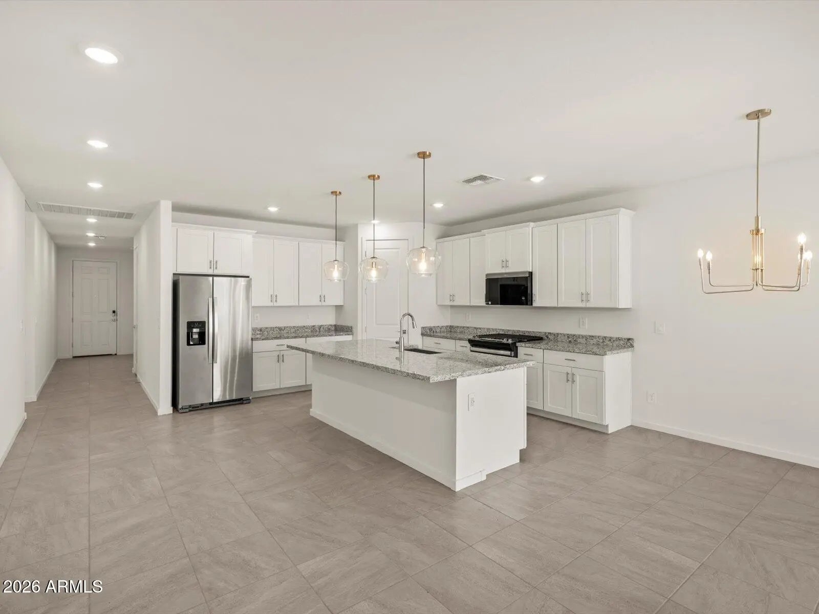 The Arlo boasts a thoughtfully designed single-story layout with 4 bedrooms, 2.5 bathrooms, and a 2-car garage. Whether you're hosting a gathering or savoring a quiet evening in, The Arlo offers the perfect blend of style, space, and functionality. This home has white cabinets with hardware, granite kitchen countertop and tile flooring with carpet in the bedrooms! Amenity-rich Teravalis will have basketball, pickleball, tennis courts, parks, a resort-style swimming pool, a kid's splash pad and water features. Future residents will enjoy a clubhouse with a fitness center, gathering areas and so much more! Enjoy move-in ready homes with washer, dryer, fridge, whole home blinds included in every home.