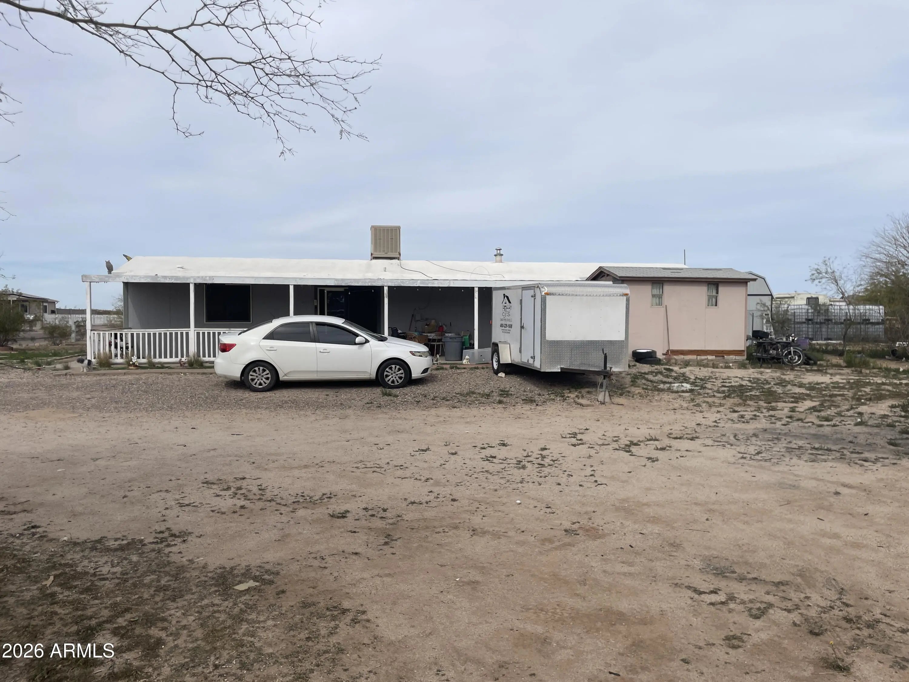 This unique property includes not only a charming home, but also the adjacent lot, offering endless possibilities. Located just minutes from the City of Casa Grande in a quiet neighborhood, the home features 2 bedrooms, 1 bathroom, and an open living area that flows seamlessly into the kitchen, creating a spacious great-room feel. The kitchen offers ample storage and connects directly to the living space, perfect for everyday living or entertaining. The generously sized primary bedroom includes a full bathroom with a shower and vanity. Recent updates include laminate flooring, newer cabinetry, and a new foam roof. The additional lot opens the door to countless options--build a large shop, bring your toys, add another home, or investfor future resale. Don't miss this rare opportunity!