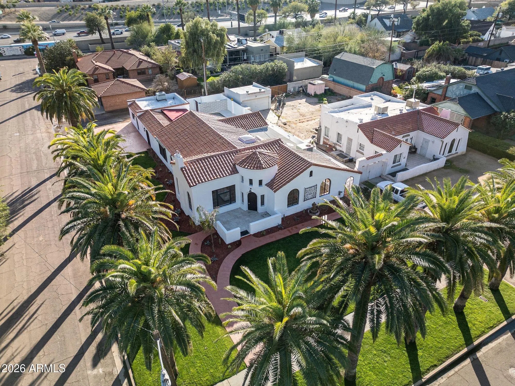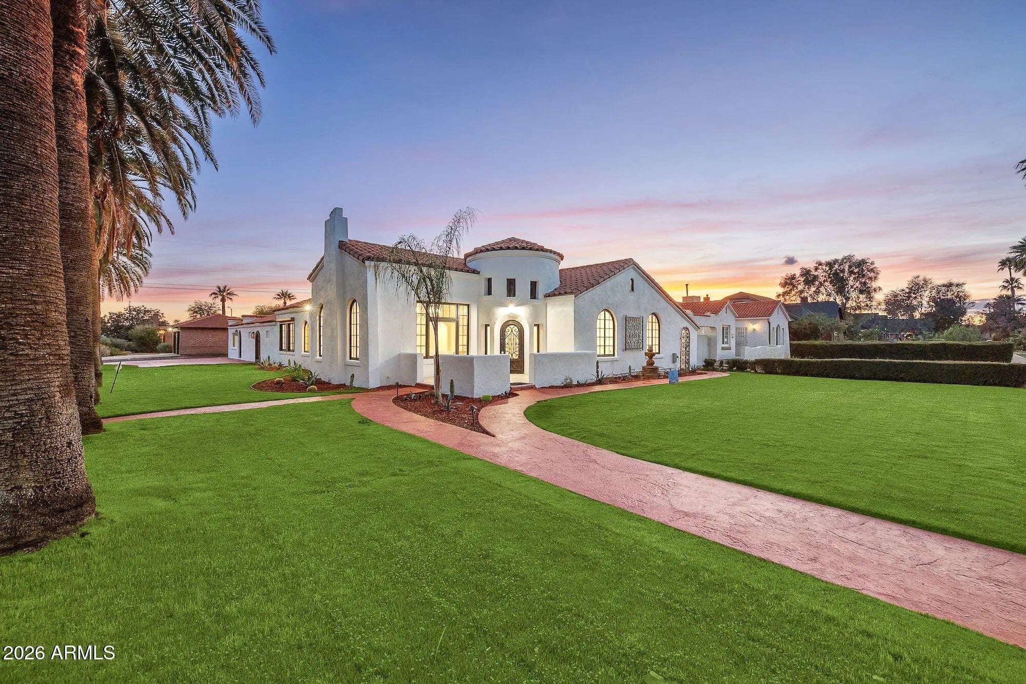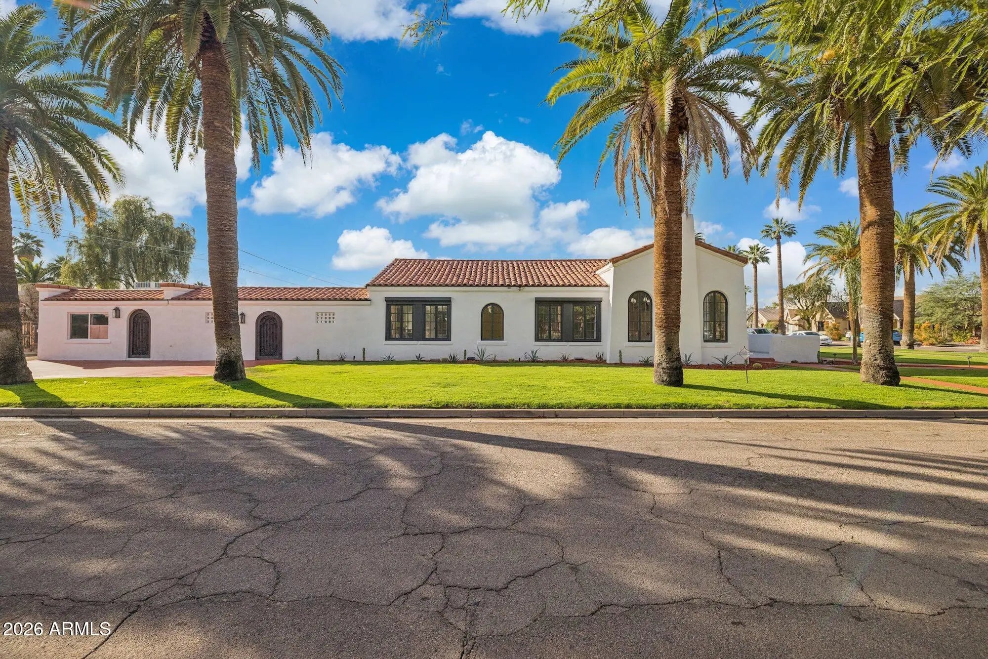 Exquisitely reimagined, this iconic Spanish Revival Mediterranean estate is gracefully positioned in the heart of central Phoenix's coveted Historic FQ Story District. Dating back a century, the residence artfully balances timeless architectural elegance with sophisticated modern luxury, creating a truly rare living experience. This 2361 sf single-level home is anchored by an expansive chef's kitchen, highlighted by a dramatic 14-foot waterfall island and an exceptional suite of top-of-the-line appliances, including a gas range with dual ovens, an additional convection oven, warming drawer, microwave, and integrated espresso machine. Custom-crafted cabinetry extends throughout both the kitchen and bathrooms, with dual vanities enhancing the spa-inspired baths. Rich wood flooring flows seamlessly throughout the home, imparting warmth and refinement. The thoughtfully curated floor plan features two elegant guest bedrooms and bathroom plus a generously proportioned primary suite, accompanied by a beautifully appointed bathroom with a large walk-in closet. An additional 480 square foot private casita complete with a fully equipped kitchen, bath, and washer/dryer offers an ideal retreat for guests, extended stays, or multigenerational living. Designed for both intimate living and grand entertaining, the property boasts a full-size swimming pool, a dedicated wine cellar for the discerning collector, and dual air-conditioning systems to ensure year-round comfort. The formal living room is a true showpiece, showcasing a hand-painted mural and striking chandeliers that beautifully accentuate the home's historic character. A formal dining room and inviting family room further complement the home's elegant yet livable design. Custom closets and abundant storage complete this exceptional offering. With its captivating architectural details, refined upgrades, and premier location, this residence stands as one of the finest homes in the FQ Story community an extraordinary opportunity to own a timeless piece of Phoenix history.