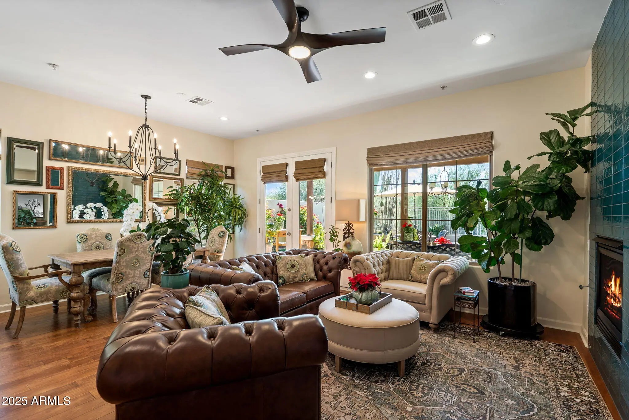 Welcome to refined, low-maintenance living in the gated community of Solstice at Sevano, ideally located in North Scottsdale. Situated on a premium view lot, this beautifully updated 3-bedroom, 2-bath townhome offers a seamless blend of modern design, comfort, and convenience, just minutes from a wide variety of shopping, dining, outdoor recreation, and everyday amenities. The light-filled interior features an open, thoughtfully designed floor plan enhanced by engineered hardwood flooring, custom lighting, and a warm, inviting aesthetic throughout. The kitchen is both functional and stylish, showcasing quartz countertops, stainless steel appliances, and a custom tile backsplash—perfect for everyday living and effortless entertaining. The primary suite serves as a calming retreat with a spa-inspired bath, curbless walk-in shower with custom tile, reclaimed wood vanity, and a spacious walk-in closet accented by a modern barn door. Two additional bedrooms provide flexibility for guests, a home office, or seasonal living. A chic tiled fireplace anchors the main living space, while plantation shutters, custom window treatments, and solar tubes fill the home with natural light. Recent upgrades including newer HVAC, water heater, and water softener add peace of mind and energy efficiency. Solstice at Sevano is known for its quiet, well-maintained setting and gated privacy, with a heated community pool and jacuzzi for residents to enjoy. The location offers exceptional walkability and convenience, with The Summit at Scottsdale just across the street, providing grocery, dining, boutique shopping, and everyday services. Nearby Carefree offers a charming small-town atmosphere with unique shops, galleries, restaurants, desert gardens, and year-round community events. World-class golf, scenic hiking and biking trails, and easy freeway access make exploring the Valley effortless. Move-in ready and ideally positioned, this home offers the best of North Scottsdale living, whether as a full-time residence or a lock-and-leave retreat.
