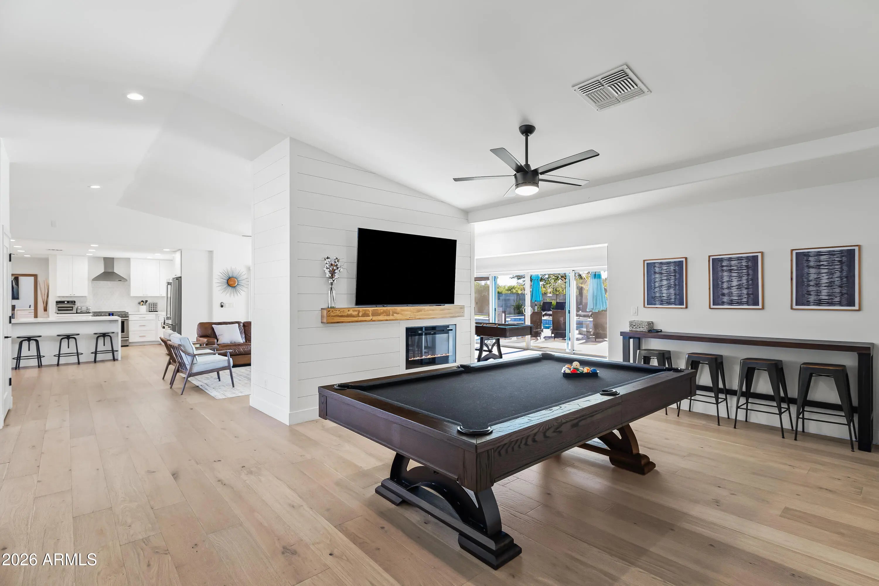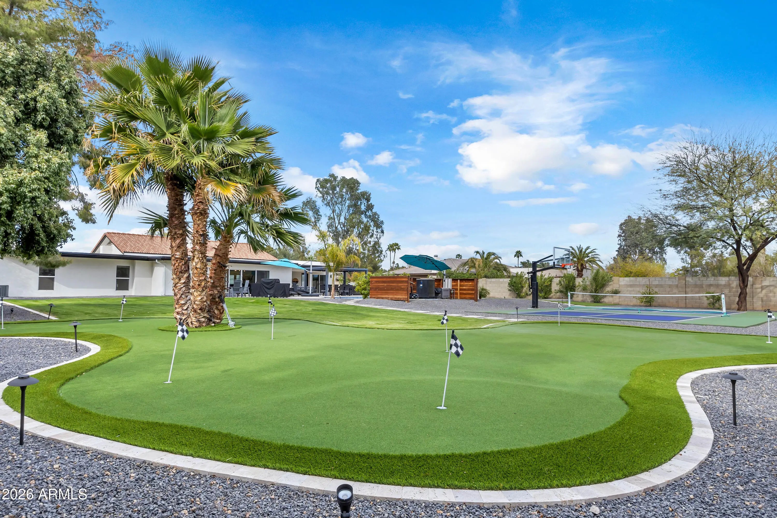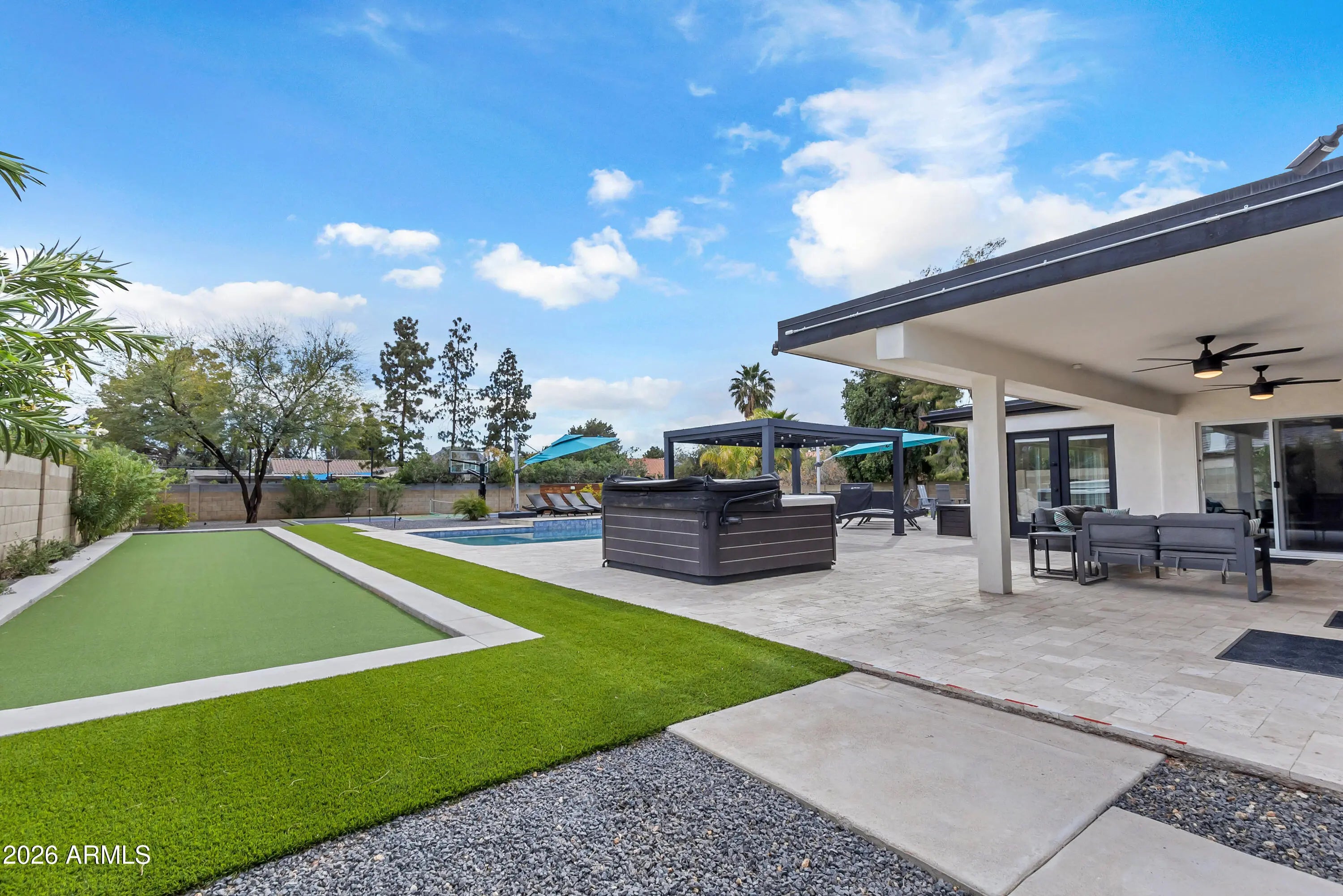 Fully reimagined from top to bottom, this exceptional 4-bedroom, 4-bath residence spans 3,233 square feet of thoughtfully designed living space, anchored by a resort-style backyard that truly sets it apart. Built for both entertaining and everyday enjoyment, the outdoor experience features a private pickleball court, putting green, bocce ball court, expansive swimming pool, hot tub, and a covered lounge complete with a large-screen TV — creating a year-round outdoor retreat. Inside, the home showcases a beautifully updated open-concept layout highlighted by a modern quartz kitchen that flows seamlessly into the great room and outdoor living areas, ideal for hosting and effortless indoor-outdoor living. The spacious primary suite offers dual walk-in closets, providing comfort, storage, and privacy. Every detail has been carefully curated throughout the full renovation to deliver both style and functionality. Equally appealing as a primary residence or income-producing opportunity, the property is currently operating as a successful high-season vacation rental. A rare opportunity to enjoy resort-style living with built-in flexibility for personal use or investment.