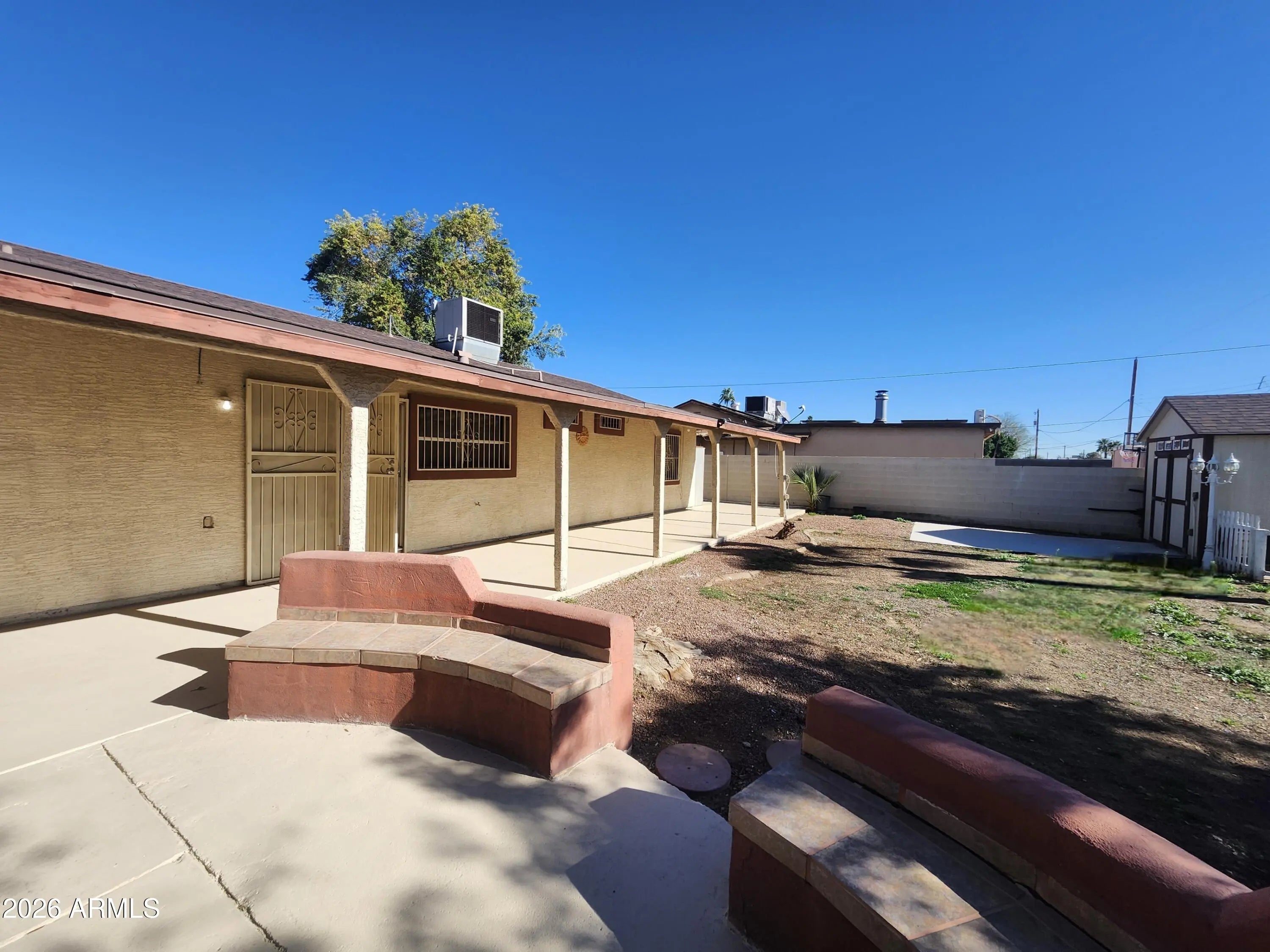 Great Central Phoenix location! Charming 3 bed 2 bath with large backyard,Ceiling fans and blinds throughout. ALL appliances included! RV gate, air conditioned storage room. Plenty of parking! One car garage and 3 slab parking. Extended covered back patio. BBQ area. NO HOA! Walking distance to public transportation. Minutes from I-10 and loop 202 Freeway. Close to I-17. Walking distance to schools and Parks. Se habla Espanol.