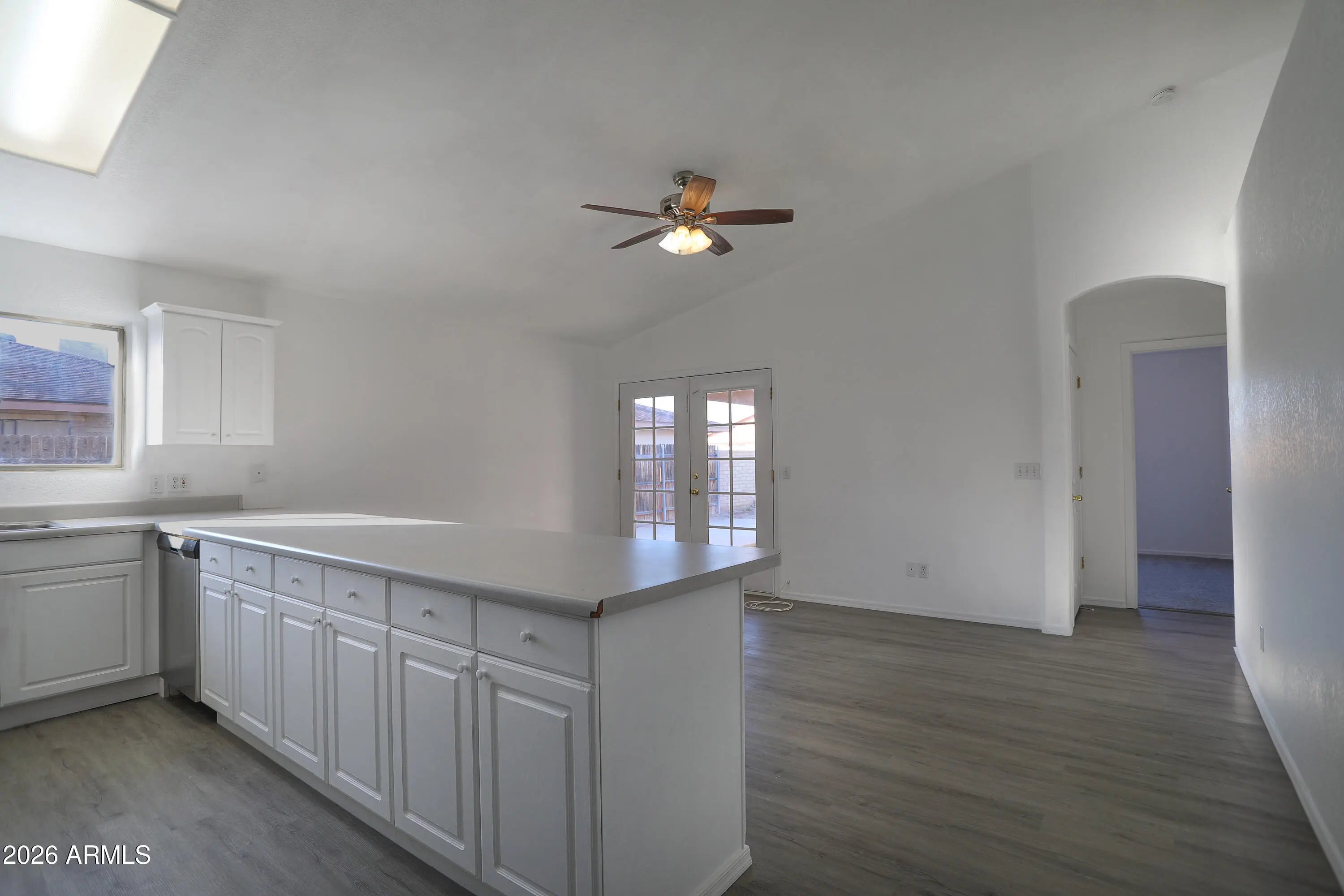 Turn-key 4-bedroom, 2-bath home in Apache Junction, refreshed and ready for its next owners! New flooring, fresh paint, and brand-new stainless steel kitchen appliances, including refrigerator, create a clean, modern feel throughout. Step inside to a welcoming great room highlighted by a charming bay window. The eat-in kitchen features a spacious peninsula/breakfast bar, perfect for baking, casual meals, or entertaining. The dining area opens through French doors to the backyard. Outside, enjoy a covered patio, a 55-foot concrete pad, and two RV gates for easy access. The large yard offers stunning views of the Superstition Mountains with room to create your ideal outdoor space. Lovingly updated by the original owners, this move-in-ready home blends comfort, functionality, and potential.