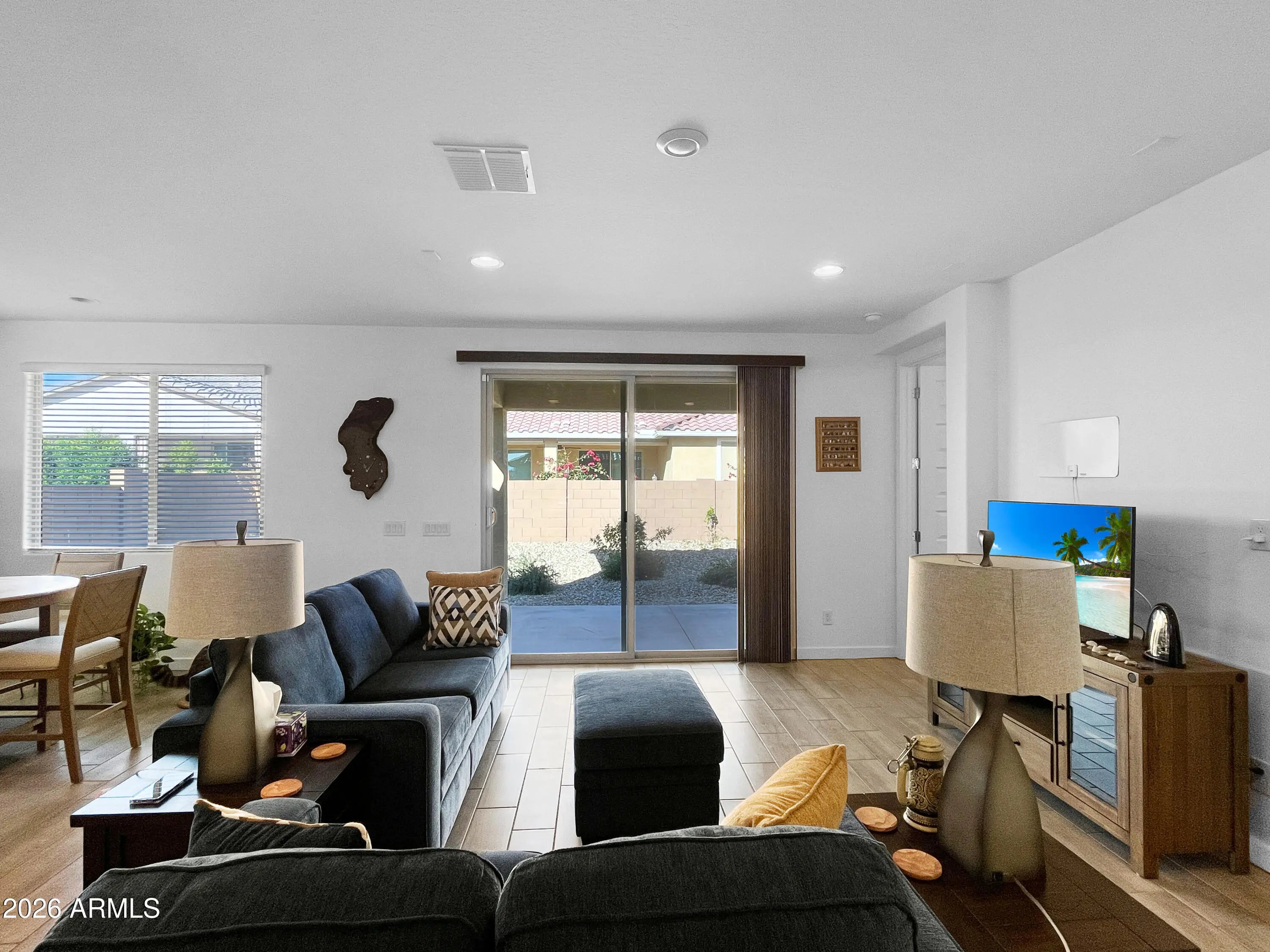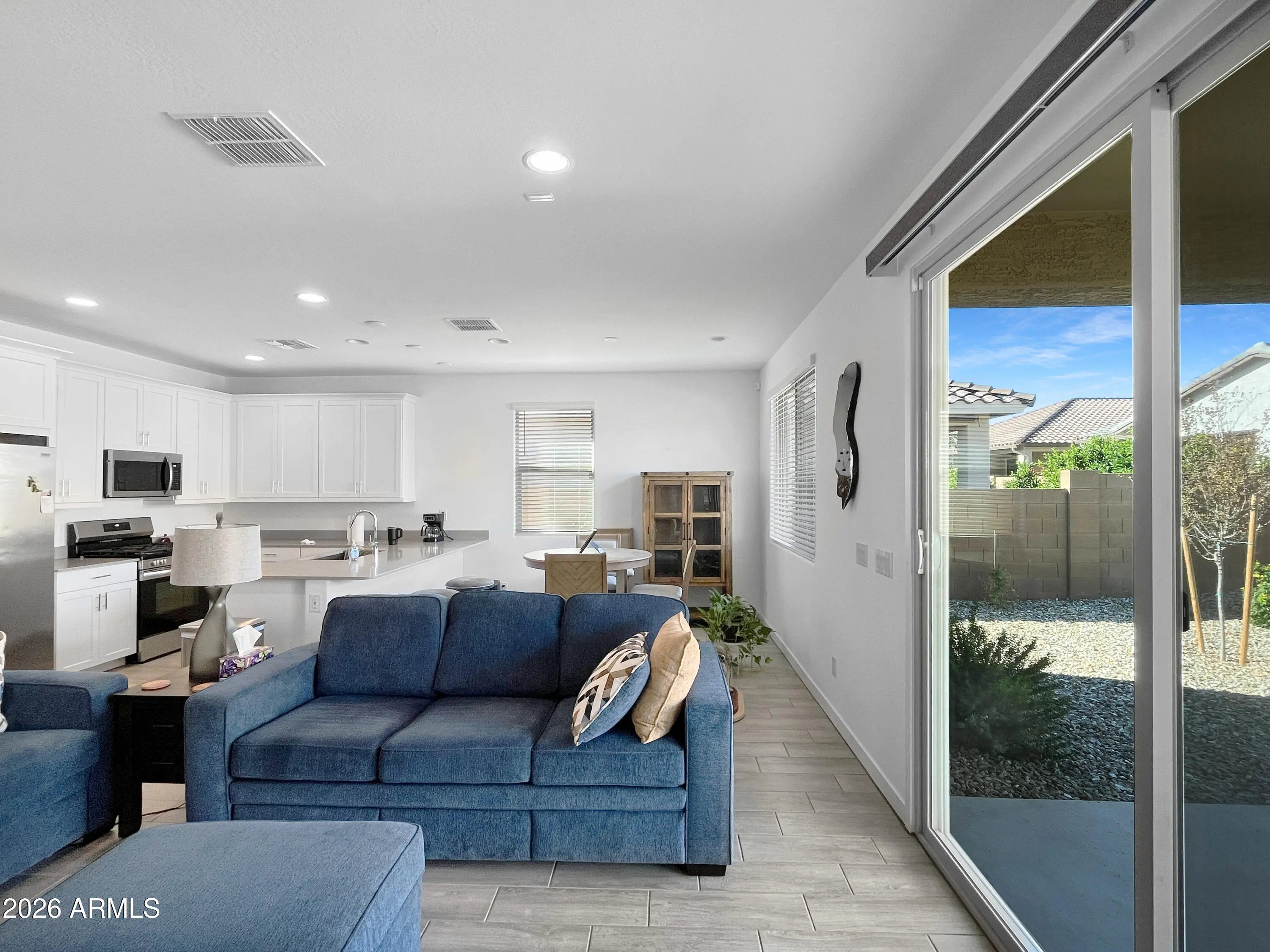 Welcome to this upgraded Woodstock model by Lennar, located within the sought-after 55+ community of Asante. Purchased new in spring 2025, this lightly lived-in home offers the look and feel of a model residence with thoughtfully selected finishes and a well-designed, open layout ideal for comfortable everyday living. The home is offered fully furnished, creating a true turnkey opportunity. The washer, dryer, and refrigerator are also included, allowing the next owner to move in with ease. Bright, open living spaces and quality construction reflect Lennar's modern design and attention to detail. Enjoy Arizona living outdoors in the professionally landscaped backyard, designed for low maintenance and year-round enjoyment. Asante is an active adult community known for its welcoming atmosphere, scenic surroundings, and resort-style amenities, offering residents a lifestyle focused on connection, recreation, and relaxation. This is a rare opportunity to own a nearly new, move-in-ready home with model-quality furnishings and upgrades already in place.