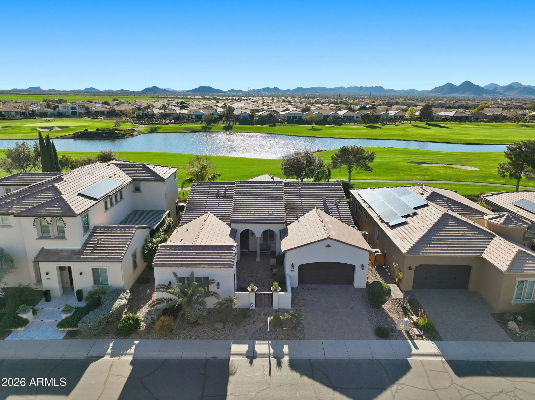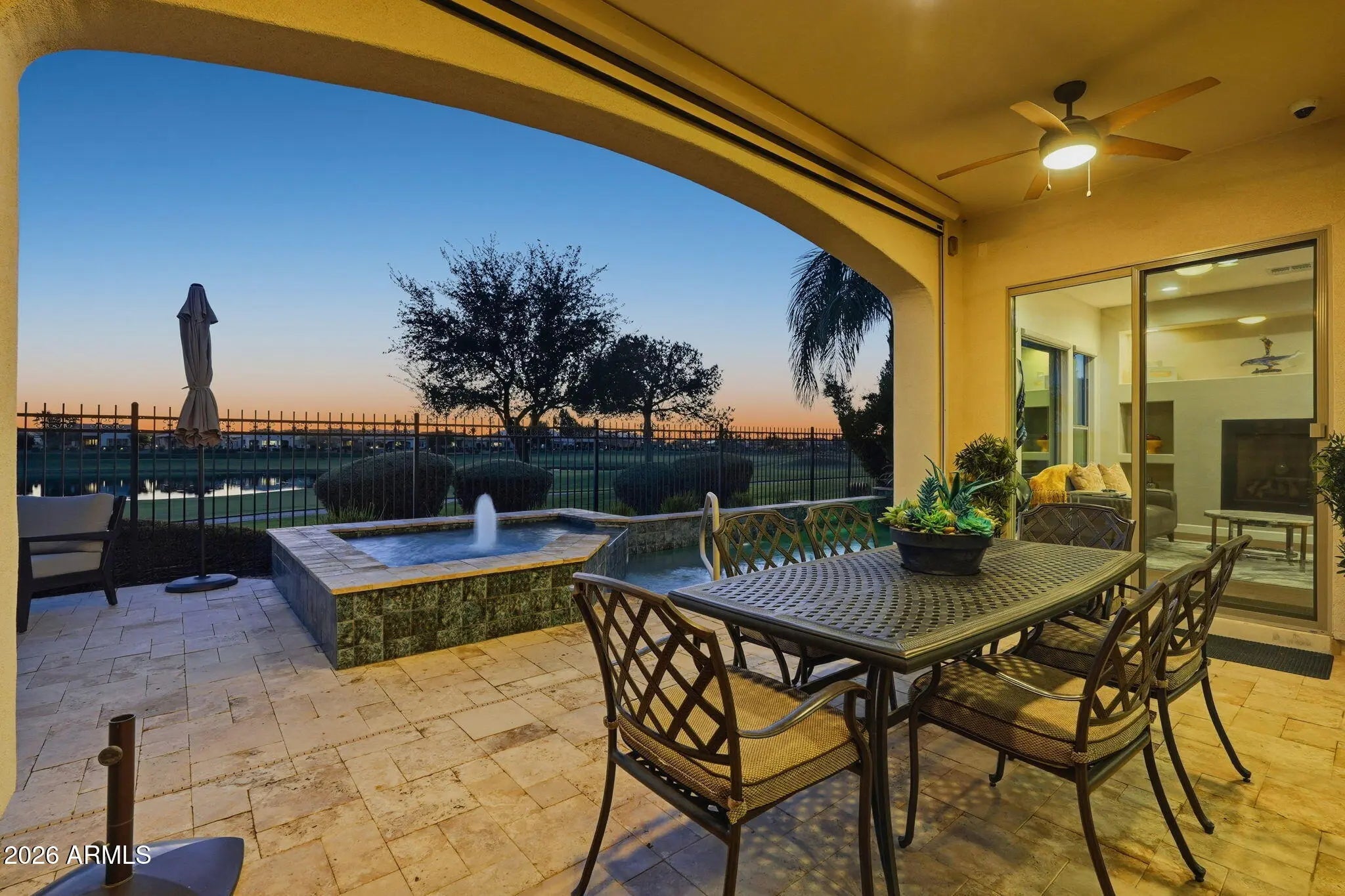 Rare Alora floor plan in Encanterra Country Club with breathtaking golf course, dual fairway, and mountain views! This stunning home shows like a model and features 3 bedrooms, 3.5 baths, including a private casita and separate sitting room, plus a dedicated office. Enjoy Arizona living at its finest with a private pool, expansive kitchen with large island, gourmet appliances, and a gorgeous morning room with fireplace. Thoughtful upgrades include surround sound and remote-controlled shades throughout. Seller is a current golf member—ask agent about the opportunity to join Encanterra's prestigious private golf club without the waitlist! Experience resort-style living with multiple pools, spa, fitness center, championship golf, and award-winning dining. Live The Good Life at Encanterra.