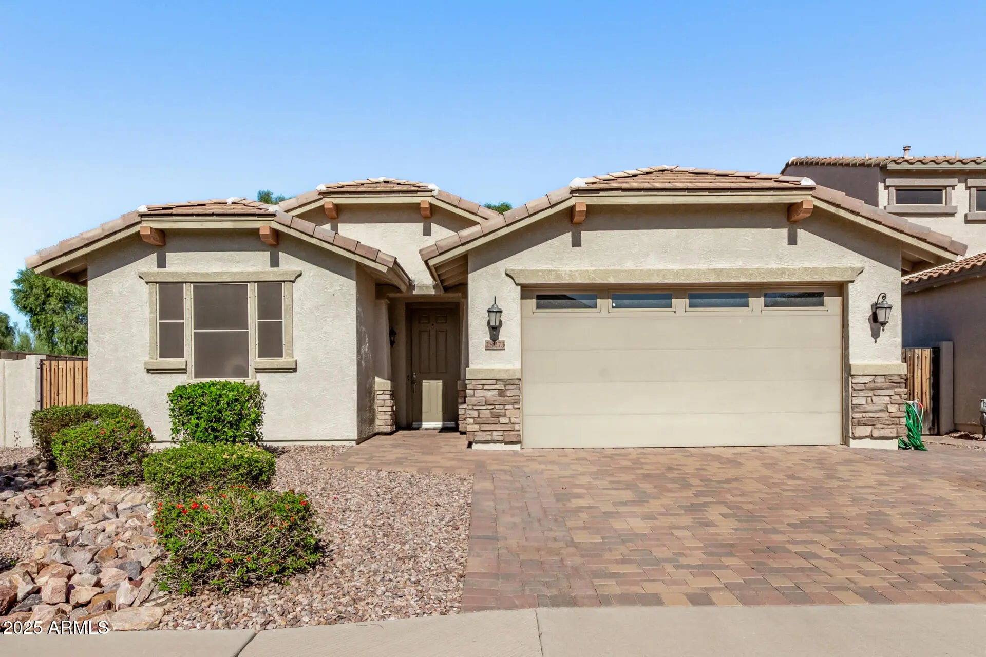 This stunning 3 Bed/2 Bath residence enjoys a prime location within the desirable Johnson Ranch community and offers exceptional appeal throughout. It features an extended driveway, a built-in mister system, sun screens and low-maintenance landscaping. The back patio with ceiling fans provides a comfortable space for outdoor living and entertaining. The kitchen showcases white quartz countertops, a stylish tiled backsplash, a gas range, and generous cabinet storage. A large island with a sink and breakfast bar opens to the spacious living area, creating an ideal setup for gatherings .The primary suite features a walk-in shower and an oversized walk-in closet.