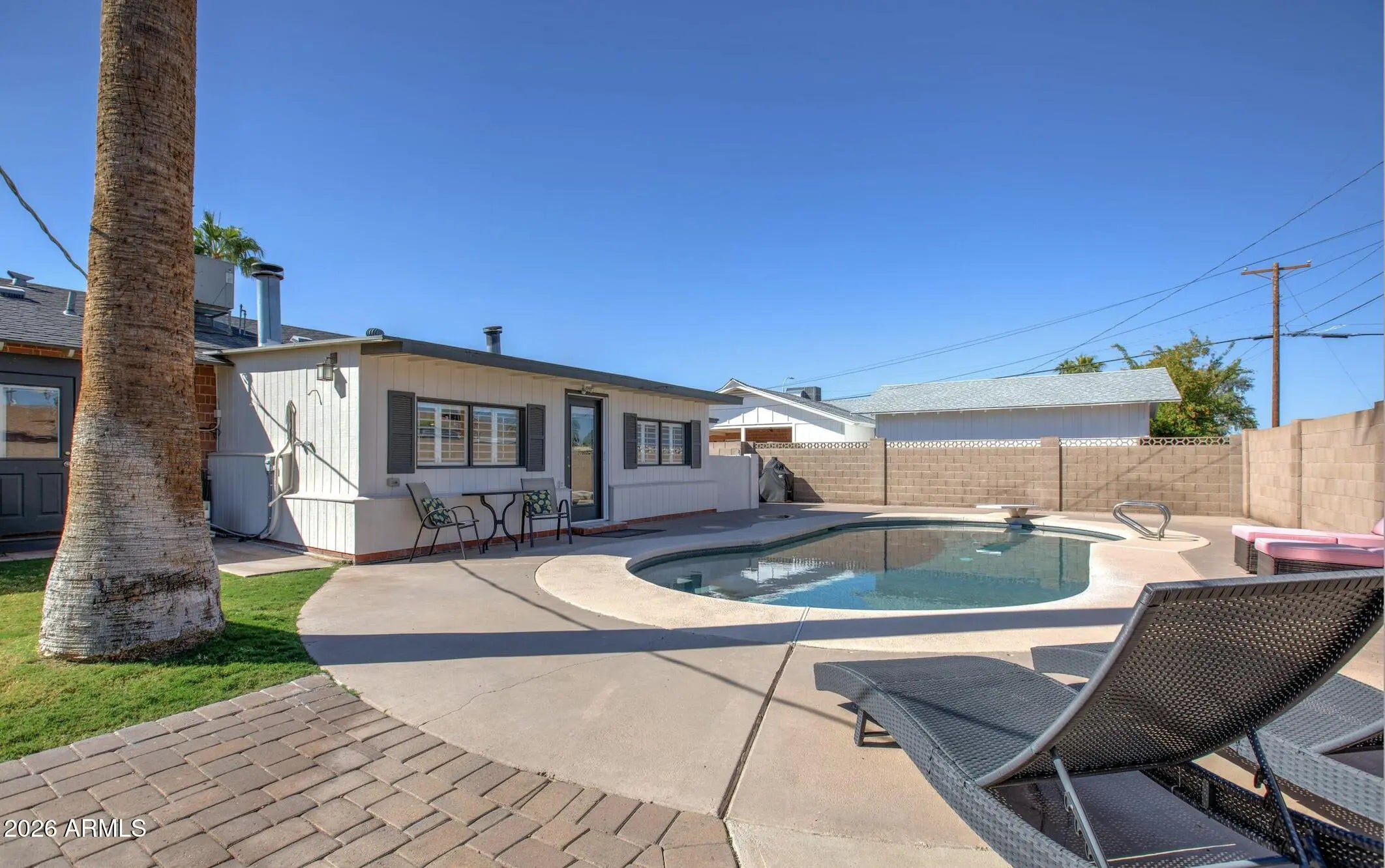 New Tenant in place $4300/ month! Recently Renovated mid century South Scottsdale home in desirable neighborhood with pool / resort style backyard. Best Priced in the area! Large open great room concept to all new chef's kitchen with white cabinets, granite w/waterfall detail, subway tile,Kitchenaid stainless appliances, gas cooktop farmhouse sink. Carpet inHome is light & bright with new plantation shutters.Recently interior &exterior painted.Bathrooms redone.New modern custom interior closet doors & garage floor epoxy.& cabinets. Dual pane widows and fans.Sparkling diving pool with new pool motor filter & cleaner. Outstanding location close to all that South Scottsdale has to offer: Old Town,Sky Song, entertainment, ballparks, golf, restaurants, shopping