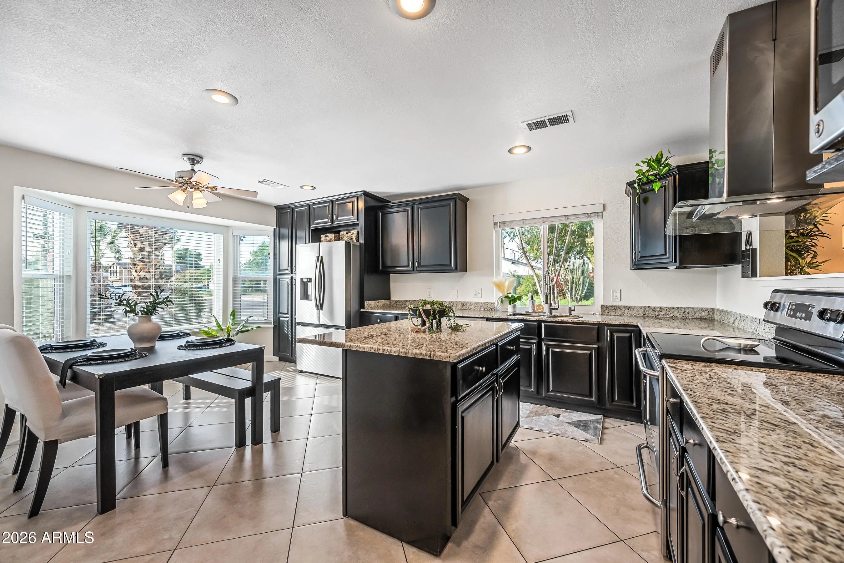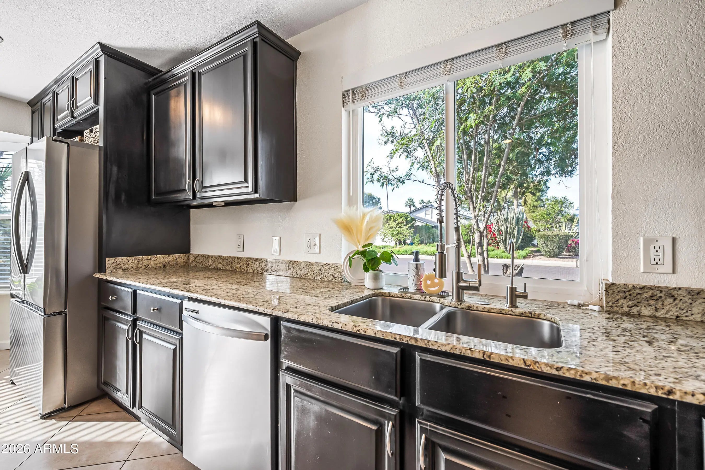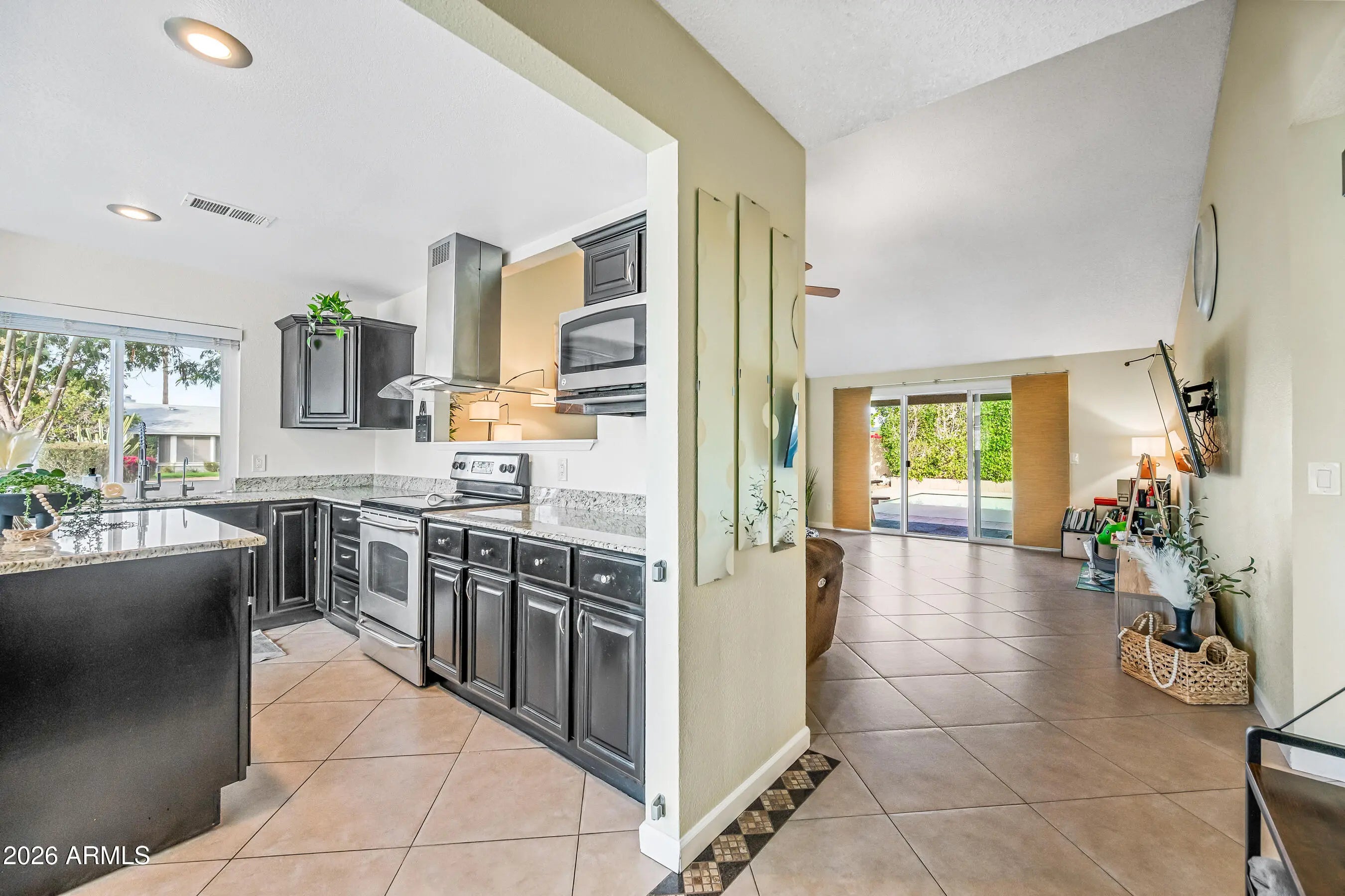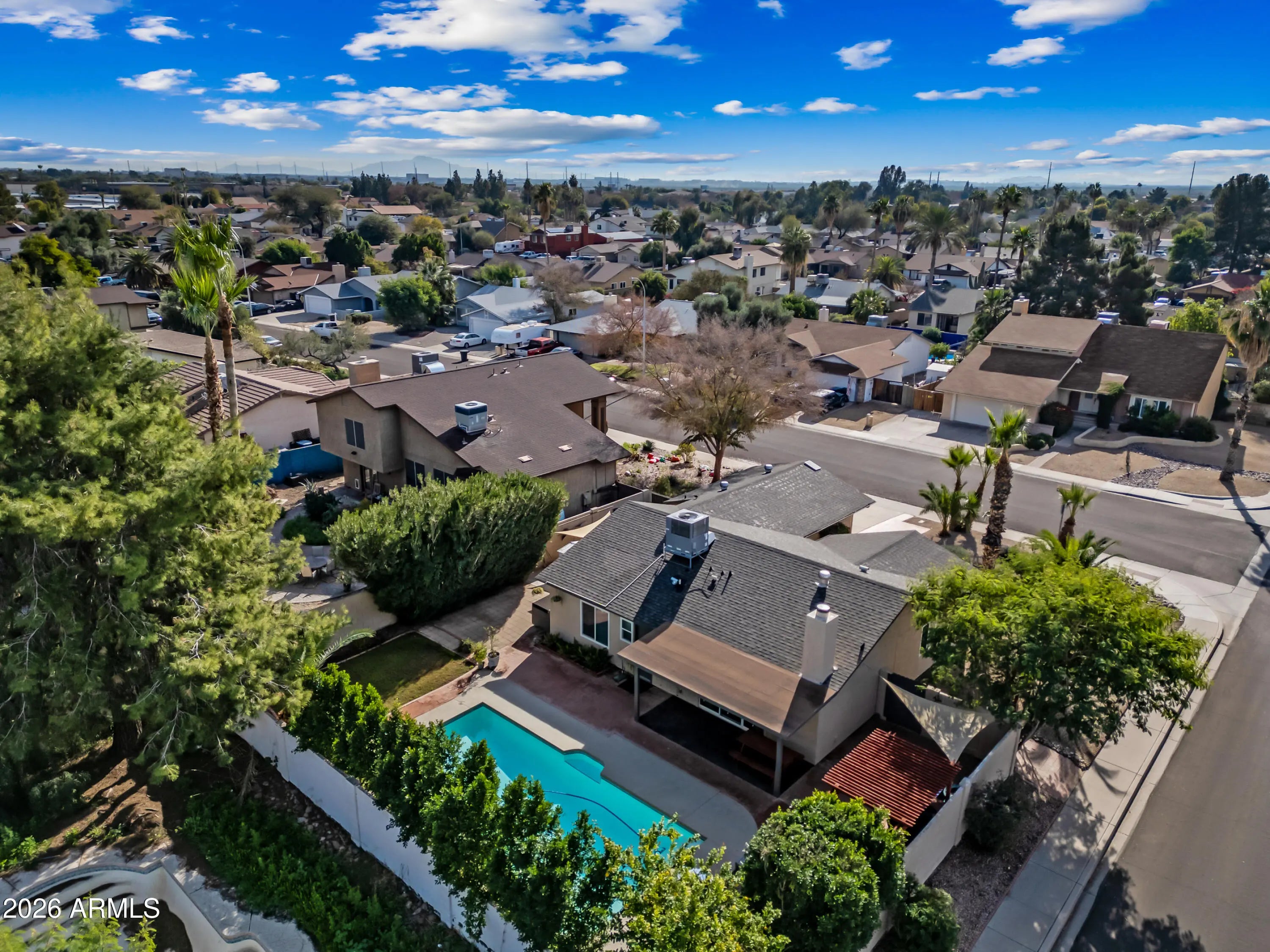 Comfort, style, and Arizona living come together beautifully in this well-maintained 3-bedroom, 2-bath Chandler home. Step inside to a homey feel with vaulted ceilings, neutral tile flooring, and a custom-painted fireplace that sets a warm, inviting tone. Updated lighting and ceiling fans add a modern touch throughout. The kitchen is both functional and fresh, featuring granite countertops, recently painted cabinetry, a newer refrigerator and dishwasher, a 2025 upgraded RO system, and a spacious island, perfect for prep or entertaining..... Retreat to the remodeled primary bathroom, and enjoy peace of mind with thoughtful upgrades including newer windows and screens, updated blinds, a newer water heater, a new A/C with Ecobee smart thermostat, and added insulation for efficiency. Outside, your private backyard is ready for year-round fun with a sparkling play pool, complete with a 2025 upgraded pump and vacuum, ideal for enjoying sunny Arizona days. All of this in a fantastic location just two miles from Chandler Fashion Center, offering easy access to shopping, dining, and major freeways. This is the kind of home that's easy to live in, easy to maintain, and easy to love.