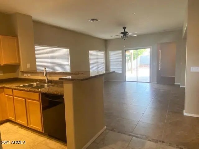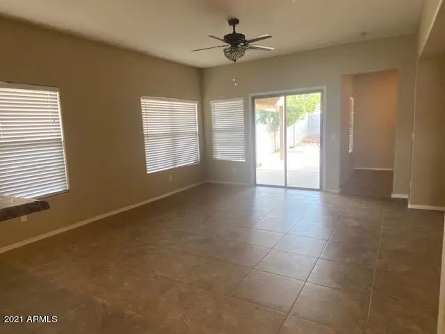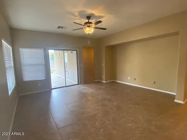 Single-level 3-bedroom + den home with a 2-car garage and private yard, located in the desirable Rancho Bella Vista community within San Tan Ranch. This well-designed floor plan includes a versatile den—ideal for a home office, playroom, or flex space—making this home stand out. Enjoy a large backyard with artificial grass and mature shade trees, perfect for outdoor living with low maintenance. The kitchen features all appliances included and opens nicely to the living areas for easy everyday living and entertaining. Rancho Bella Vista offers exceptional community amenities, including parks, playgrounds, basketball, soccer and volleyball courts, community centers, and miles of walking and biking trails, creating an active, family-friendly lifestyle.