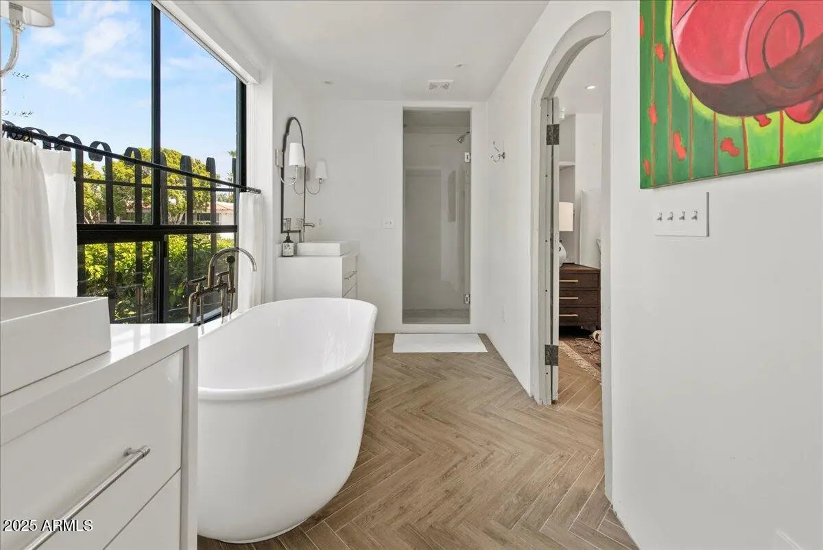 The fabulous Mediterranean townhome was rebuilt with passion in every detail. European appliances,RH finishes, handmade tile and Waterworks fixtures that complement the Moroccan Tadelakt plaster showers. Old-world warmth and charm perfectly couple with modern design creating a rich environment loaded with the elegance and comfort, The herringbone floors, antique arched doors & reclaimed wood shelves juxtapose the sharp, trim-less wall finishes, floating stairs and glass railings. Savor a drink al fresco from the private spa, enjoy Old Town Scottsdale's world-class shopping and dining located just steps away, and take in the exceptional Camelback Mountain views from this private sun filled residence. This stunning home is accompanied by an absolutely phenomenal!