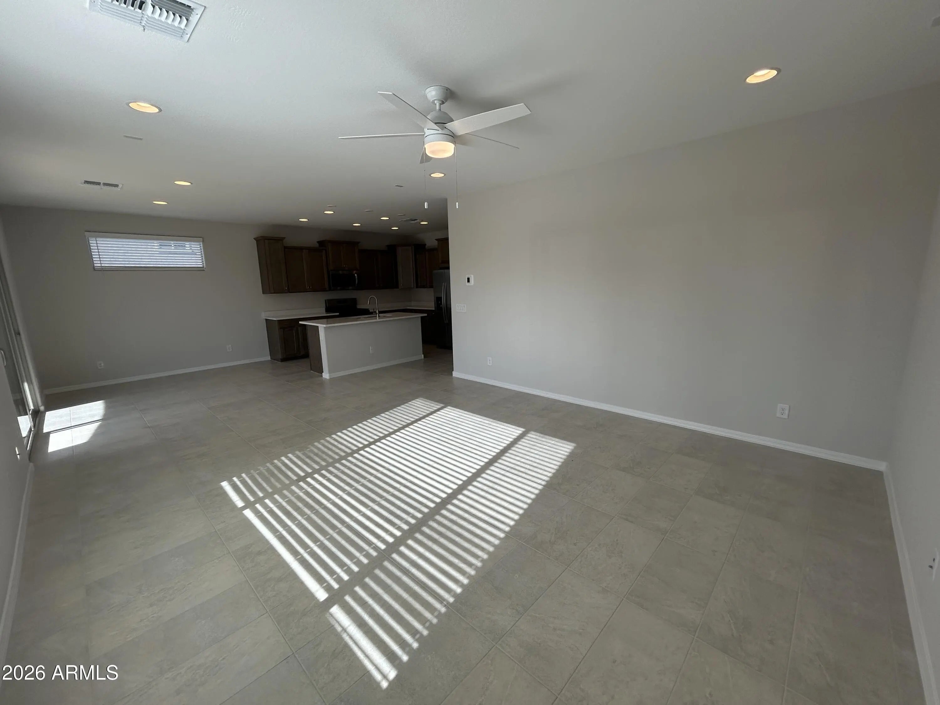 Welcome to this brand new, never-lived-in home that is ready for immediate move-in. This spacious residence offers four bedrooms, two and a half bathrooms, plus a dedicated den and an open loft, providing flexible living space for work, relaxation, and entertaining. The kitchen features elegant quartz countertops with a large center island, upgraded cabinetry, and stainless steel appliances, all flowing seamlessly into a bright great room concept ideal for modern living. Throughout the home, you'll find 2-inch wood blinds on every window and ceiling fans in all rooms for comfort and style. The primary bedroom includes a walk-in shower and a generous walk-in closet, creating a private retreat. Additional highlights include a tankless water heater for energy efficiency and a desirable north/south exposure. The backyard will be finished with artificial turf and decorative rock, offering a low-maintenance outdoor space perfect for enjoyment year-round.