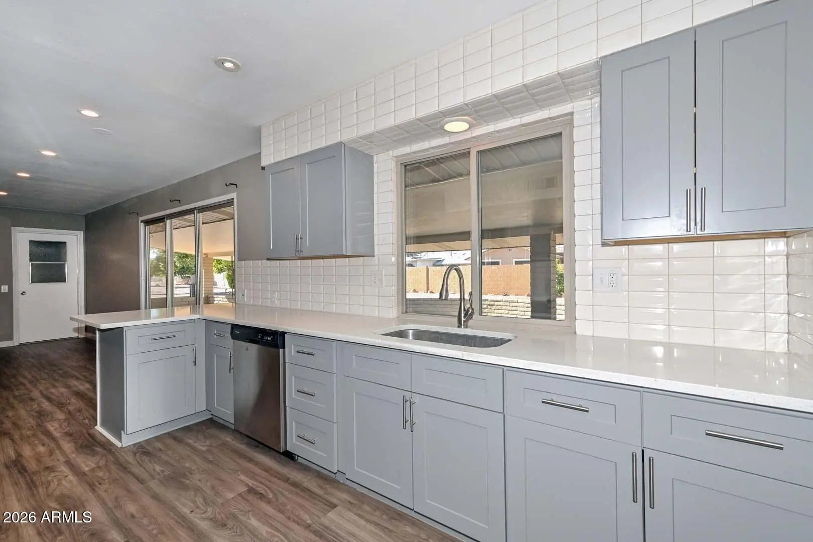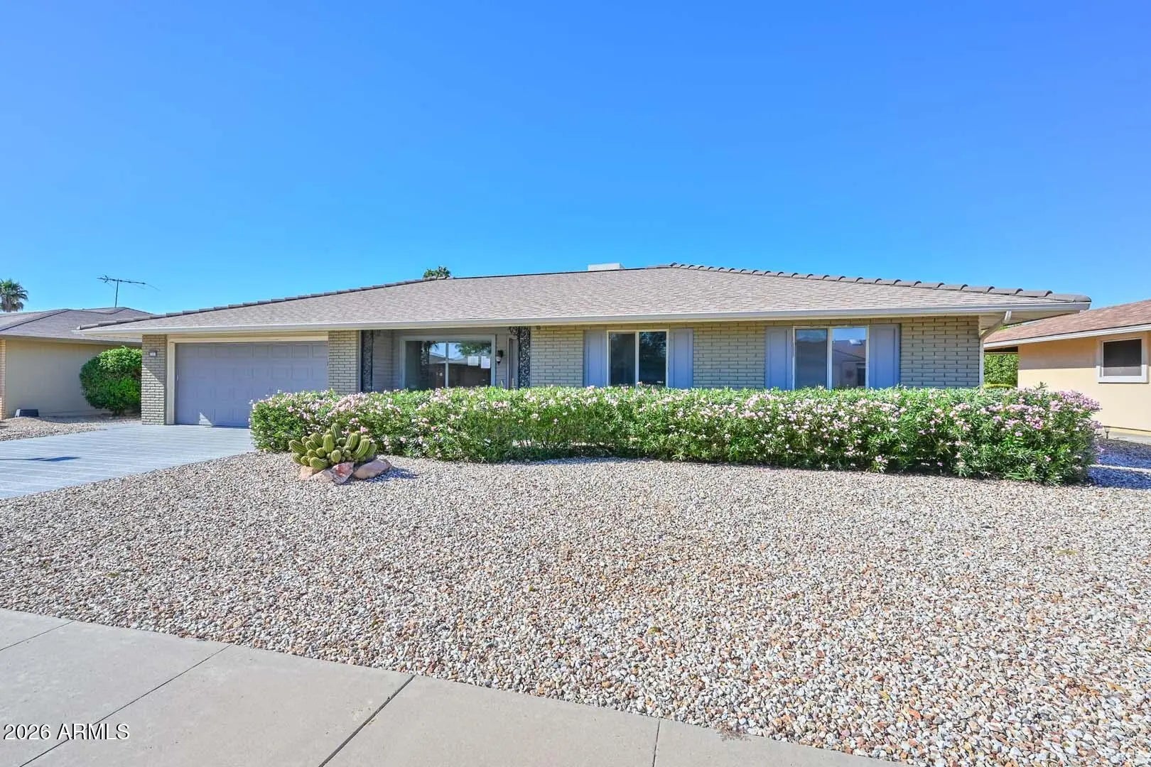 This updated 3-bedroom, 2-bath home offers a comfortable, functional layout in the heart of Sun City. Attractive curb appeal, mature landscaping, and a welcoming entry set the tone. Inside, bright living spaces feature updated flooring and modern lighting, creating an easy flow for everyday living and entertaining. The renovated kitchen includes stainless steel appliances, granite countertops, tile backsplash, ample cabinetry, and a breakfast bar. The primary suite provides a private retreat, while secondary bedrooms offer flexibility for guests or hobbies. A covered patio invites you to relax and enjoy Arizona's beautiful skies. Enjoy Sun City amenities including golf, recreation centers, fitness facilities, pools, spas, and endless activities.