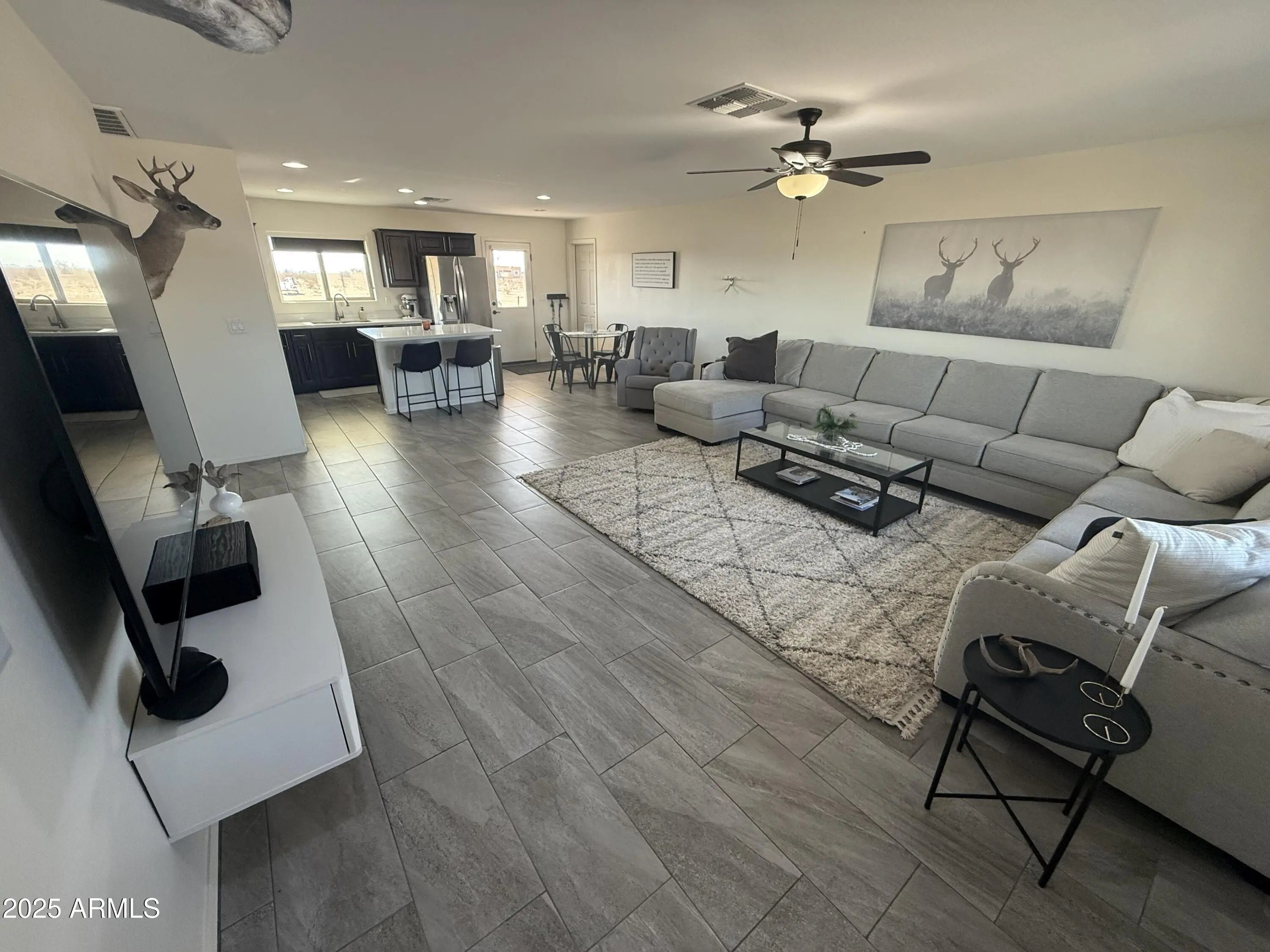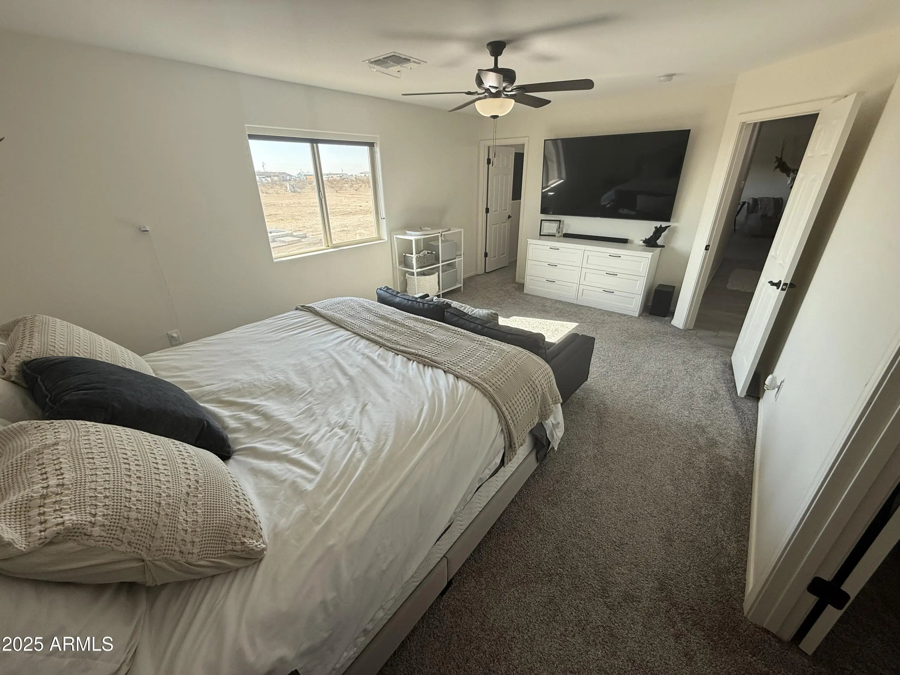 Modern 3-Bed, 2-Bath Home on 1.33 Acres - Horse Property! This recently built home features a modern, open floor plan with very spacious bedrooms. The master suite includes a walk-in closet and an oversized walk-in shower with dual rainfall shower heads. The guest bath also has a large rainfall shower head. Perfect for horses or livestock (up to 5 animals), the property includes a water line to the corral. New Turf and paver landscaping just installed 2025! Ample space for RVs, trailers, and fifth wheels. A 7'x11' storage shed/workshop is ideal for a UTV, golf cart, or tack room. The fully stoned back patio offers stunning mountain views. Great space, great neighbors! Water, Sewer, Washer, Dryer, and Fridge Included!