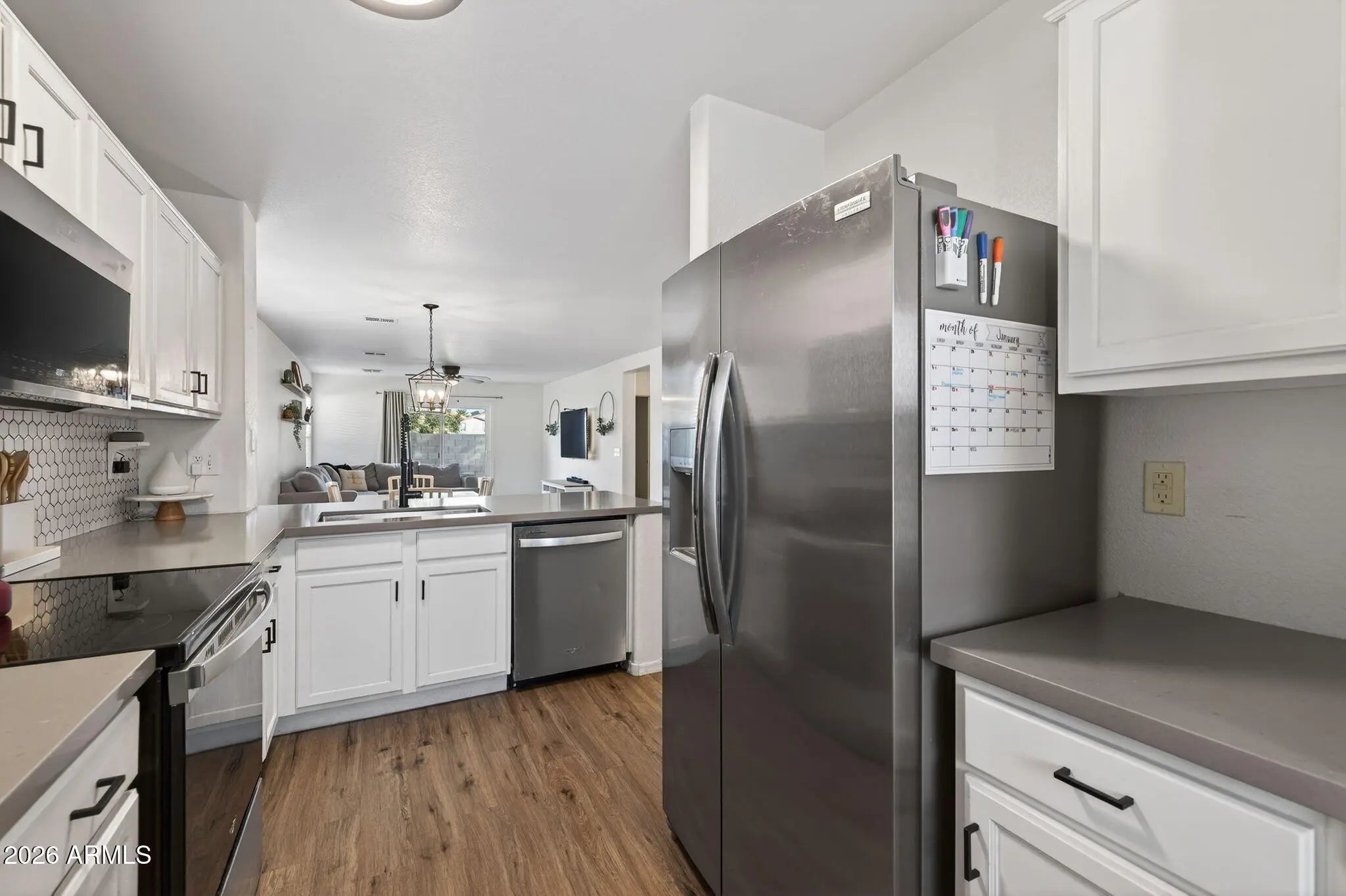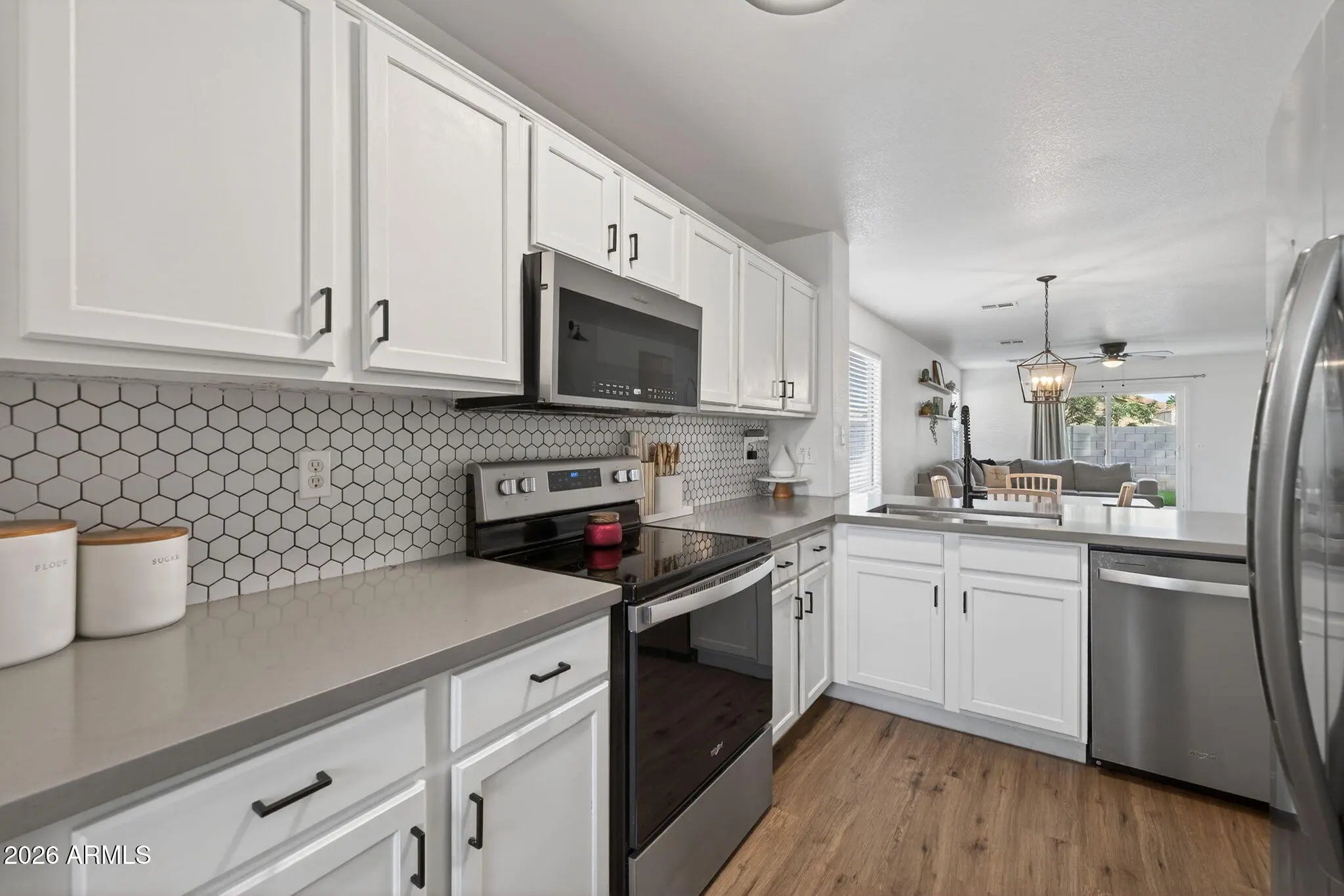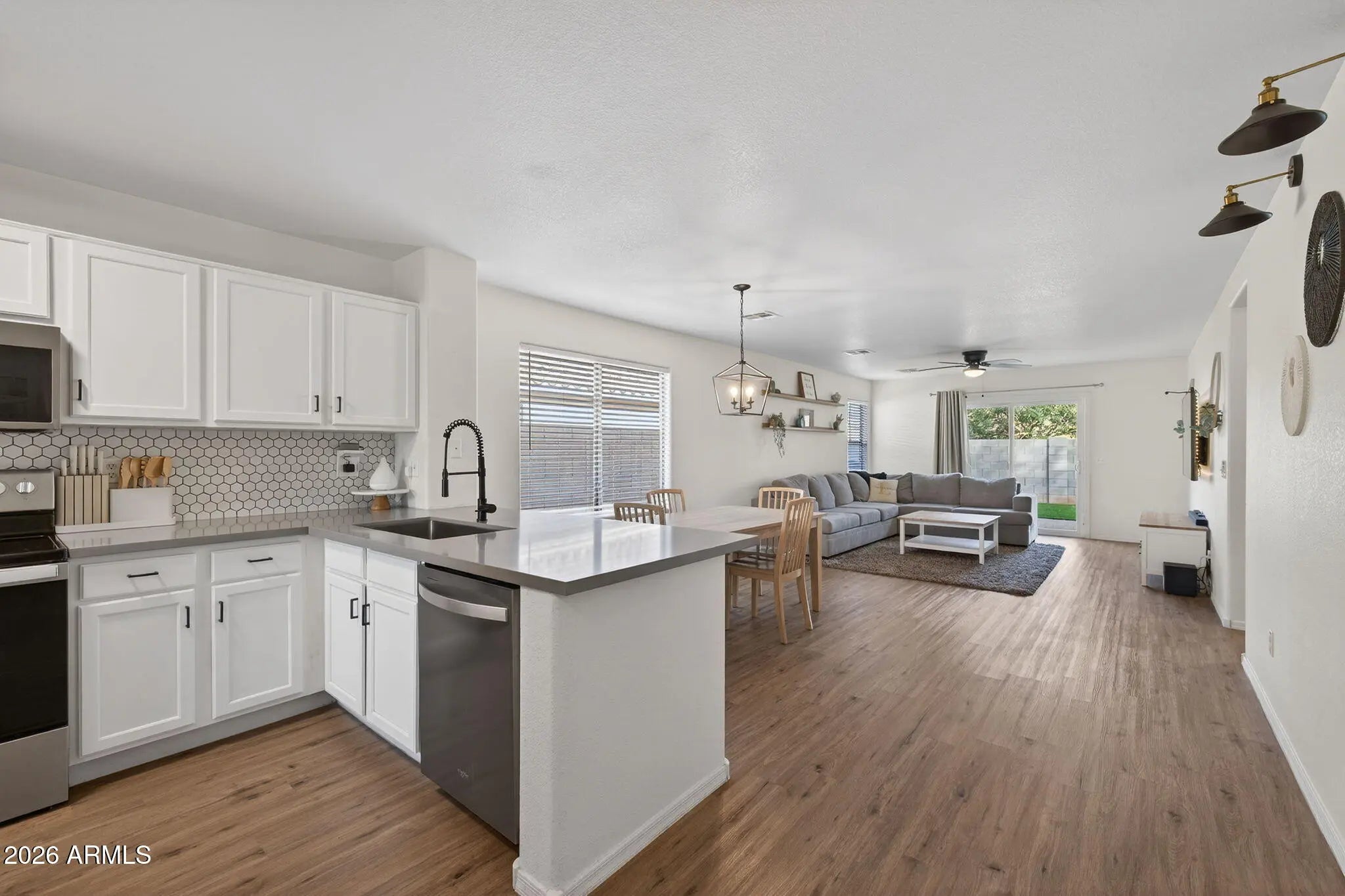 Welcome home to this beautifully updated 4-bedroom, 2-bath residence offering modern style and everyday comfort. The open-concept floor plan is filled with natural light and features a newly renovated kitchen complete with white shaker cabinetry, quartz countertops, farmhouse sink, and stainless steel appliances —perfect for both entertaining and daily living. Brand-new LVP flooring flows throughout the home, adding durability and a clean, contemporary look. Step outside to a low-maintenance backyard with pavers and turf, ideal for relaxing or hosting gatherings. Additional highlights include an RV gate and access to community amenities such as the workout facility, heated pool, basketball courts and parks. Conveniently located near shopping, dining, and everyday essentials. An excellent opportunity for a first-time buyer or those looking to downsize without compromising on style or location.