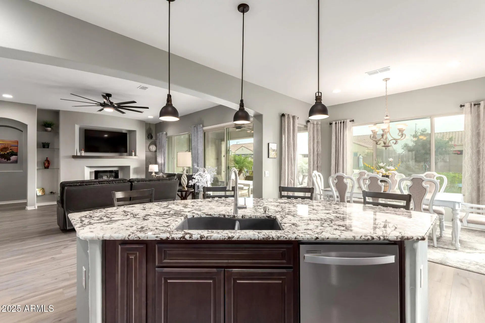 LIFE IS SIMPLY BETTER HERE! This stunning PURSUIT model is located on a quiet cul-de-sac in the sought-after Legends neighborhood of Sun City. BRAND NEW luxury vinyl flooring greets you upon entry, then opens into the smartly designed kitchen w/ granite counters, tile b/splash, SS appliances, pendant lighting, ample cabinetry & so much more. The Great room features custom built entertainment center w/ a cozy fireplace, creating a warm & inviting space. The relaxing Primary suite flows seamlessly into the ensuite bath features separate tub & shower, dual sinks & large walk in closet. Head outside to the spacious private backyard to gather around the fire pit or BBQ on the built-in grill while enjoying a serene water feature! ***4' extended garage w/ epoxy floor, too!*** COME SEE IT TODAY!! Sun City Anthem at Merrill Ranch offers a 48,000 SF recreation center w/ craft rooms for quilting, pottery, glass works, jewelry & crafts, spacious ballroom w/ stage for dancing, theatrical productions, concerts & more. PLUS full gym, work out rooms, indoor lap pool & spa, walking track, cafe area, card rooms, poker tables, pool table, ping pong table, business center, class room for interesting seminars! Troon Poston Butte Golf Course is one of the nicest in the area. Sun City offers Pickleball, Tennis, Bocce Ball, Horseshoes, Shuffleboard, clubs for all activities.......LIVE WHERE THE SURROUNDINGS DELIGHT, INSPIRE & CHALLENGE YOU!