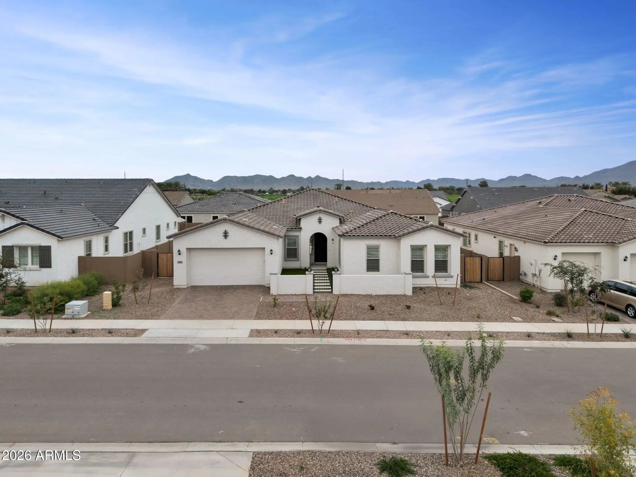 Up to $40,000 in buyer incentives available, which may allow qualified buyers to secure rates as low as 4.99% through preferred lending options or apply funds toward closing costs! This move-in ready Queen Creek home offers the rare opportunity to enjoy new build living without compromising time. Built in 2025 and upgraded beyond model home standards, this 5 bedroom, 4.5 bathroom single-story residence spans 3714 square feet on a large lot. Featuring the highly desirable Palisade floor plan, sought after across the Phoenix area for its functional layout and livability, the home showcases a north-facing orientation with a southeast kitchen, high-end flooring reminiscent of custom Beverly Hills design, luxury kitchen and appliance upgrades, elevated bathroom finishes, plantation shutters, an Located near Queen Creek Marketplace's shopping, dining, entertainment along with golf, top-rated schools, and easy freeway access just minutes away. This home is less than 10 minutes to Mesa Gateway Airport. Designed for effortless indoor-outdoor living, the great room flows seamlessly to outdoor spaces, while the low-maintenance front and backyard minimize dust and offer the flexibility to personalize over time with a pool or entertainment features. The primary suite features a bespoke spa-like bath and shower, along with a hidden-door walk-in closet that connects directly to the extra large laundry room. 2 spacious flex spaces, a teen room, and 4 additional bedrooms provide endless options for work, play, or relaxation. The single-story layout supports everyday living, entertaining, and multi-generational needs, complemented by a tandem 3 car garage with added storage. The master-planned community offers a lifestyle-forward environment with a lake, splash pad, playground, pickleball courts, and additional amenities.