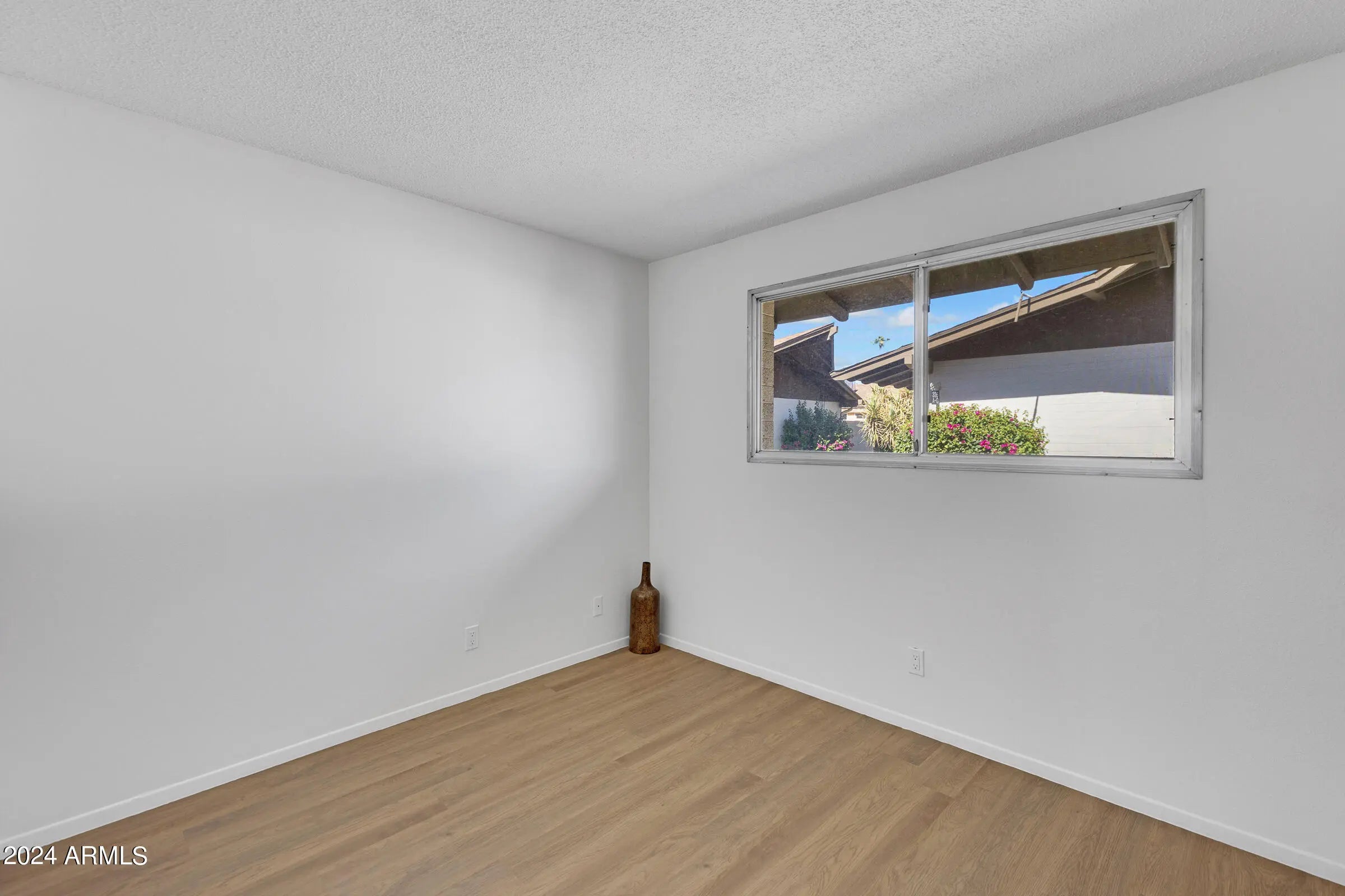 Retro vibes radiate from this renovated END unit! South Scottsdale Condo in close proximity to all things Scottsdale & DTPHX! In the last year the unit has received lots of TLC! NEW roof, NEW interior electric panel, NEW city sewer connection, Luxury Vinyl Plank flooring throughout, updated bathroom & kitchen, new light fixtures, ceiling fans & FULL size laundry space in BONUS room which also offers extra space for office, workout or play room! HOA fees are extremely reasonable at only $250/mo. including large heated community pool for year round enjoyment, mature fruit trees throughout the complex & assigned covered parking. The low HOA fee also includes water, sewer & trash. Notice the common areas in this complex which feature walking paths, BBQ/picnic areas & much more!