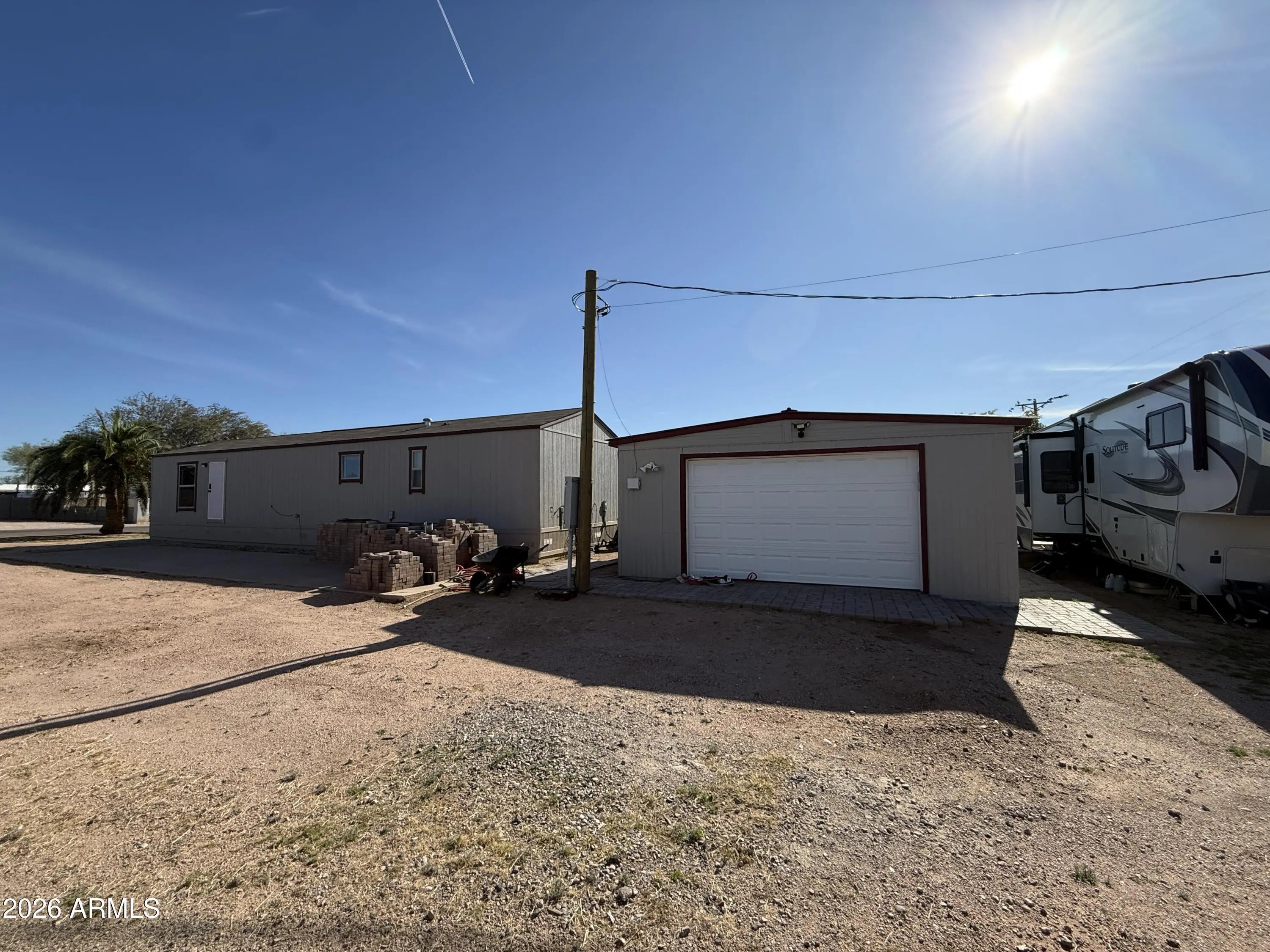 Built in 2023, this manufactured home delivers modern efficiency, clean finishes, and dependable systems—no deferred maintenance, no outdated components. The 2 bed, 2 bath layout functions as a comfortable home base while the property does the heavy lifting for your lifestyle. New electrical and plumbing support serious use, including 30 & 50 amp RV/boat hookups and an RV dump tied directly into city sewer. The approx. 19' x 34' shop is foam insulated, climate-controlled with a mini-split, and wired with multiple 20-amp breakers for tools and equipment. Ideal for the buyer who wants a newer home, real workspace, and room for RVs, boats, and projects—without being boxed in by the city