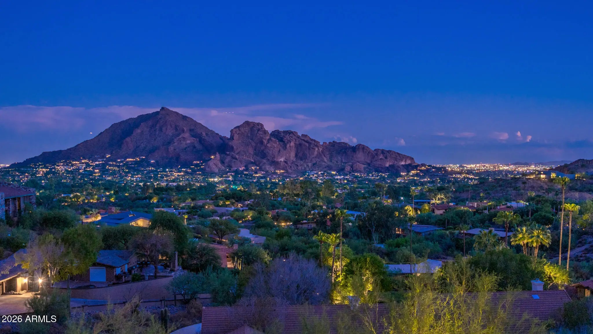 Welcome to the quintessential lock-and-leave second home in Arizona's WEALTHIEST Zip code, located within the prestigious GUARD-GATED Clearwater Hills community. This mid-century residence offers epic Camelback Mountain and city light views with primarily single-level living and guest accommodations below. Reconstructed in 2007 by award-winning builder Greg Hunt, the home blends iconic architecture with modern luxury. The main level features walnut hardwood floors, Hope wrought iron windows and doors, formal living and dining spaces, and a gourmet kitchen with Russian marble, dual islands, and Sub-Zero/Wolf appliances. Below, a bonus family room and guest bedrooms create the perfect retreat for visitors. A timeless hillside sanctuary that defines Paradise Valley living at its finest.