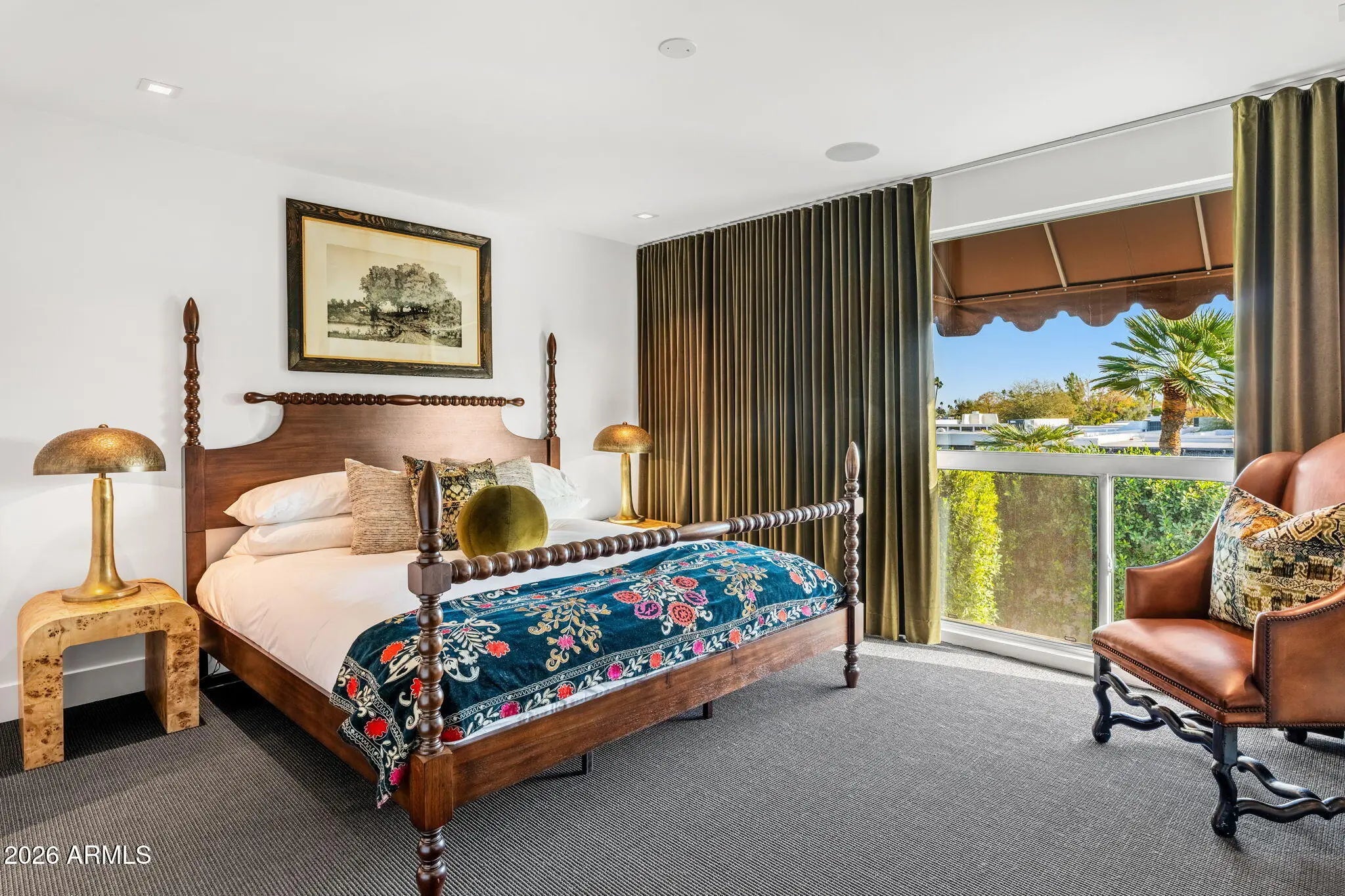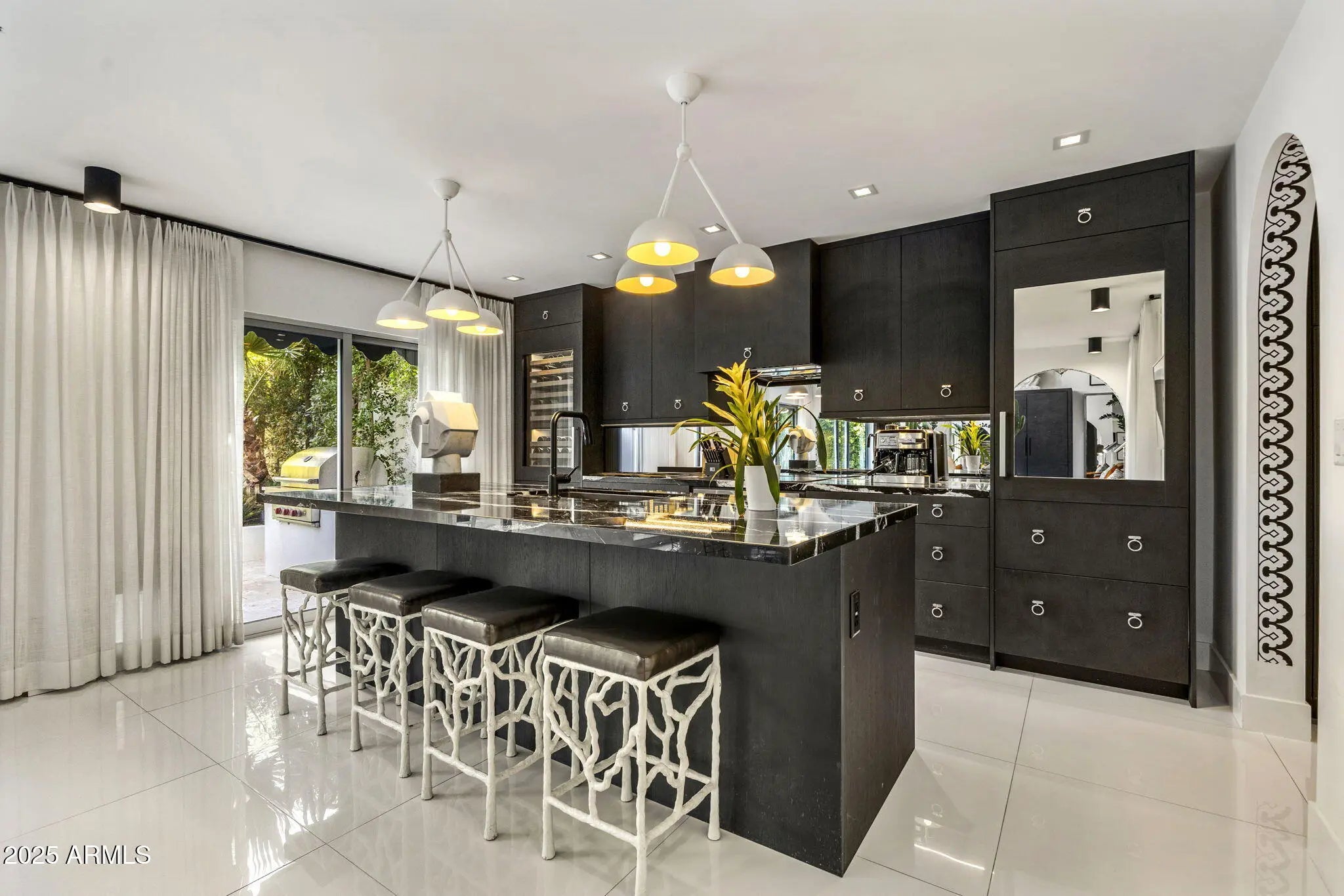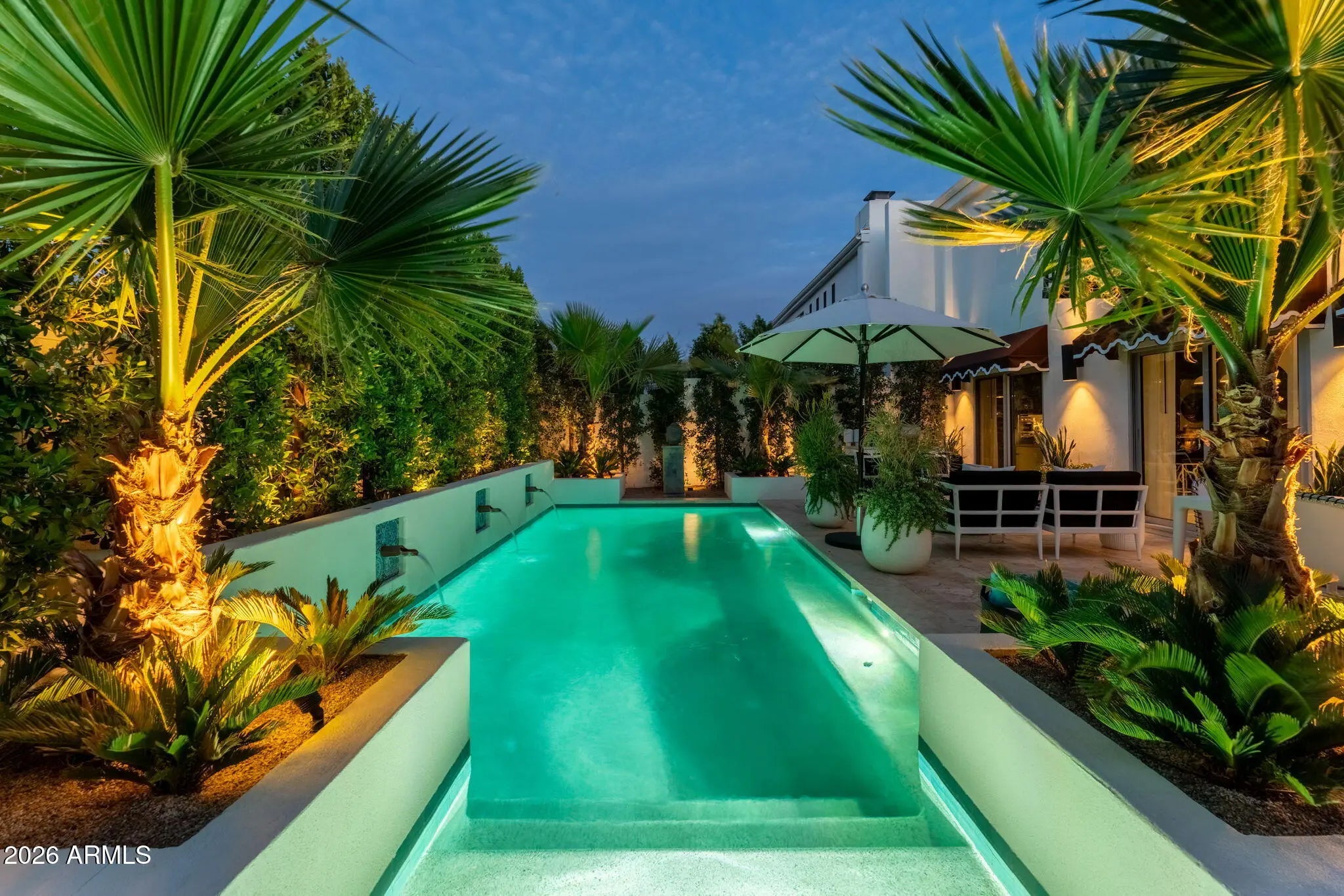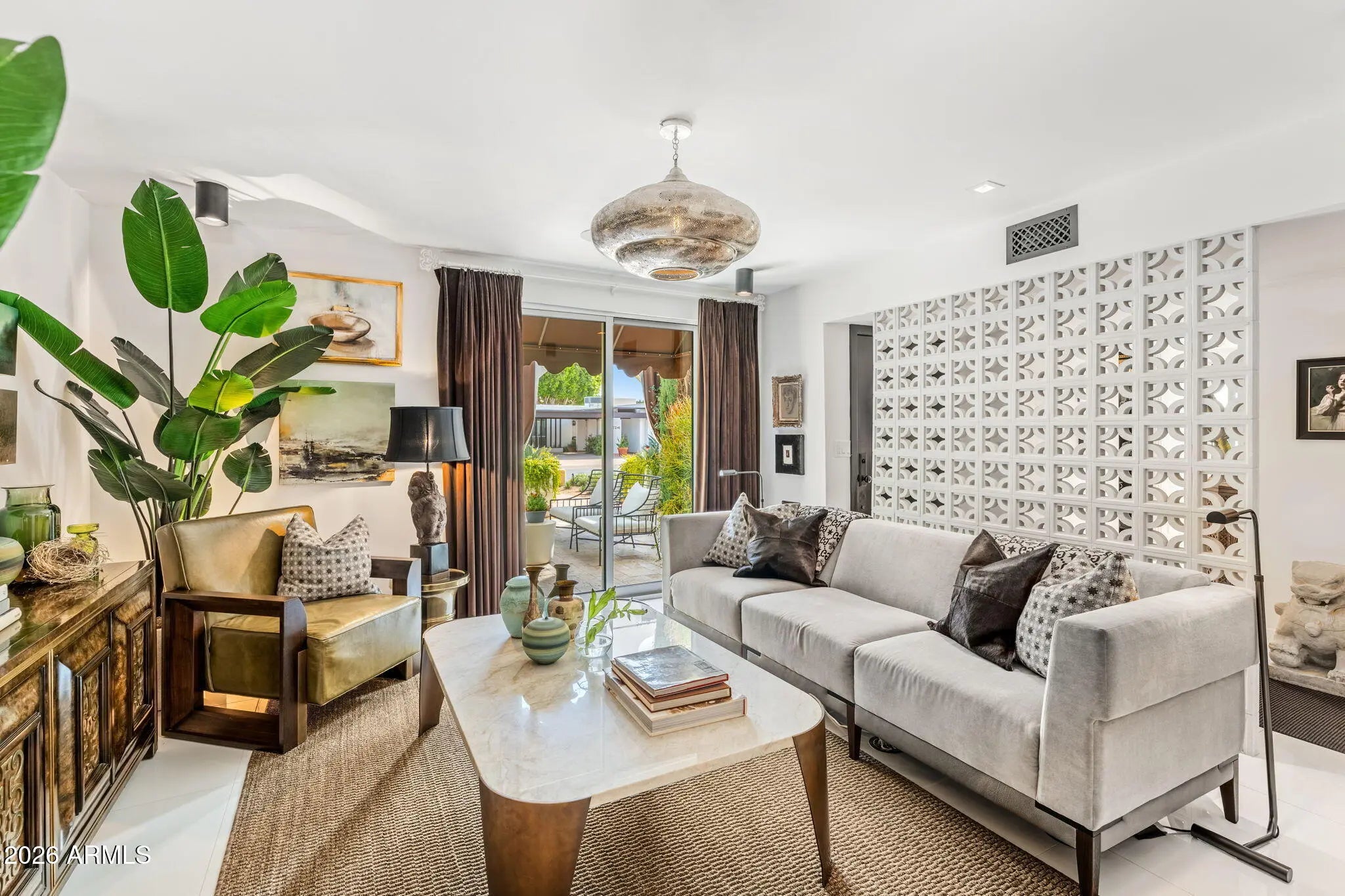 Introducing a newly rebuilt creative oasis, where historic charm meets post modern flair. This private residence of renowned Interior Designer James McIntyre, has been featured on the cover of Phoenix Home & Garden magazine as well as the Phoenix Home & Garden tour 2024. Completely reimagined, this jewel box invites you in with the arched front courtyard retreat lined in gorgeous drapery, lush landscaping and charming awnings. The fabulous great room features 17' ceilings, with custom molding, and floor to ceiling drapes with a quartet of suspended Moroccan lanterns. Arches beckon you into the elegant eating area and chef's kitchen featuring ebonized quarter-cut custom oak cabinetry, sleek marble countertops, Sub Zero refrigerator, and wine refrigerator, 2 beverage drawers, wolf oven, induction cooktop and cove dishwasher. With a nod toward 1970's Hollywood glam, breeze block was added, providing an element of mystery from the main dining room and family room. This masterpiece features 4 bedrooms with ensuites, with 1 bedroom on the main level and 3 bedrooms on the 2nd level. The back yard has an intimate Beverly Hills hotel flair, with new pool, water features, lush landscaping, privacy hedge, fire feature and built in grill. Perfectly situated across from the new Ritz Carlton hotel and backing a huge park, this townhome is walkable to many restaurants and shopping.