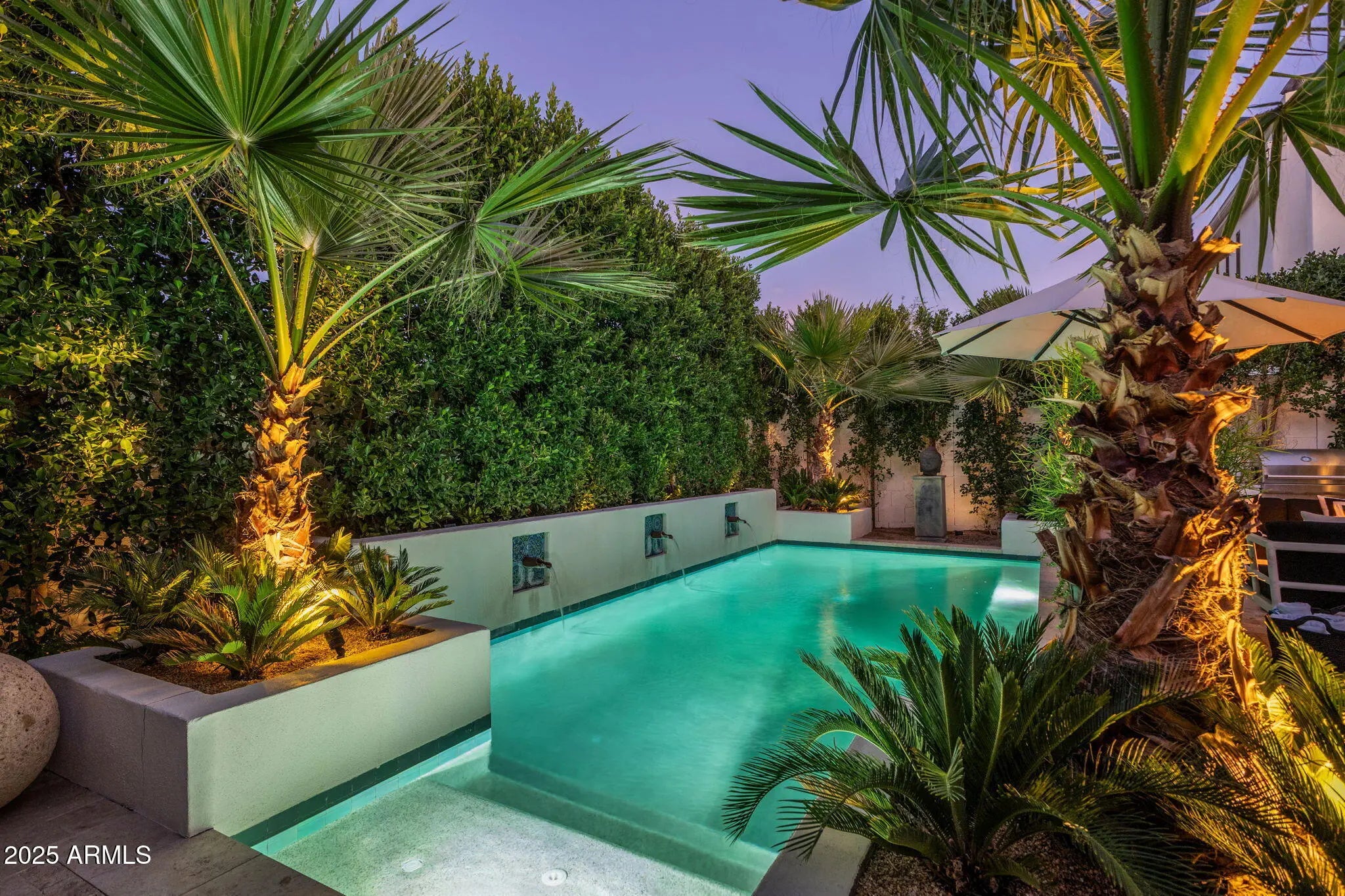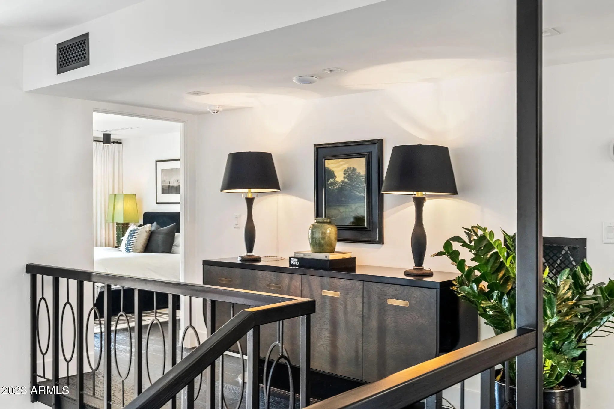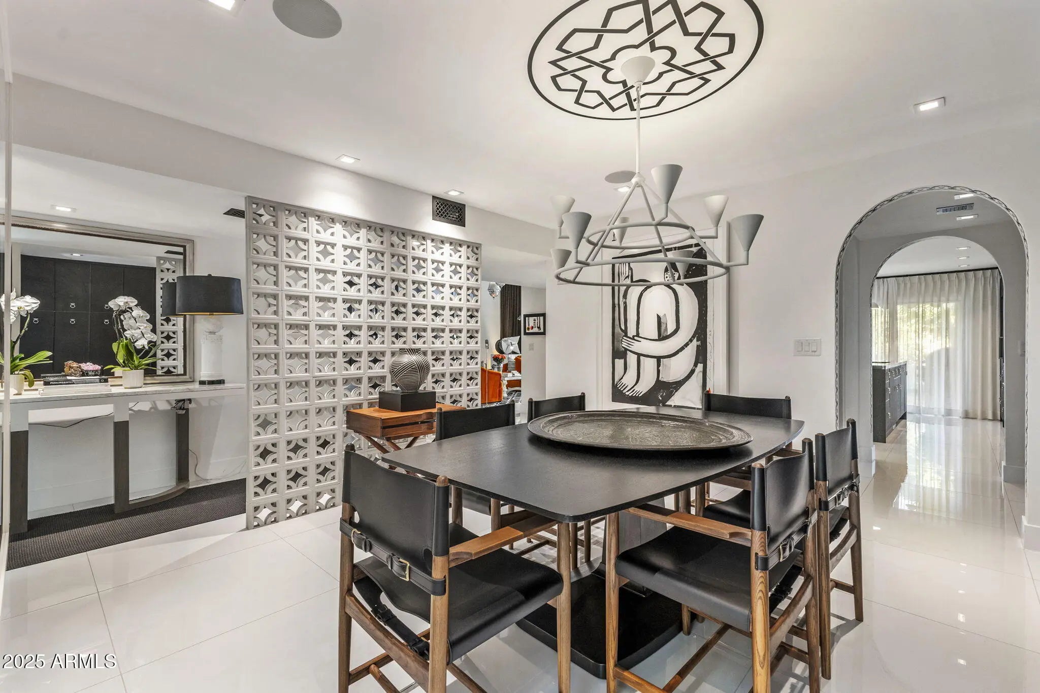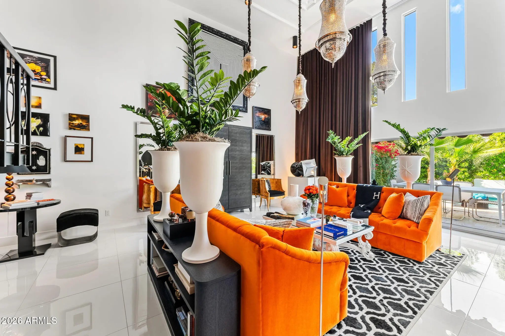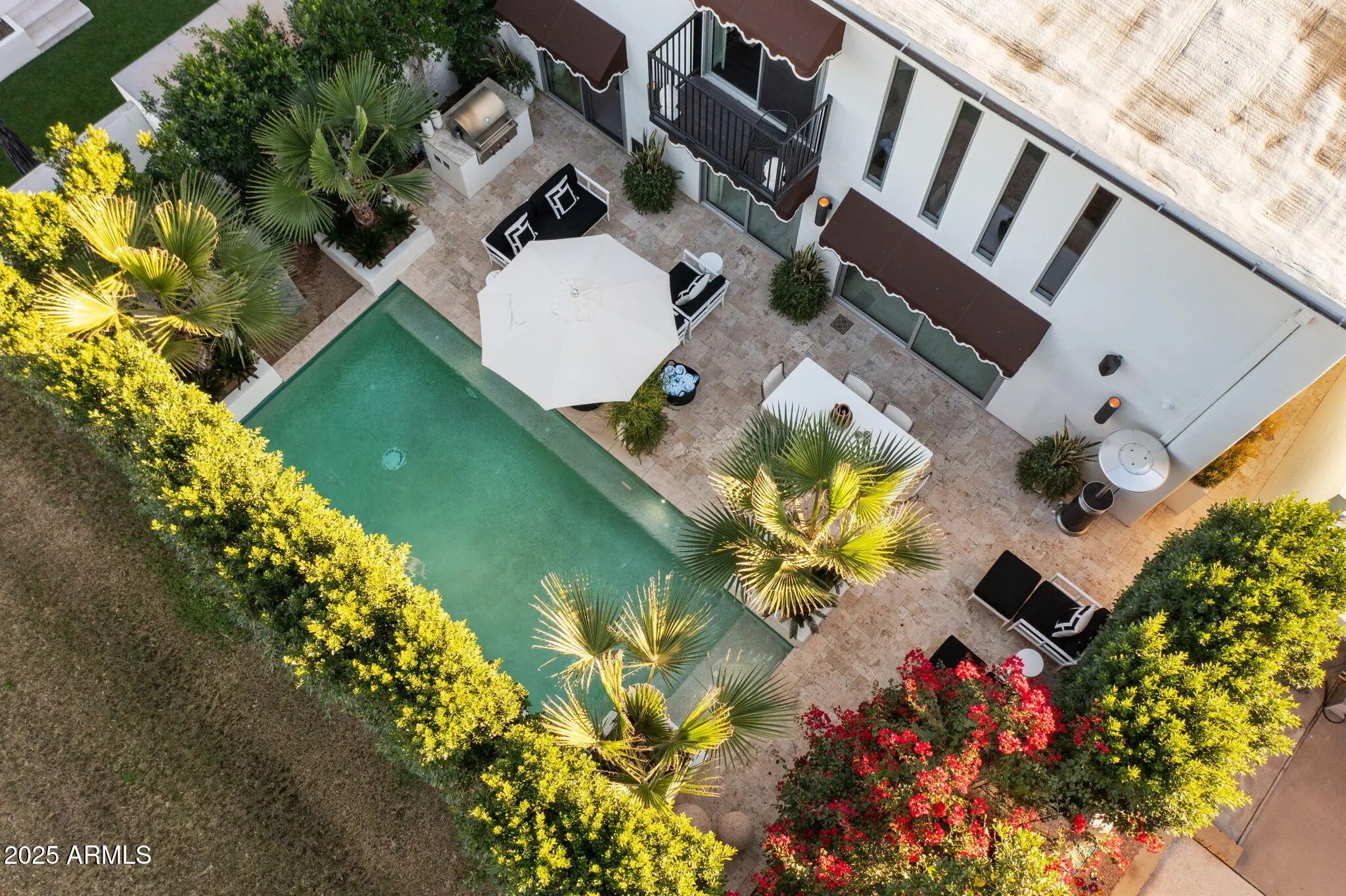 Introducing a newly rebuilt creative oasis, where historic charm meets post modern flair. This private residence of renowned Interior Designer James McIntyre, has been featured on the cover of Phoenix Home & Garden magazine as well as the Phoenix Home & Garden tour 2024. Completely reimagined, this jewel box invites you in with the arched front courtyard retreat lined in gorgeous drapery, lush landscaping and charming awnings. The fabulous great room features 17' ceilings, with custom molding, and floor to ceiling drapes with a quartet of suspended Moroccan lanterns. Arches beckon you into the elegant eating area and chef's kitchen featuring ebonized quarter-cut custom oak cabinetry, sleek marble countertops, Sub Zero refrigerator, and wine refrigerator, 2 beverage drawers, wolf oven, induction cooktop and cove dishwasher. With a nod toward 1970's Hollywood glam, breeze block was added, providing an element of mystery from the main dining room and family room. This masterpiece features 4 bedrooms with ensuites, with 1 bedroom on the main level and 3 bedrooms on the 2nd level. The back yard has an intimate Beverly Hills hotel flair, with new pool, water features, lush landscaping, privacy hedge, fire feature and built in grill. Perfectly situated across from the new Ritz Carlton hotel and backing a huge park, this townhome is walkable to many restaurants and shopping.