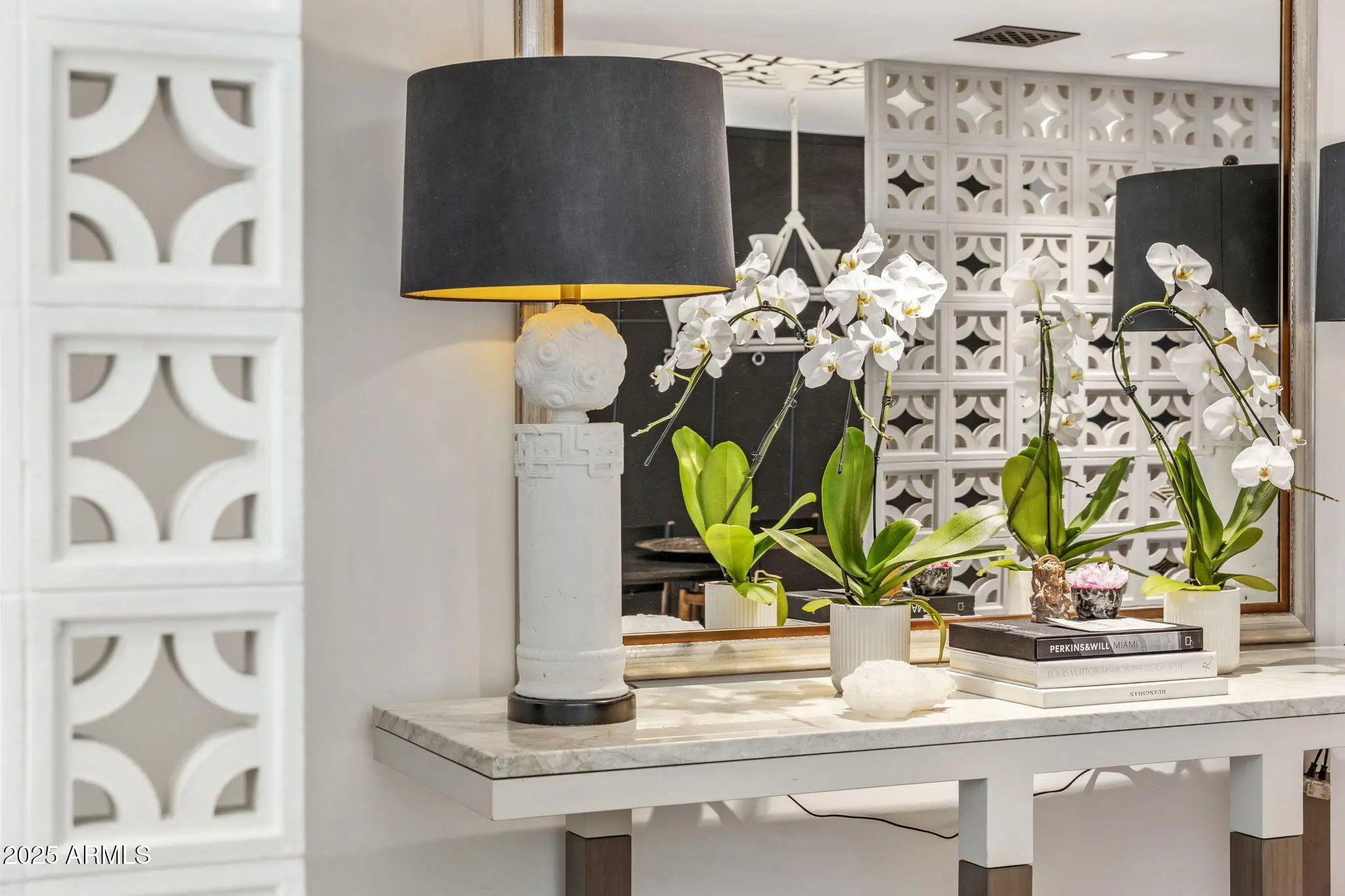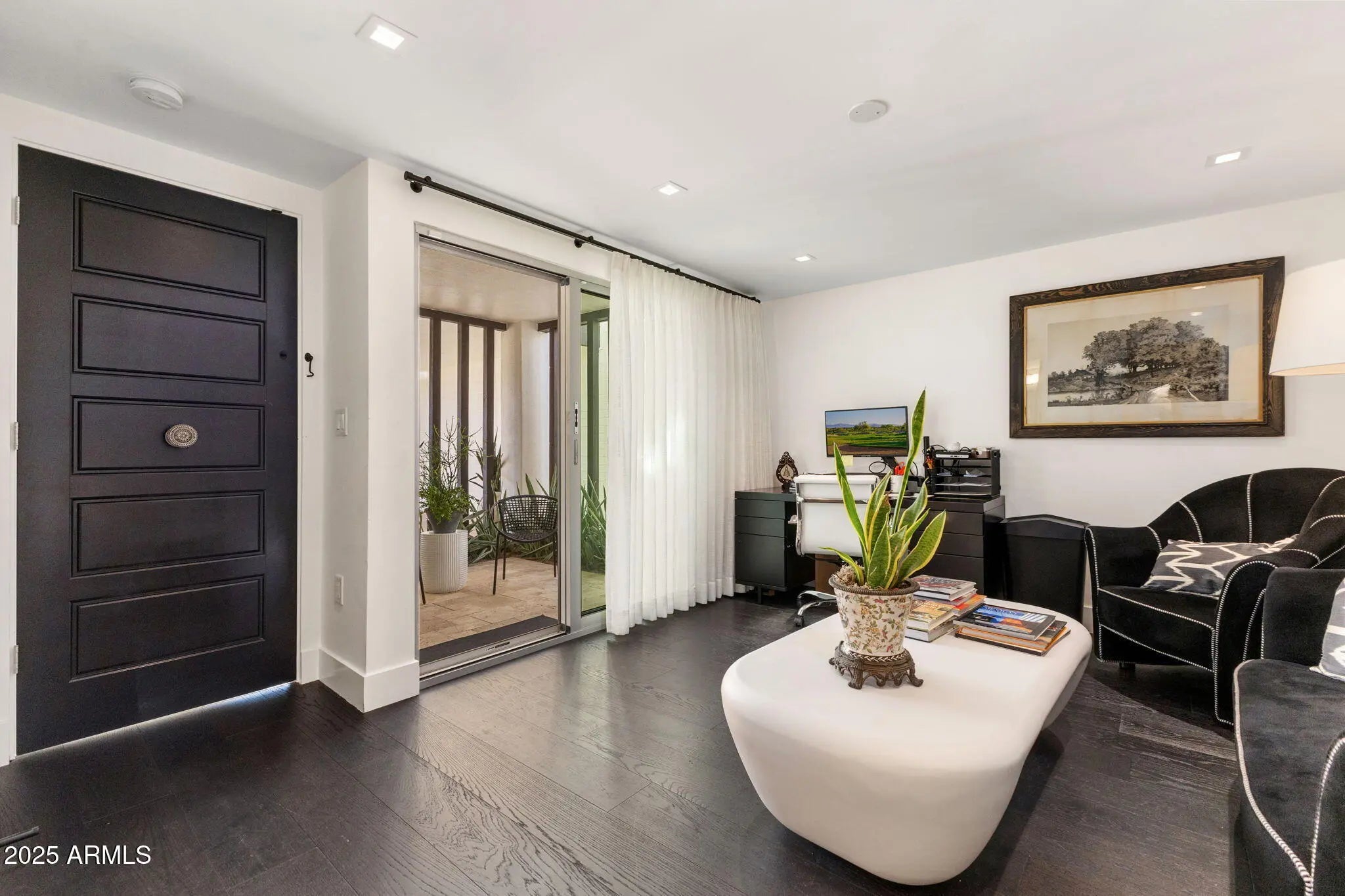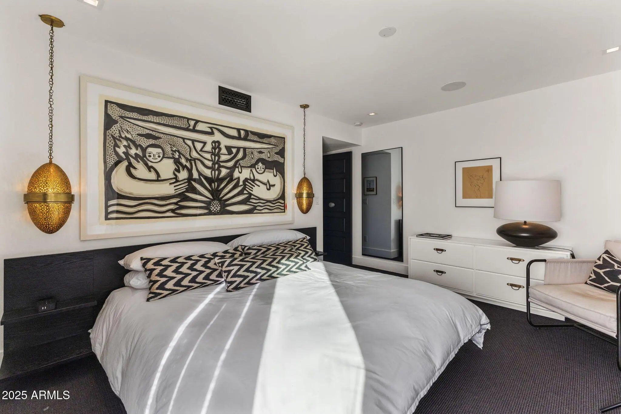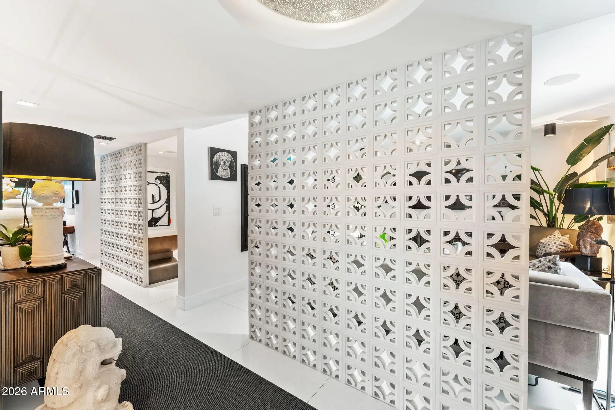 Introducing a newly rebuilt creative oasis, where historic charm meets post modern flair. This private residence of renowned Interior Designer James McIntyre, has been featured on the cover of Phoenix Home & Garden magazine as well as the Phoenix Home & Garden tour 2024. Completely reimagined, this jewel box invites you in with the arched front courtyard retreat lined in gorgeous drapery, lush landscaping and charming awnings. The fabulous great room features 17' ceilings, with custom molding, and floor to ceiling drapes with a quartet of suspended Moroccan lanterns. Arches beckon you into the elegant eating area and chef's kitchen featuring ebonized quarter-cut custom oak cabinetry, sleek marble countertops, Sub Zero refrigerator, and wine refrigerator, 2 beverage drawers, wolf oven, induction cooktop and cove dishwasher. With a nod toward 1970's Hollywood glam, breeze block was added, providing an element of mystery from the main dining room and family room. This masterpiece features 4 bedrooms with ensuites, with 1 bedroom on the main level and 3 bedrooms on the 2nd level. The back yard has an intimate Beverly Hills hotel flair, with new pool, water features, lush landscaping, privacy hedge, fire feature and built in grill. Perfectly situated across from the new Ritz Carlton hotel and backing a huge park, this townhome is walkable to many restaurants and shopping.
