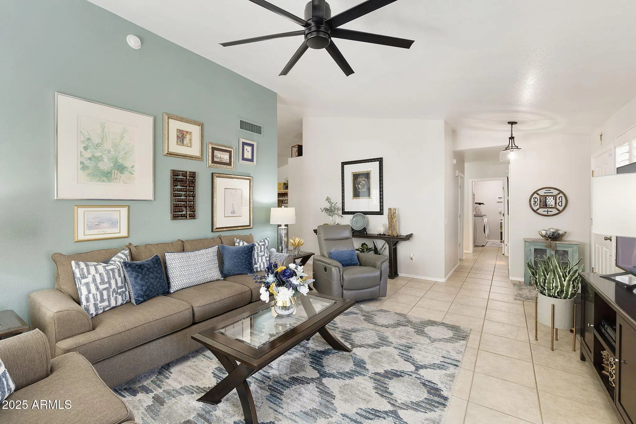 This one feels like a getaway you get to live in. Bright open spaces. Vaulted ceilings. Natural light. An open concept layout that flows easily and feels instantly comfortable. Move in ready, updated, with owned solar already in place for energy efficiency and peace of mind. The kitchen connects naturally to living and dining areas, creating a social space without sacrificing calm. The primary suite offers a true retreat, while the second bedroom flexes for guests, hobbies, or a home office. Enjoy indoor outdoor living with a covered patio and mature landscaping, perfect for relaxing or entertaining with low upkeep Set within a guard gated 55 plus community in Palo Verde at Sun Lakes. Resort style living with golf, pools, pickleball, social clubs, and an active adult lifestyle Easy living. Strong community. A home that feels right.