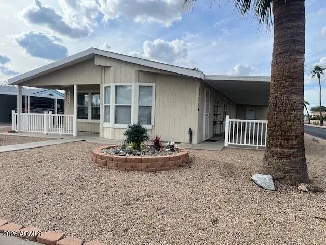 Very nice home in Palm Lakes Village. 2 bedrooms that are nice size, plus a Den. Master has walk-in closet and nice shower with double sinks in the bathroom. Owner added a very nice shed with workbench at the front of the double carport. One of the sheds could be heated and cooled, it has insulation. Palm Lakes village is a 55+ community, land owned, with a lot of activities. Clubhouse, pickleball courts, miniature golf, horseshoes, shuffleboard, heated pool and spa, pool table, workout room, Bunco, bingo, and other clubhouse activities.