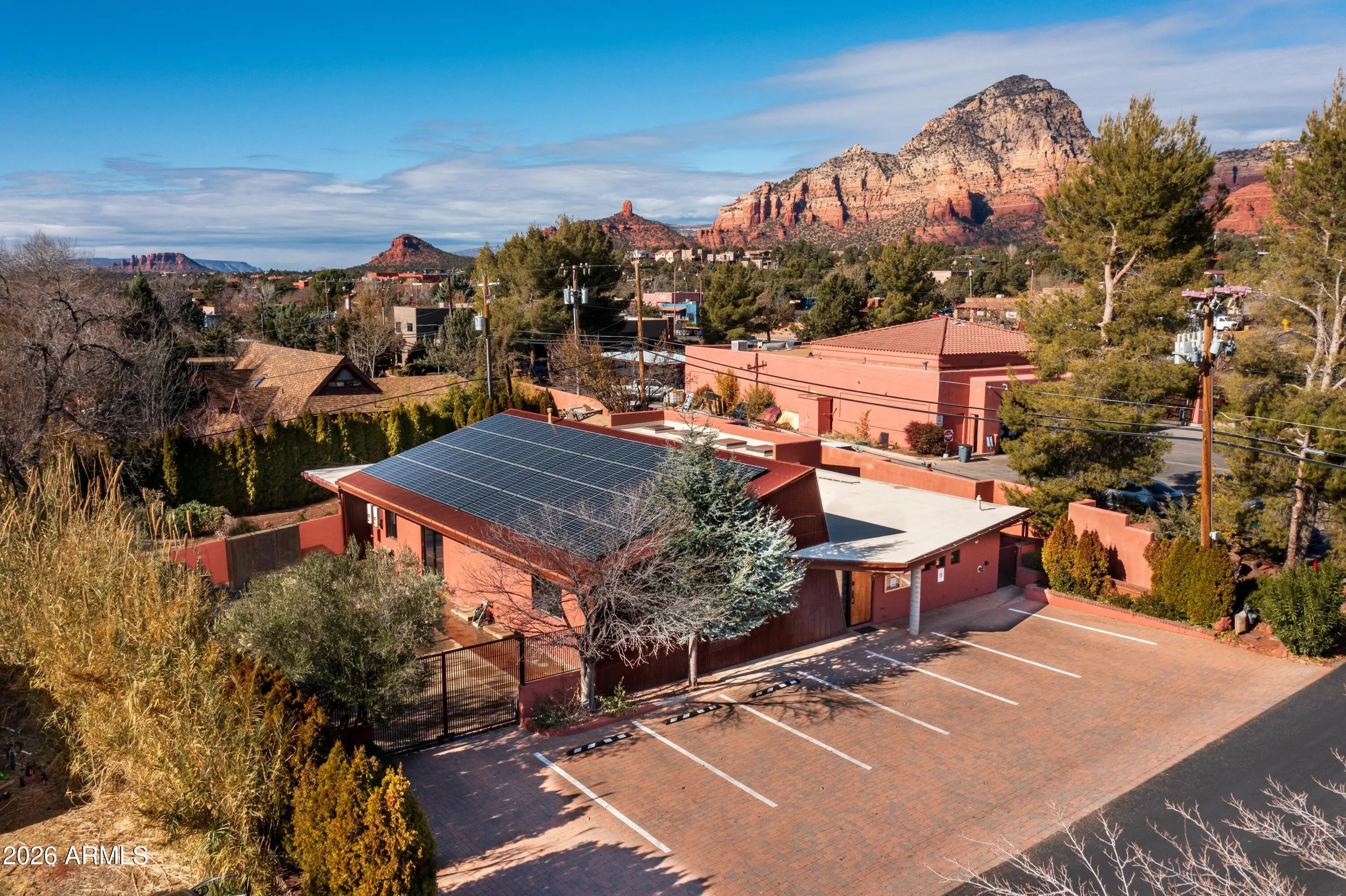 One-of-a-kind property in central Sedona, minutes from restaurants, banks, and retail. Built in 1978, fully renovated in 2008 and 2015, with updates in 2023. Features 4,371 sq. ft. of artistic design, 16+ ft. ceilings, natural light, treatment rooms, a kitchen, and landscaped grounds. Zoned M2. Includes solar, storage, ample parking, and spring water. Priced well below market and/or replacement value.