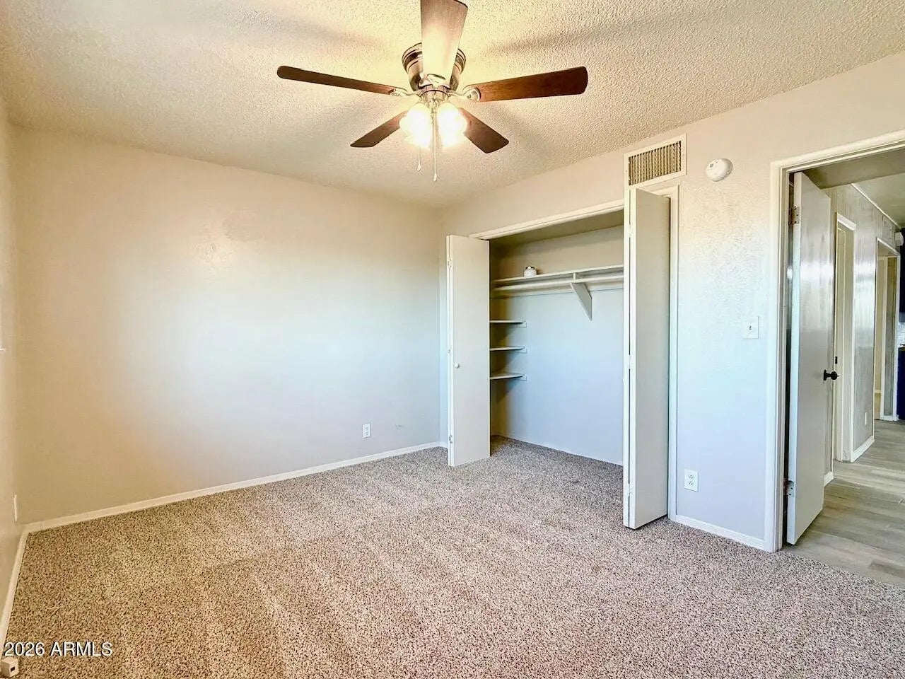 Welcome home to this charming single-story home with no HOA! Inside, enjoy a clean, neutral color scheme and a well-appointed kitchen boasting stainless steel appliances, butcher block counters, and modern toned cabinetry. A combination of carpet and luxury vinyl plank flooring adds comfort and durability. The large backyard is a blank slate and an entertainer's dream with a covered patio and storage shed, providing plenty of space for outdoor living and storage.