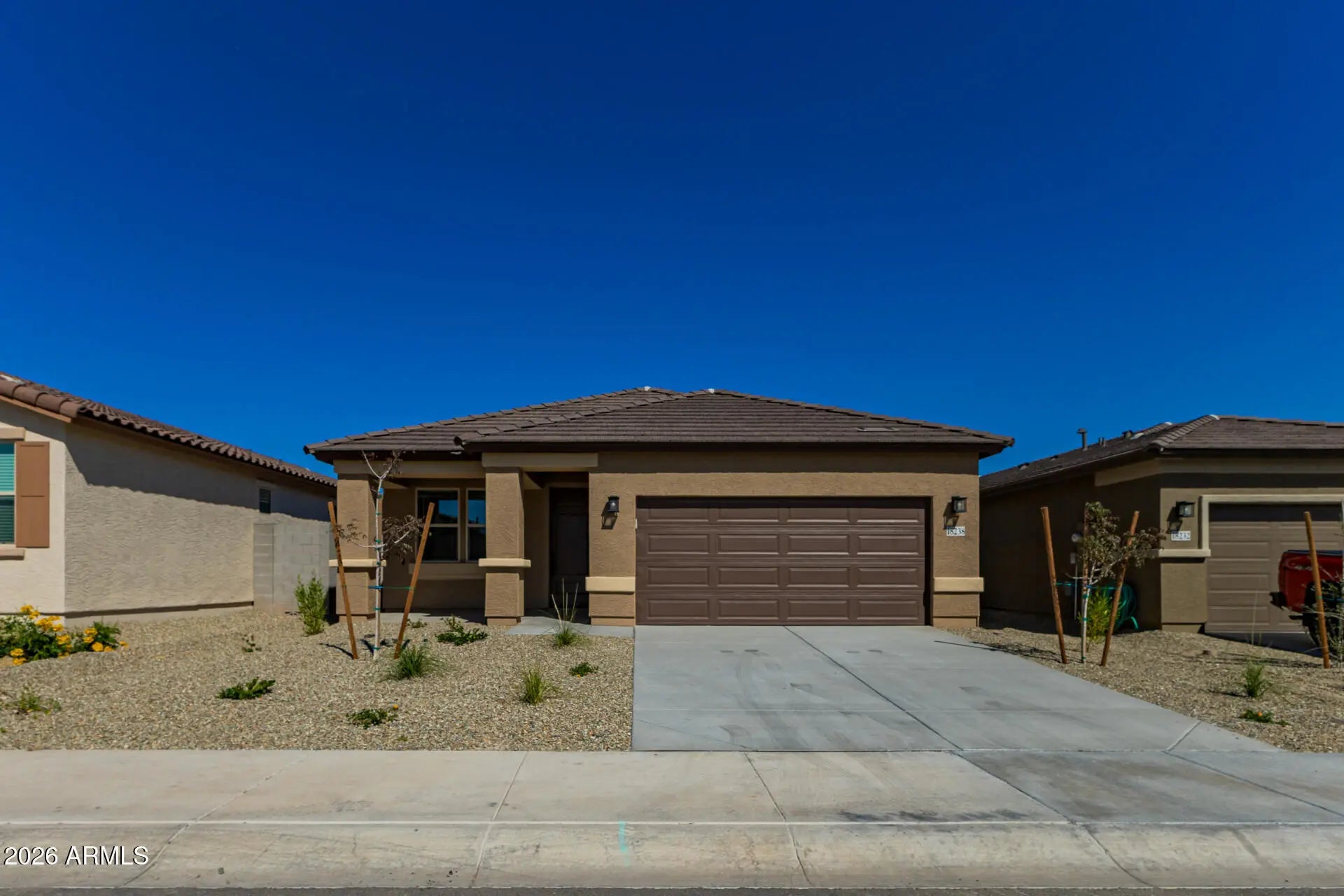 Stunning New Home in an Exclusive All Single-Story Community! This beautifully designed 1,660 sq. ft. home offers 3 bedrooms, 2 bathrooms, a versatile Flex Space, and an Extended 2-Car Garage for extra storage or workspace. Includes Washer, Dryer, and Fridge! Backyard Landscape & Blinds! Featuring an open-concept layout, this home boasts a modern kitchen with premium finishes, a spacious primary suite, and thoughtfully designed living spaces filled with natural light. Located in a peaceful all single-story community, this home provides both privacy and convenience in a highly desirable area. Don't miss this incredible opportunity! Conveniently located off the Loop 303 and Grand Avenue. Pictures are of model home Katmai.