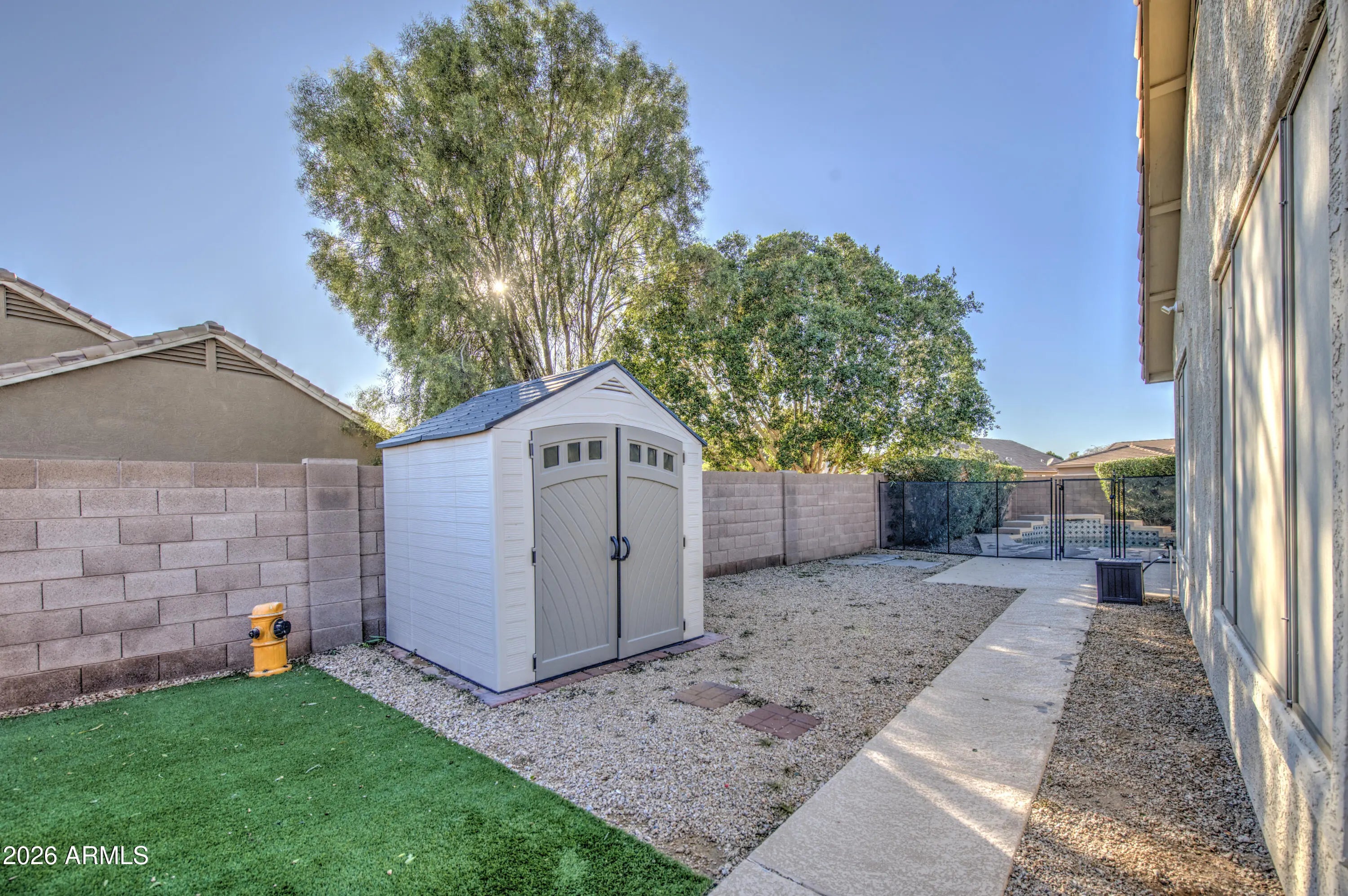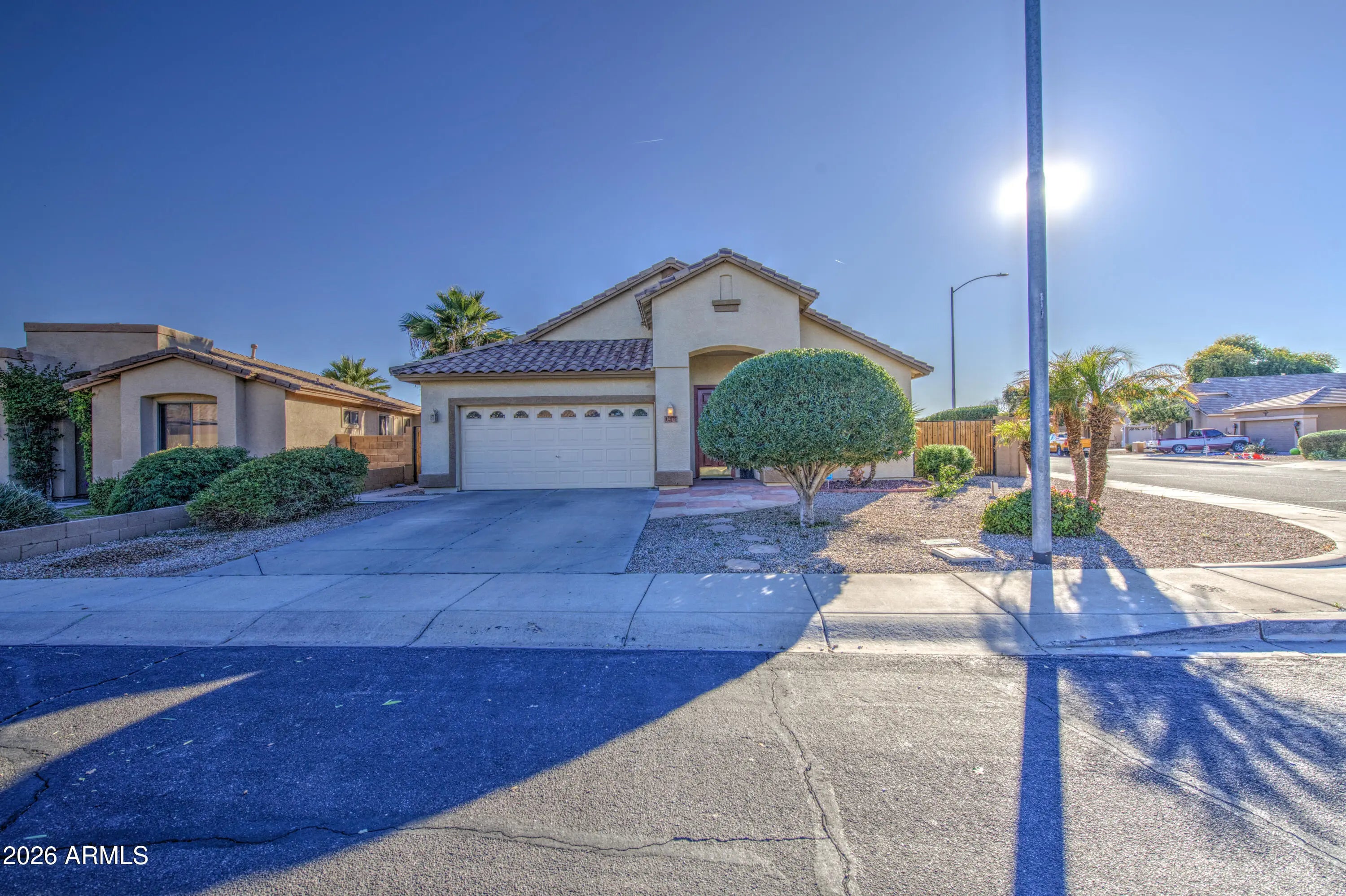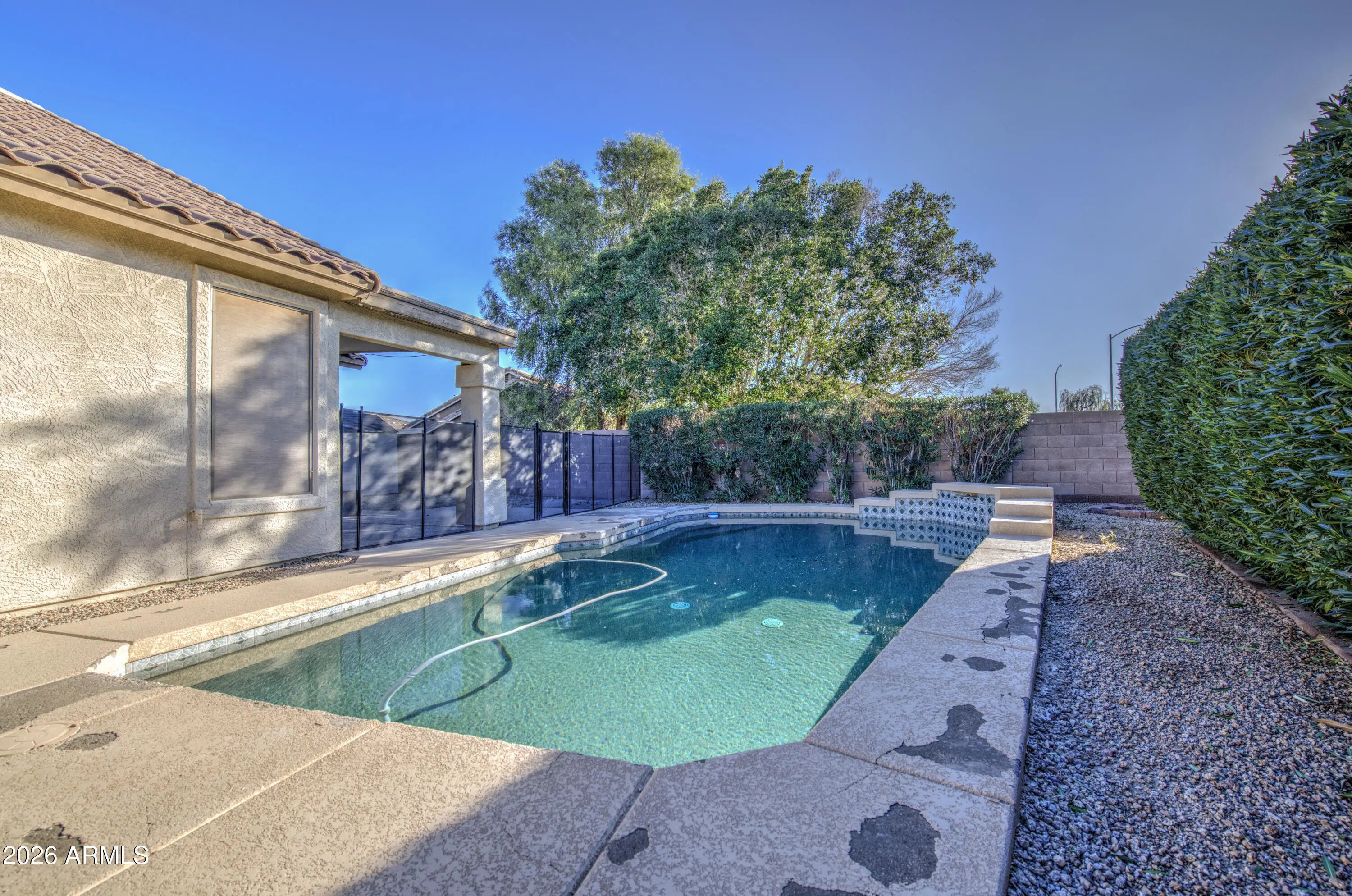 Amazing Avondale location! This portion of Osborn is tucked toward the back of the subdivision, offering a quiet, secluded street with minimal traffic. Situated on a desirable corner lot, this home is packed with upgrades and features, including an RV gate, Pebble Tec pool with waterfall, and flagstone steps leading to the inviting front entry. Inside, you'll find tile flooring in all the right places and multiple areas perfect for entertaining, including a front living and dining room plus a spacious family room. The kitchen offers abundant counter space with granite countertops, light wood cabinetry, a kitchen island, backsplash, stainless steel appliances, a new microwave, RO system, and a large eat-in dining area. The split floor plan includes an office/game room that can easily be converted into a 4th bedroom. The primary suite is generously sized, and the primary bathroom features both a soaking tub and a new custom slate tile shower. Additional upgrades include 2024 A/C units and ductwork, 2024 soft water and RO system, updated ceiling fans, large doggie door, and newer garage door opener The garage includes a side service door, insulated garage door, and built-in cabinets. Water heater is older but has never given any problems. Step outside to a great entertaining space with turf, a storage shed, and the pool located to the side of the home with a newer pool gate that can be removed if desired. The pool also includes a waterfall feature and heater (heater to convey as-is). The side yard provides space to park toys or an additional vehicle. All window have sun shades to keep home cooler in the summer. Pool decking will be replaced prior to the close of escrow. Please look at all brochures and warranties laid out for you. The seller has invested significantly in this hometruly a must-see!