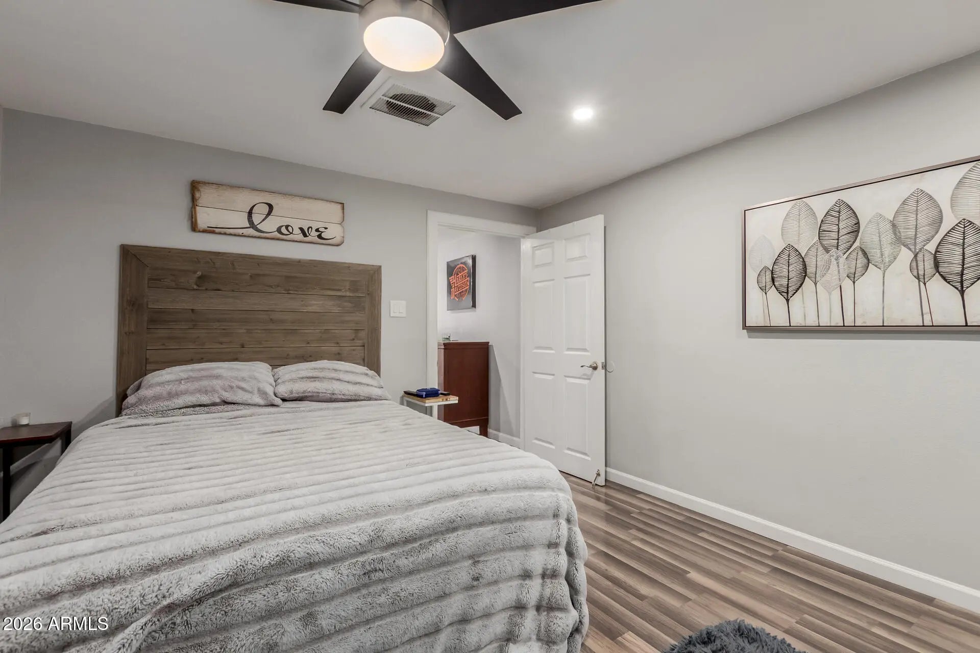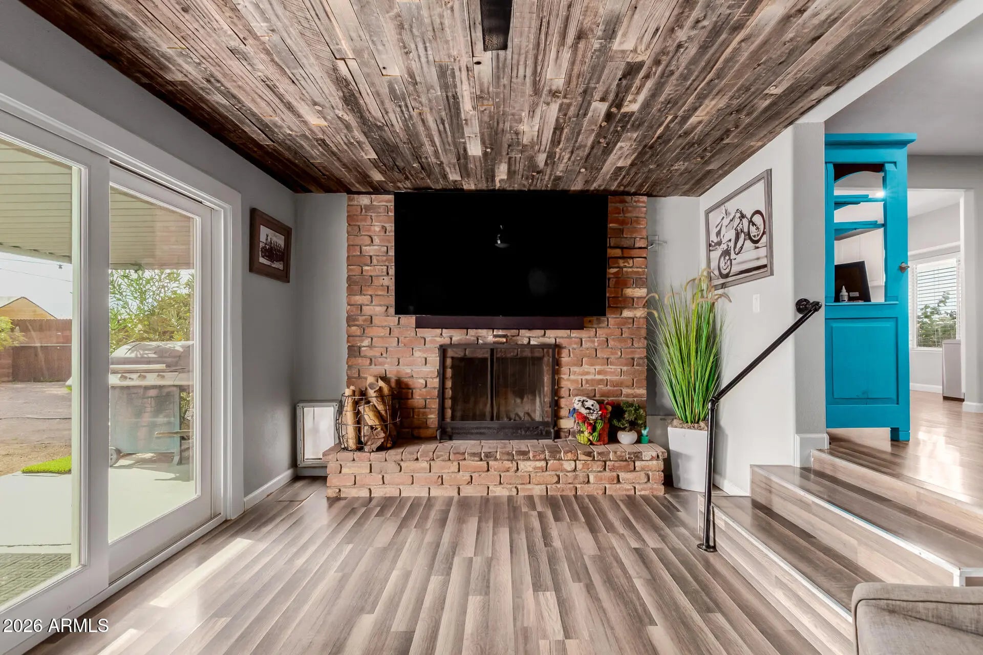 Welcome home to this charming, no-HOA retreat set on a generous quarter-acre lot. Inside, the inviting family room is anchored by a cozy brick fireplace—perfect for relaxed evenings and memorable gatherings. Fresh, modern grey tones flow throughout the home, complemented by rich, darker grey wood-look laminate flooring that adds warmth and style. Newer vinyl windows and doors enhance both comfort and efficiency. Outside, enjoy low-maintenance landscaping highlighted by a striking saguaro cactus out front, adding true desert character and curb appeal. With space to spread out and no HOA restrictions, this home offers comfort, style, and freedom to make it your own.