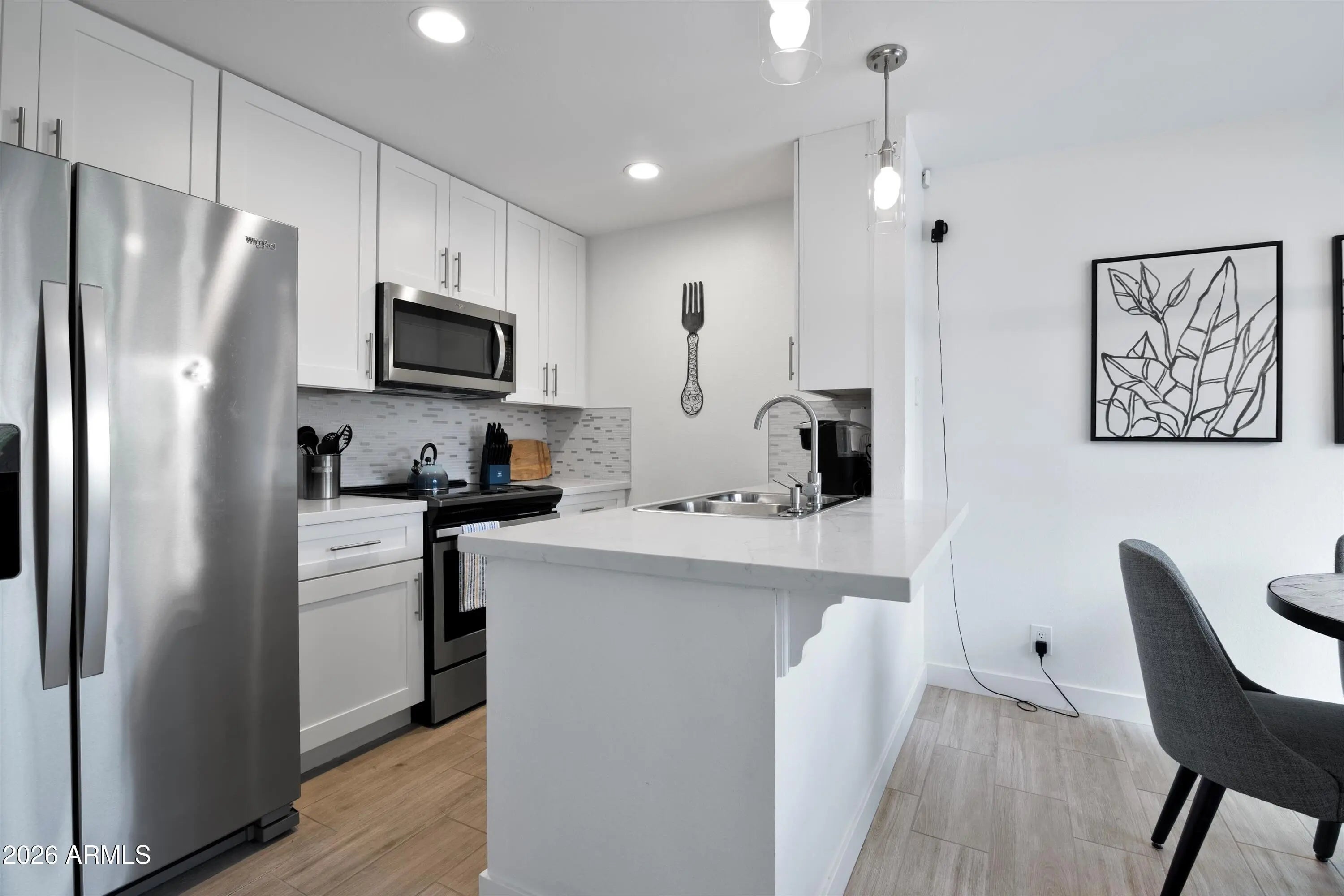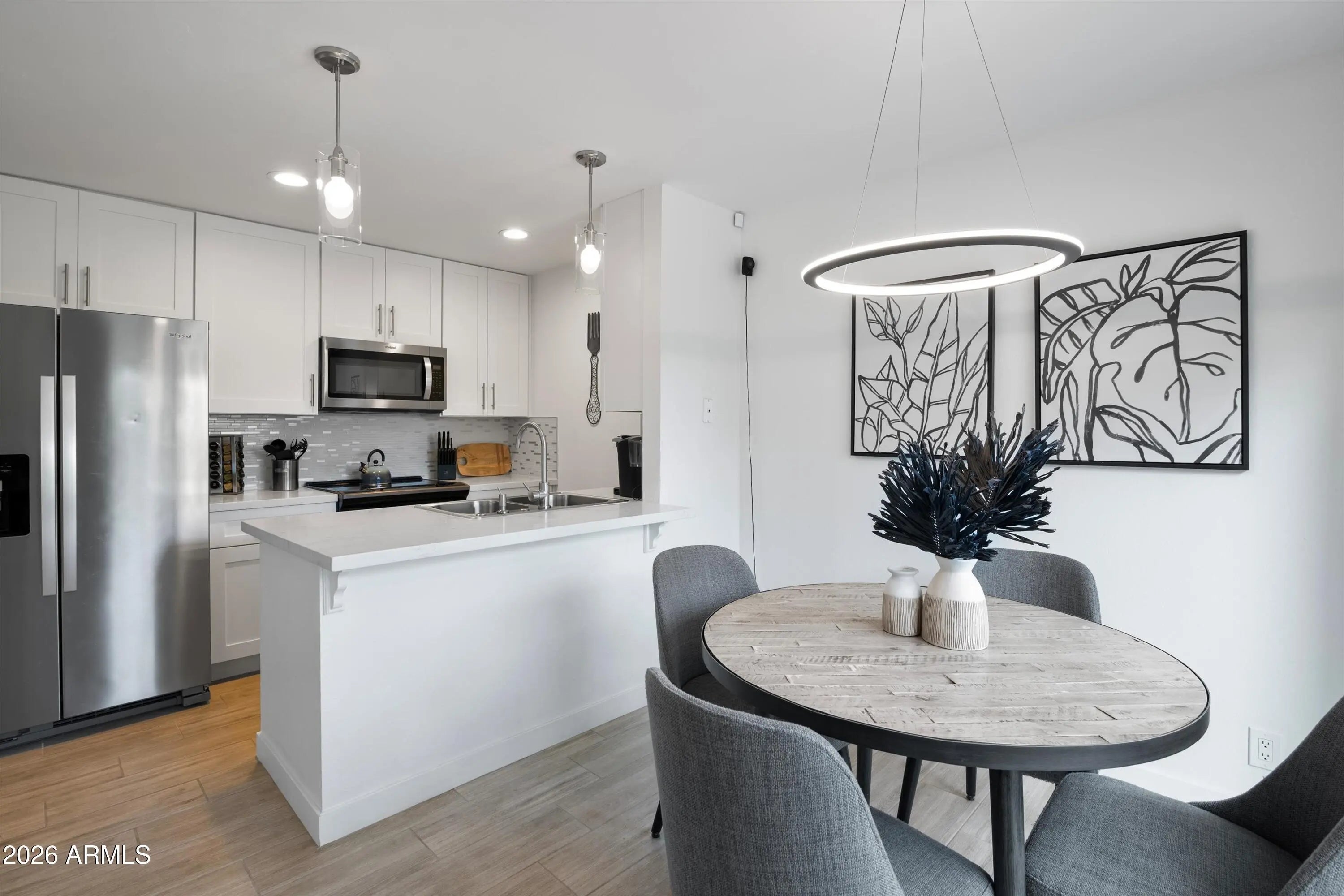 Welcome to this beautifully updated 2-bedroom, 1.5-bath condo located in the heart of Old Town Scottsdale. This light-filled home features an open-concept living and dining area with modern finishes and stylish lighting, perfect for everyday living or entertaining. The updated kitchen offers white cabinetry, stainless steel appliances, and a functional breakfast bar. Both bedrooms are generously sized with plush carpeting and neutral tones, providing comfortable private retreats. A convenient half bath adds extra functionality for guests. Enjoy a prime location just minutes from dining, shopping, nightlife, and entertainment. Ideal as a primary residence, second home, or investment opportunity.