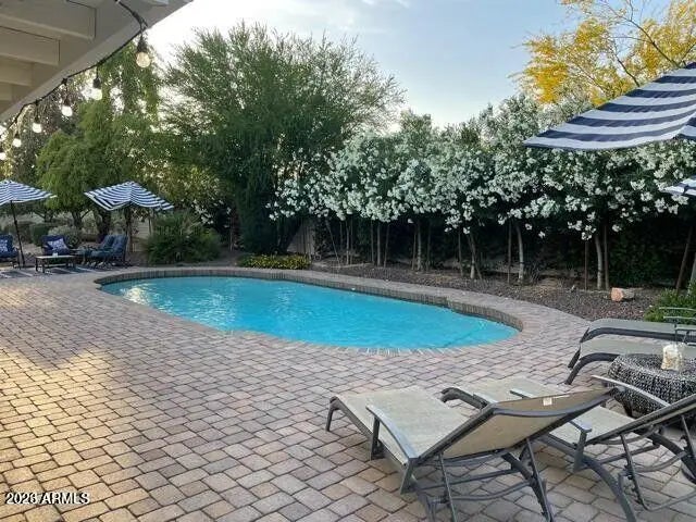 Stunning Scottsdale Ranch residence ideally situated on a quiet cul-de-sac, thoughtfully remodeled with an entertainer's vision in mind. This exceptional home features a light-filled, open-concept floor plan that seamlessly blends indoor and outdoor living. The expansive kitchen is a true showpiece, offering elegant quartzite countertops, premium KitchenAid appliances, abundant cabinetry, and generous storage—perfect for both everyday living and hosting gatherings. The beautifully remodeled primary suite provides a private retreat, complete with a cozy sitting area and a spa-inspired bathroom designed for relaxation. Step outside to your own resort-style backyard oasis featuring a large covered patio, built-in fire pit, brand-new pavers, and a sparkling saltwater pool.