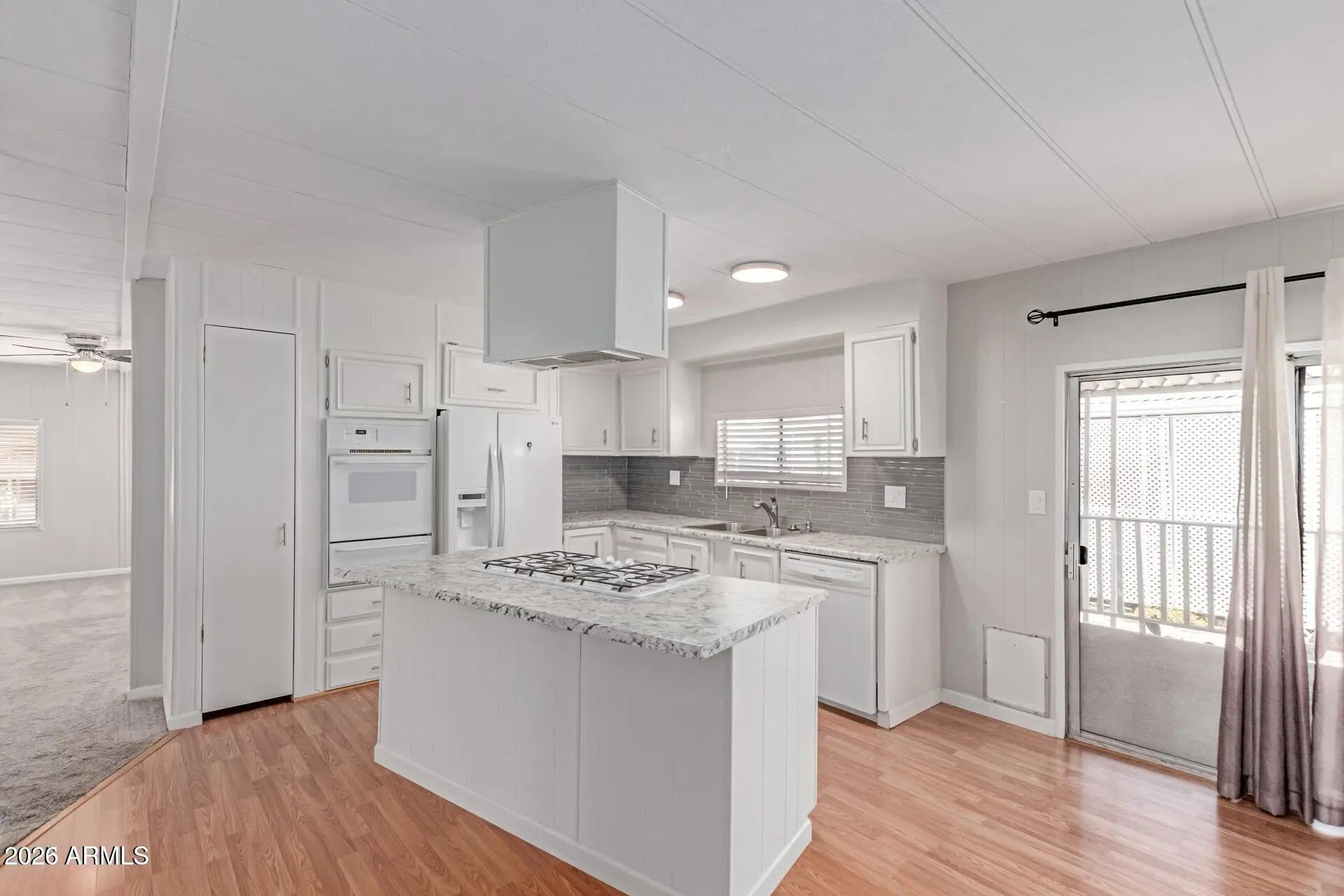 Reduced Price!!! Located in the desirable gated community of Friendly Village of Orangewood, this well-maintained manufactured home offers 3 bedrooms and 2 bathrooms with a functional and inviting layout. The interior features neutral finishes, abundant natural light, comfortable carpeting, and wood-look flooring that enhances the home's warm, airy feel. The kitchen is thoughtfully designed with white cabinetry, tile backsplash, ample counter space, a pantry, center island, and built-in appliances--ideal for everyday living and entertaining. The primary bedroom includes generous closet space and a private ensuite bathroom with dual sinks. Outdoor living is enhanced by a covered patio, perfect for relaxing mornings or peaceful evenings, along with convenient carport parkin Community amenities include a pool, spa, clubhouse, and more, all within a secure, gated setting. This home offers comfort, convenience, and access to an active community lifestyle.