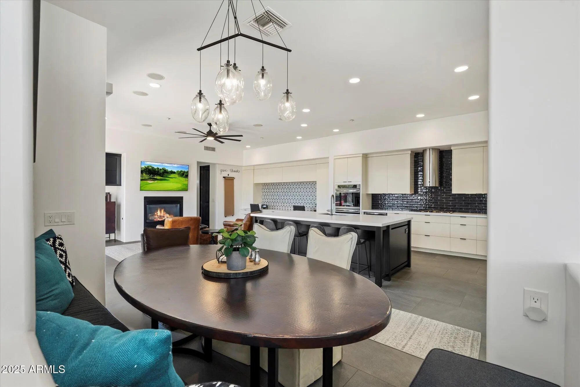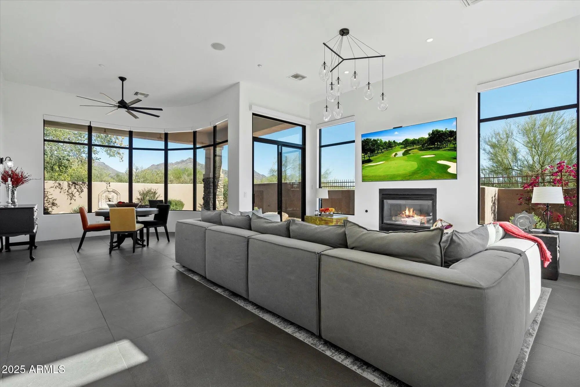 Desirable DC Ranch Tapadero townhome with mountain views. Throughly updated with designer finishes, this light & bright single level home features 3 bedrooms & 2.5 baths. Open kitchen with large island, SS appliances, quartz counters & custom cabinetry. Large primary suite with sitting area, bath with dual vanities, soaking tub, separate shower & generous closet. Oversized guest rooms open to the charming patio with built in BBQ, fireplace, an outdoor space perfect for relaxing & entertaining. Additional outdoor patio off the beautiful living/dining area with full McDowell Mountian views. Control 4 & Smart Home system with surround speakers inside and out. Quiet culdesac lot, walking distance to Market Street, & easy access to North Scottsdale restaurants, shopping & entertainment.