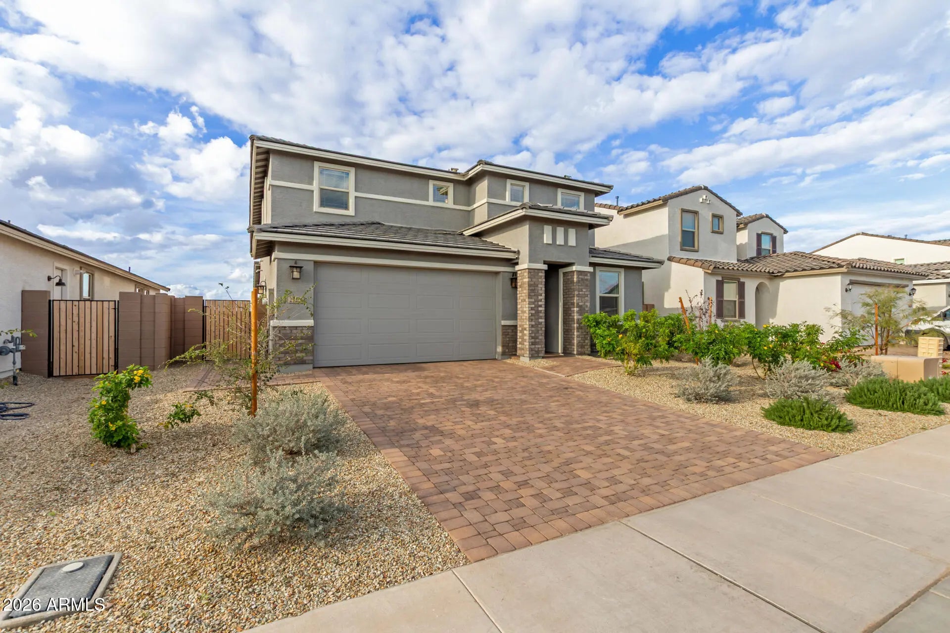 Located in the desirable Asante Discovery Community, this home offers outstanding curb appeal with a paver driveway. The light, bright, open-concept Sienna floor plan features a spacious great room with tile flooring throughout the main living areas, creating an inviting atmosphere enhanced by upgraded finishes. The gourmet kitchen is a standout, showcasing a large island, ample cabinetry, stylish backsplash, gas range, and stainless steel appliances—perfect for both everyday living and entertaining. The expansive primary suite offers a peaceful retreat with a luxurious bathroom. A conveniently located upstairs laundry room adds everyday ease. Enjoy outdoor living in the beautifully landscaped backyard, ideal for relaxing or hosting gatherings.