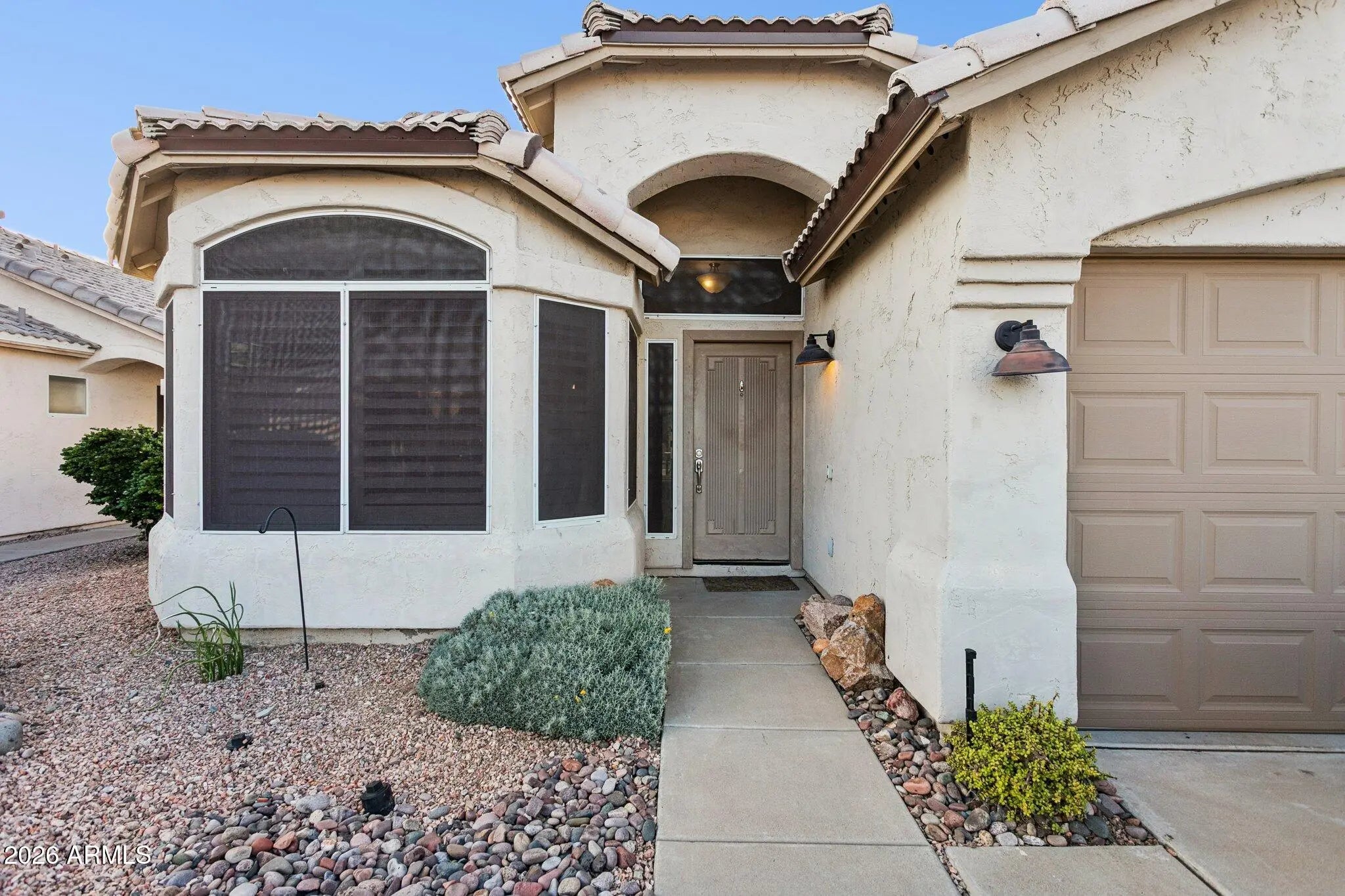 Step into effortless Arizona living in this beautifully updated single story home in a sought-after master planned community. Featuring 3 spacious bedrooms, 2 stylish baths and soaring ceilings that fill the home with light and openness. The chef's kitchen shines with stainless steel appliances, granite counters and abundant storage, perfect for everyday living or entertaining. Outside, enjoy your private sparkling pool and low-maintenance backyard retreat. Recent upgrades include beautiful shutters throughout, a NEW ROOF (2025), NEW 4 ton HVAC (2025) and a whole house water softener. Ideally located near Phoenix, Scottsdale, Glendale and Peoria, this home delivers both lifestyle and convenience in one exceptional package.