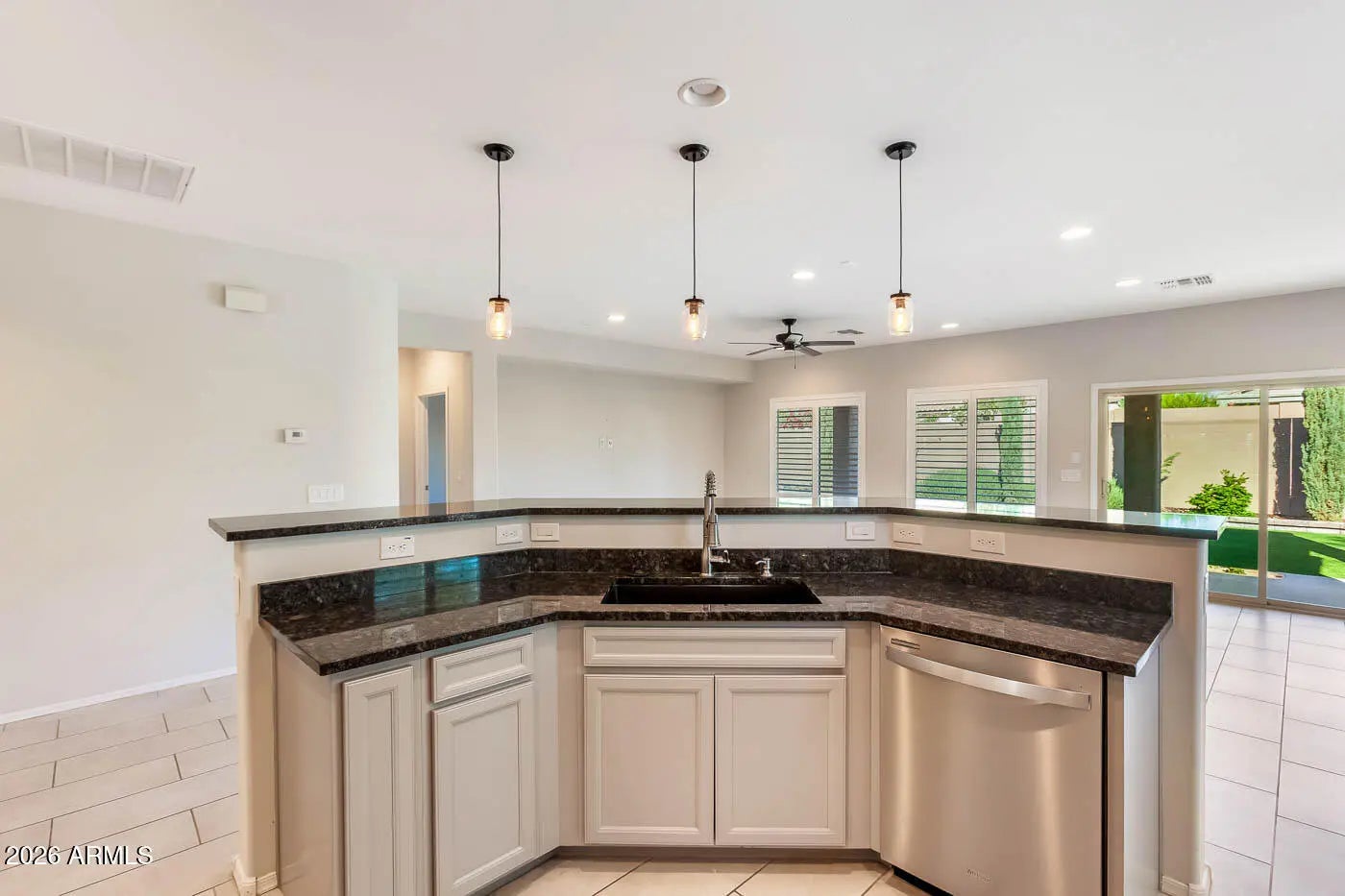 An assumable 3.25% FHA loan adds tremendous value and affordability in today's market, making this home an opportunity that truly sets itself apart.This nearly new, single-level home built in 2021 delivers modern comfort, thoughtful upgrades, and a rare sense of privacy. Featuring 3 bedrooms and 2 bathrooms, the layout is both functional and inviting, ideal for everyday living or entertaining without wasted space. The upgraded kitchen anchors the home with contemporary finishes and flows seamlessly into the main living area, while plantation-style shutters throughout add both style and energy efficiency. The primary suite is a true retreat, complete with an upgraded bathroom designed for relaxation and ease. Step outside to a low-maintenance backyard finished with artificial turf, appreciate the added privacy and open feel. A rare 2-foot garage extension provides extra room for storage, hobbies, or larger vehicles.Beyond the home itself, the lifestyle is exceptional. The HOA includes access to a gym, pool, pickle ball, tennis, volley ball and exclusive golf discounts at the community's 18-hole golf course.