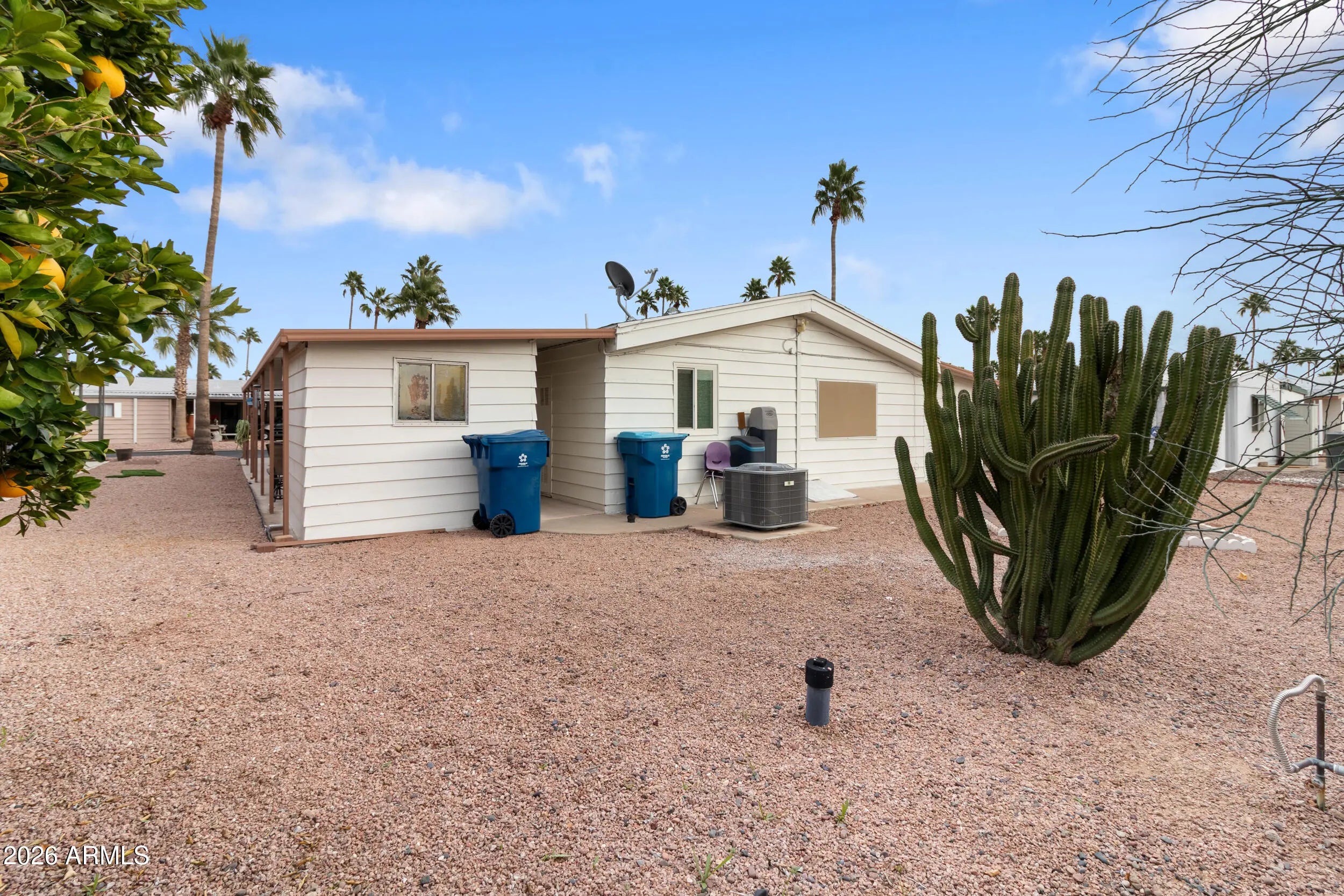 ***GROUND SET***WELL CARED FOR/MAINTAINED UPDATED THROUGHOUT,1983 KAUFMAN AND BROAD 24X56 1344 SQ FT WITH BONUS AZ/LANAI ROOM-WORKSHOP, VAULTED CEILINGS, NEWER DUAL PANE WINDOWS W/SHADES,COMP SHINGE ROOF, CENTRAL A/C UNIT APPROX 5 YEARS AGO, NEWER KITCHEN CABINETS,RO SYSTEM, OWNED WATER SOFTNER ,LIGHTING, FIXURES AND FLOORING,MASTER BEDROOM HAS WALK IN CLOSET,MASTER BATHEROOM WALK IN SHOWER,GRAB BARS,RAISED TOILETS,TANDEM 2 CAR COVERED PARKING WITH DETACHED STORAGE SHED,FABULOUS ARE THE BEST WORDS TO DESCRIBE HOLIDAY PALMS,AN ACTIVE 55+COMMUNITY IN MESA'S EAST VALLEY.ENJOY OUTDOOR RECREATIONAL ACTIVITIES ALL YEAR LONG,INCLUDING NEW PICKLEBALL COURTS,SHUFFLEBOARD.PRIVATE GATED COURYARD CONTAINS AN OUTDOOR HEATED POOL & WHILPOOL SPA SURROUNDED BY SHADED LOUNGE CHAIRS,RECLINERS & PET PARK