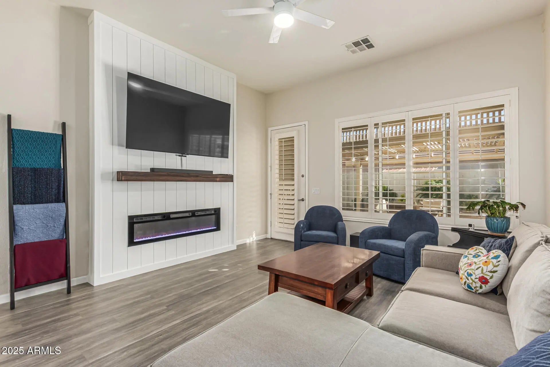 Nestled on a premium corner lot in the desirable Ashland Ranch, this meticulously maintained 3 bed, 2 bath home with a flexible bonus space offers a 3 car garage with built-in cabinetry. Natural light, vaulted ceilings, wood-look flooring, plantation shutters, recessed lighting, and a custom fireplace add to the upgraded design.. Open-concept provides multiple entertaining options and over $95,000 in thoughtful upgrades throughout. Master Suite includes custom walk-in shower and private access to the backyard, offering a covered patio, pergola, and refreshing pool—ideal for everyday enjoyment or entertaining. New exterior paint, water softener, and tasteful landscaping, enhance comfort and curb appeal. Located near San Tan Marketplace, Downtown Gilbert, Agritopia and Freeway Access. Ashland Ranch Community also offers sports courts, playgrounds, walking trails, BBQ areas, and expansive green spaces.
