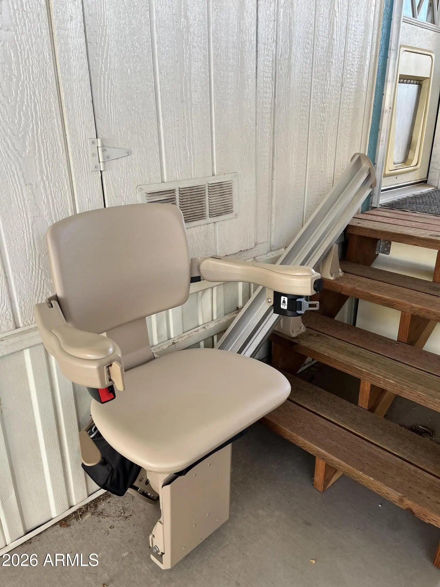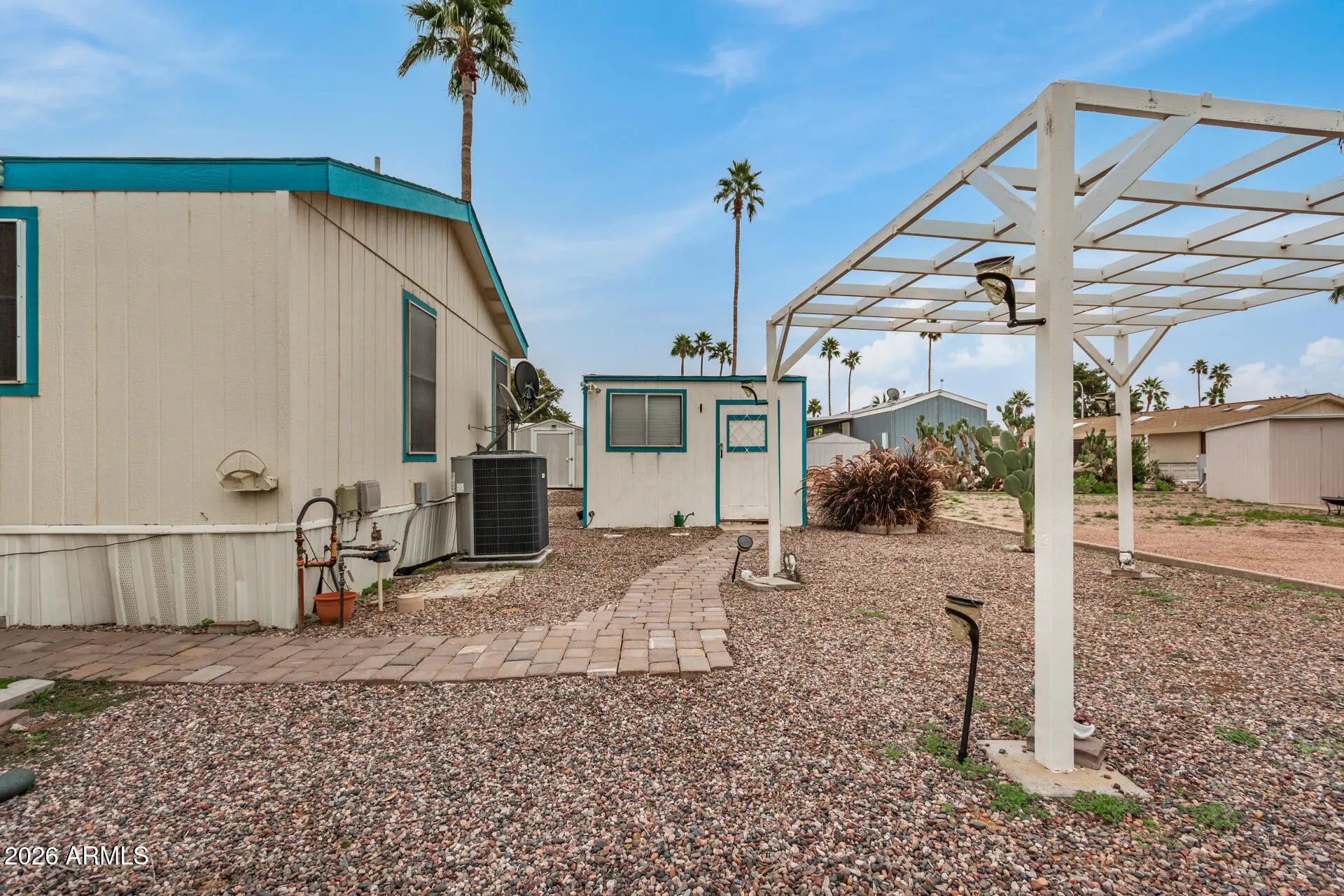 FULLY FURNISHED • MOVE-IN READY • CORNER LOT! FEBRUARY INCENTIVE: Seller will pay TWO months of land lease fees with an accepted offer. This well-maintained 2-bedroom, 2-bath double-wide offers 1,040 sq ft of comfortable, low-maintenance living in Mesa's desirable 55+ Hacienda de Valencia community. The home features luxury vinyl plank flooring throughout, upgraded appliances, and a bright, open layout. The spacious primary suite includes a walk-in shower, bathroom handrails, and a large closet. A chair lift is already installed and can be used as needed or easily removed, offering added flexibility. Washer, dryer, refrigerator, plus an additional refrigerator in the laundry room all convey, making this home truly turnkey. A doggy door adds everyday convenience for pet owners. d features a mature lemon tree, pergola, she-shed, and a private storage shed for extra space. A large carport offers covered parking, and the home is conveniently located close to the pools and community amenities. Located in the 55+ pet-friendly community of Hacienda de Valencia, residents enjoy an active, low-maintenance lifestyle. Lot rent includes access to the pool, clubhouse, a spa, fitness center, shuffleboard, dog park, recreation center, and a full calendar of social activities. RV and boat storage is available on site for $85/month, making this an excellent option for both full-time residents and seasonal living. Priced to sell and ready for immediate enjoymentdon't miss this opportunity to own in one of Mesa's most vibrant active-adult communities.